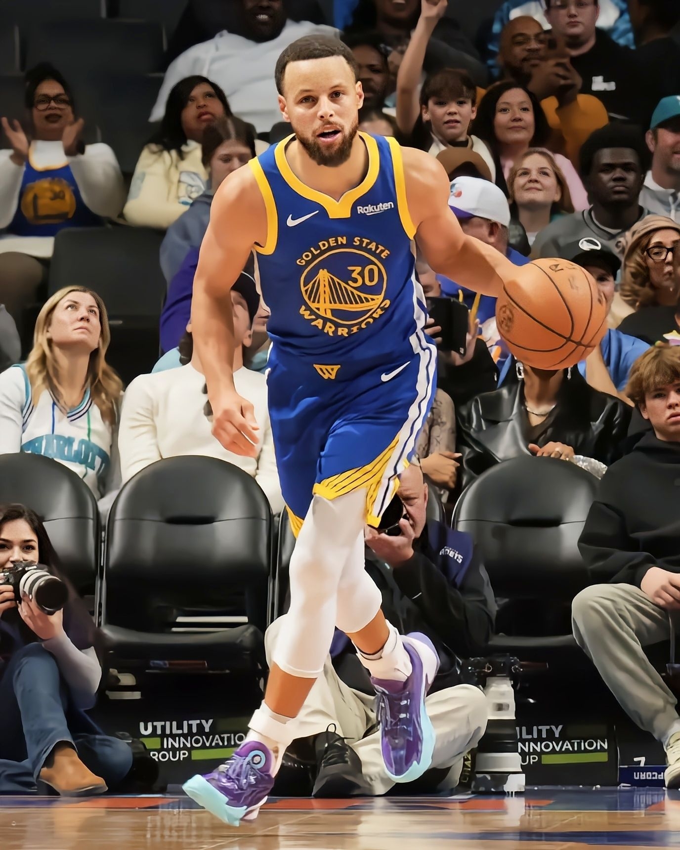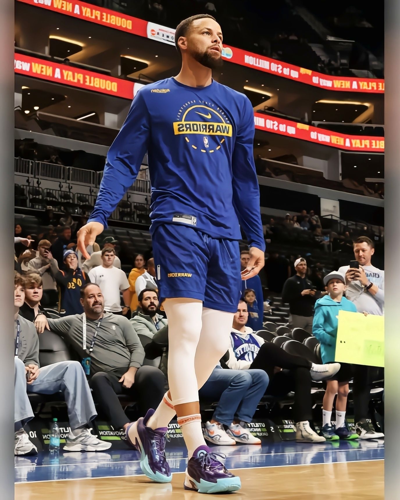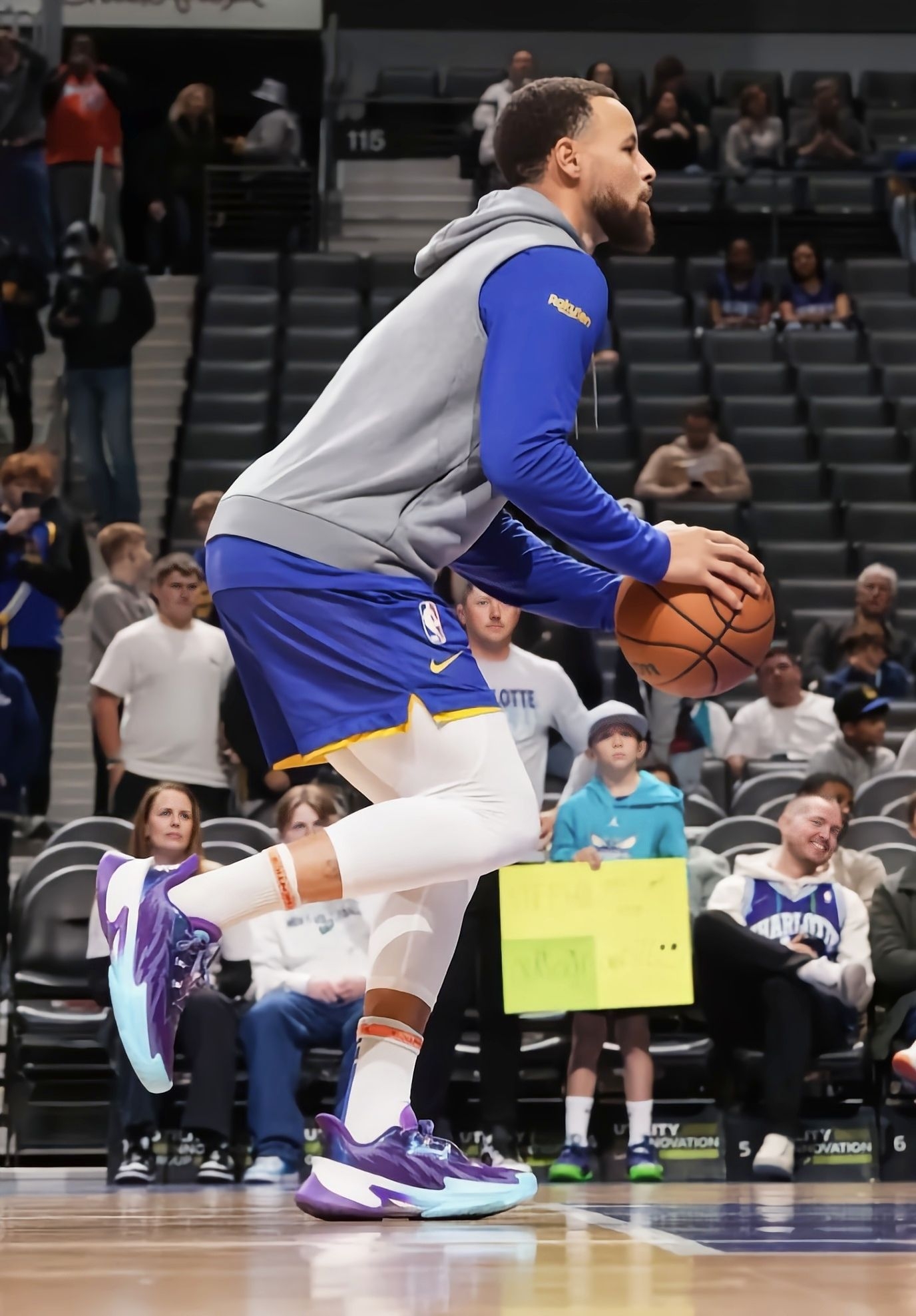 勇士客场打黄蜂的球看完了,132-125拿下比赛,库里还是那个稳字当头的老炮儿,33分钟砍26分2板4助1封盖,16投9中+三分10中5的效率依旧在线,关键球处理还是那么让人放心。 不过我全程除了盯他的三分,还一直在看他脚上这双UA CURRY Series7“Unrivaled”PE!紫蓝渐变的鞋面搭配蒂芙尼蓝的鞋头,质感直接拉满,鞋舌和鞋帮的细节设计也特别精致,PE版本的专属标识藏得很有巧...