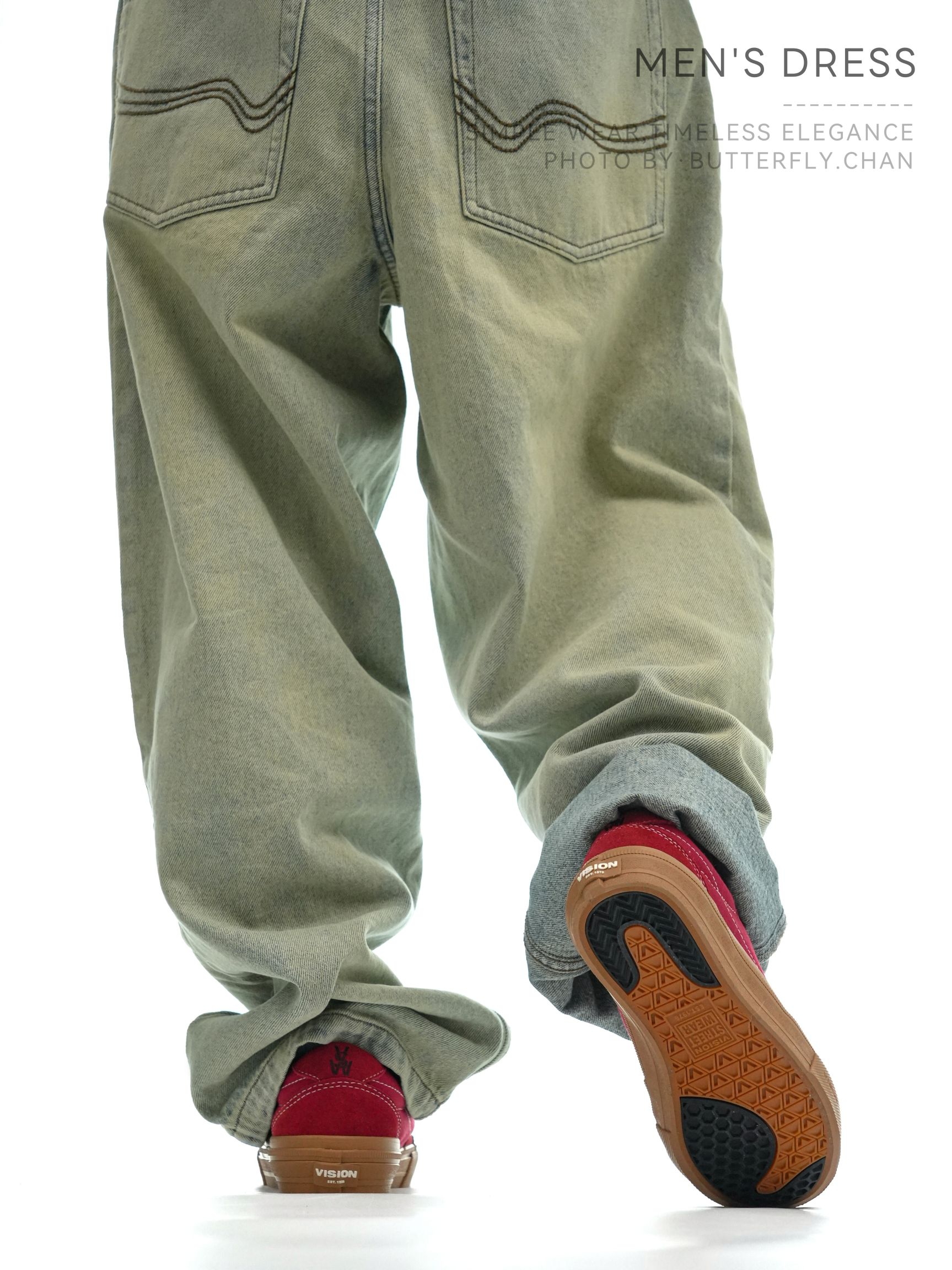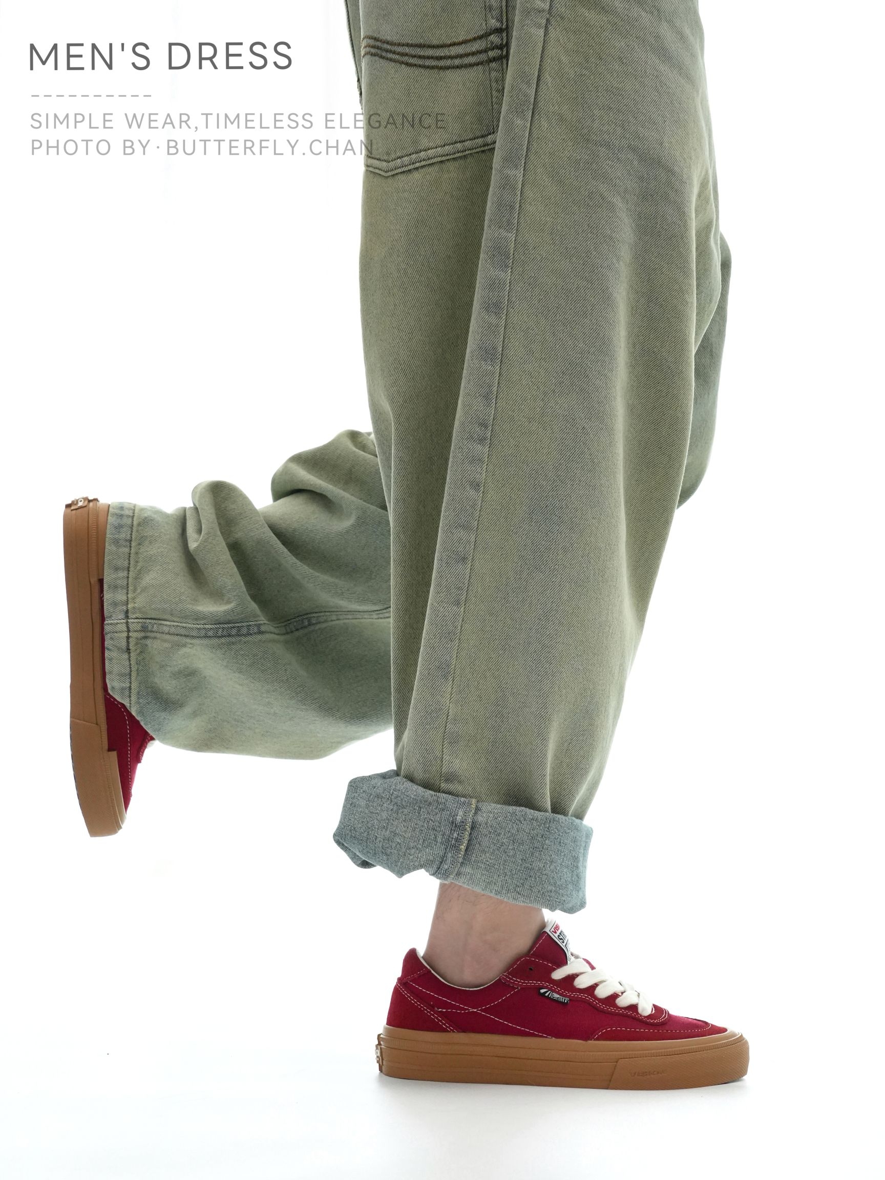 先说这鞋#vision street wear 👟 看着是复古的酒红色,配生胶底很有那味儿 👟看着挺硬的,但穿下去的感觉,截然不同 👟底狠软,走路🚶🏻♀️也累🦶 再搭#vision street wear 这条浅蓝牛仔裤👖,真的很好看 裤脚卷两圈露出脚踝,配这鞋狠显腿直 - 尺码方面: 👟:个人觉得可以拍大半码或一码 👖:是宽松版的,正码正拍就ok了