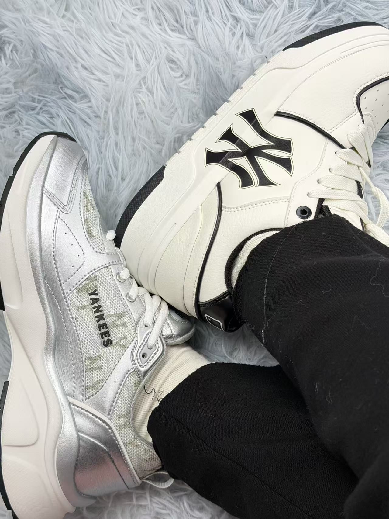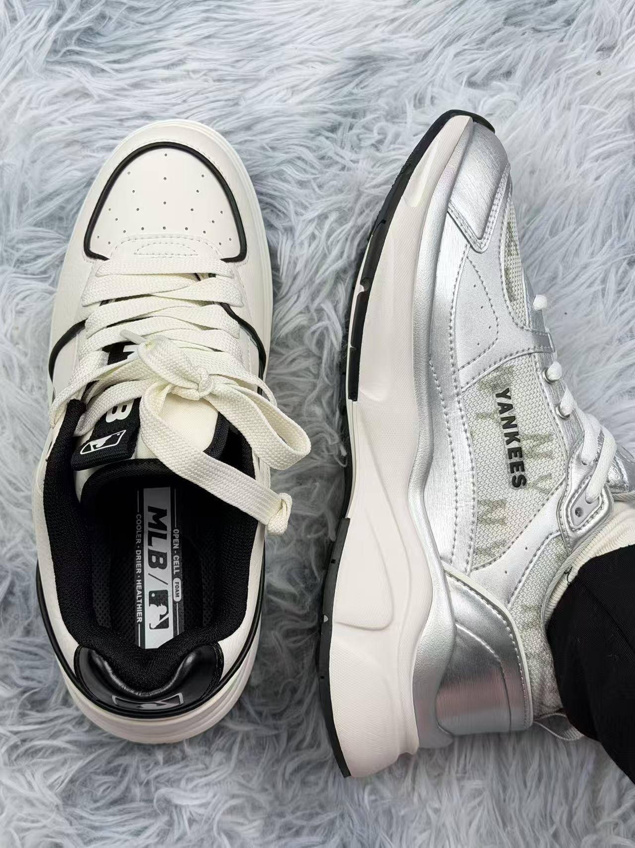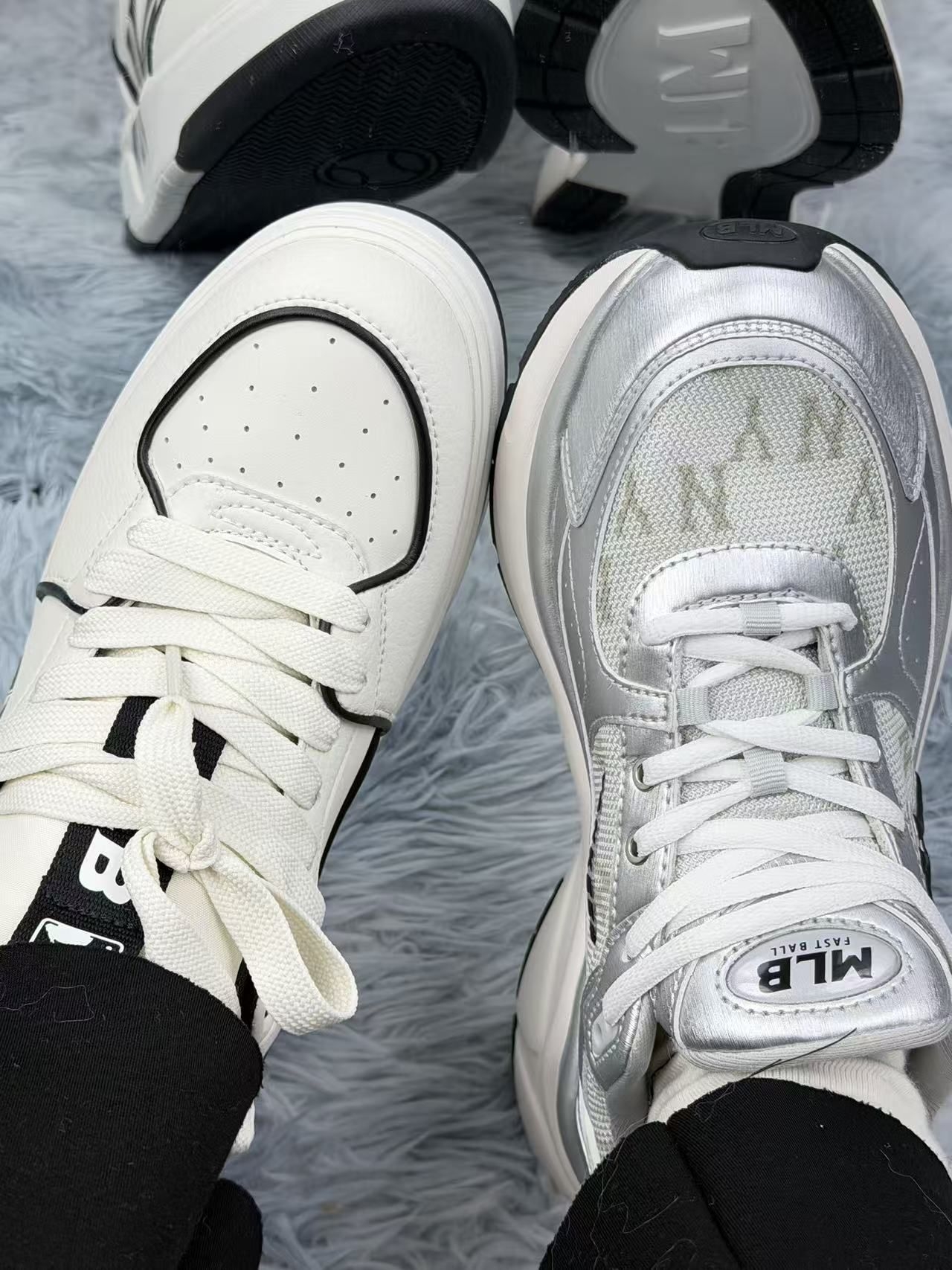 刚入手这双MLB,一银一白刚好凑成鸳鸯穿,很有个性。穿了一周,分享下真实感受。 先说优点: 银色款是网面材质,透气效果不错,不闷脚。 米白色款是皮革材质,质感很好,容易打理。 两款都有3cm左右的增高,显腿长效果明显。 鞋型宽松,适合脚宽的人。 再说缺点 皮革款的鞋舌偏薄,系紧鞋带后会磨脚踝。 鞋子整体偏重,走久了会有点累。 鞋底是硬的,缓震效果一般。 整体来说,这是一双适合日常出街的潮鞋,但不...