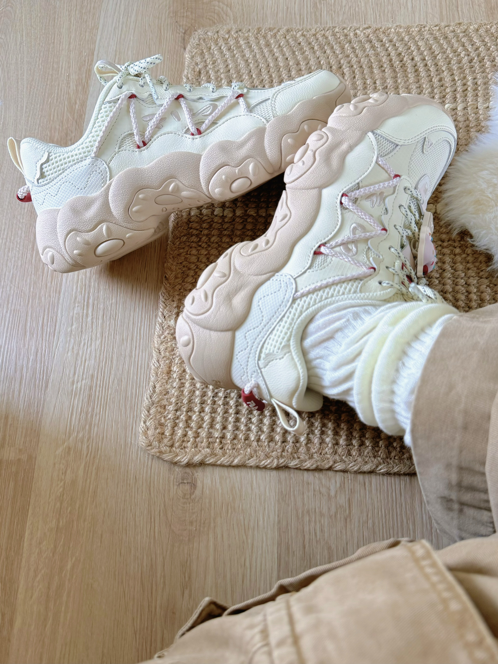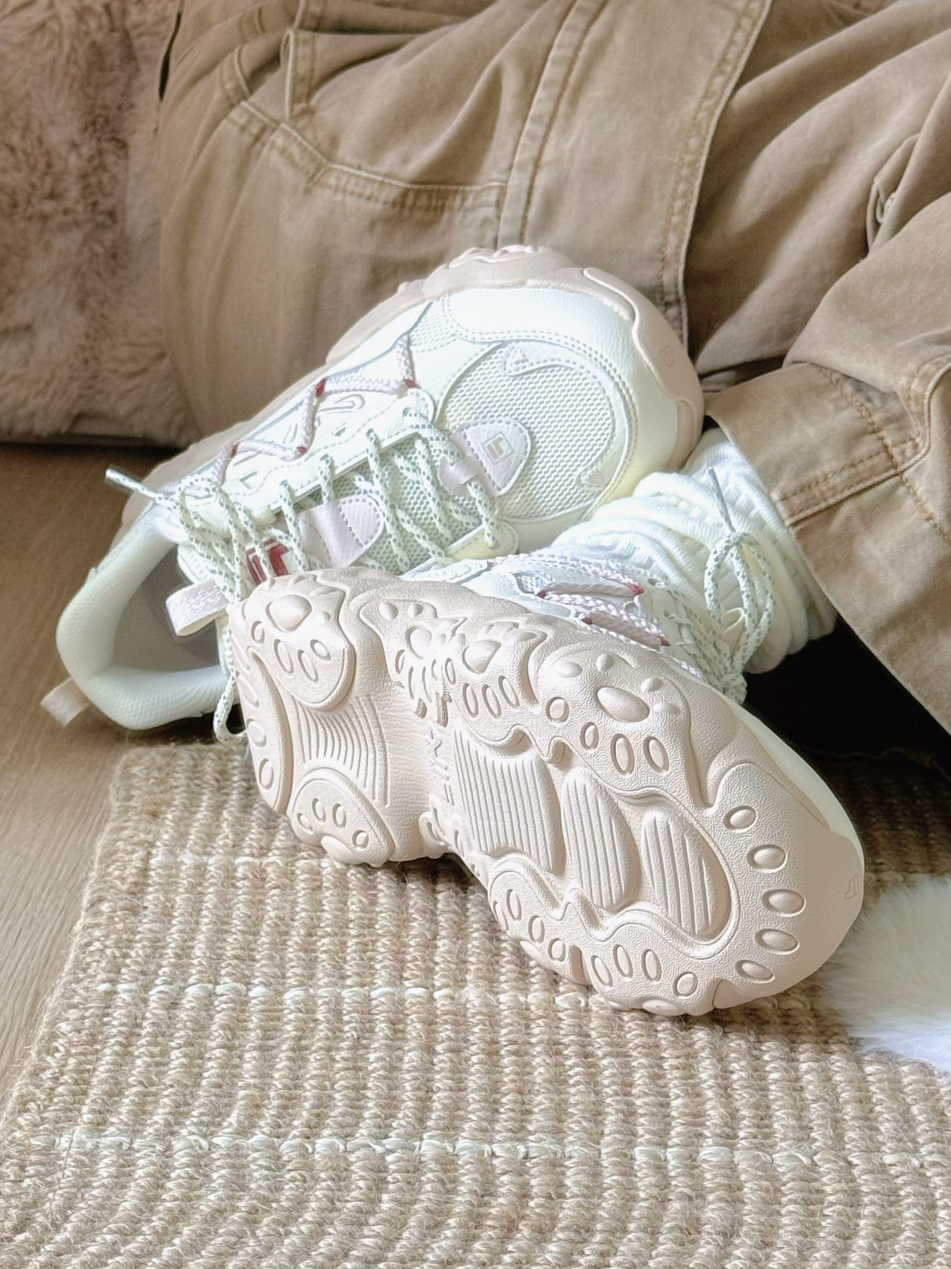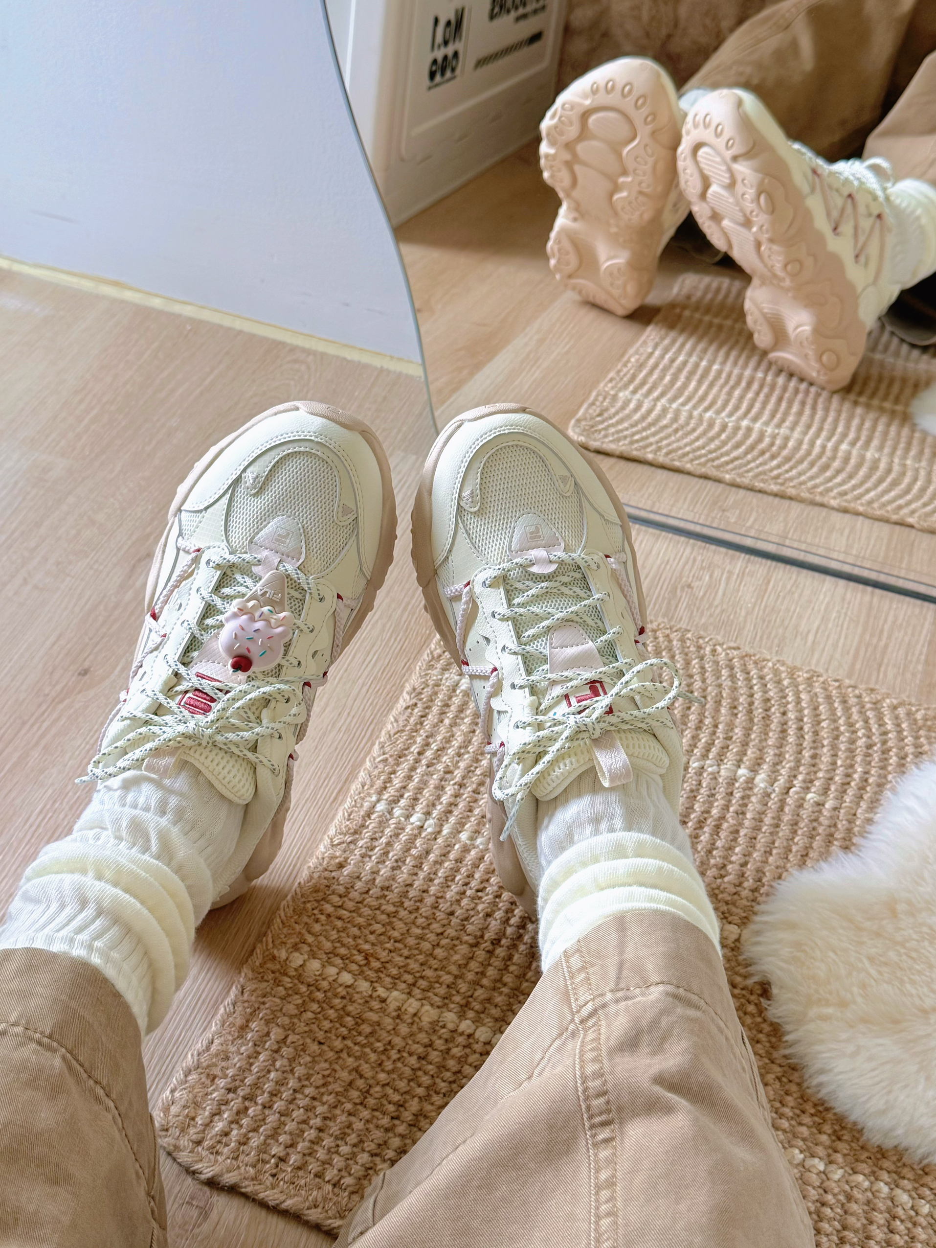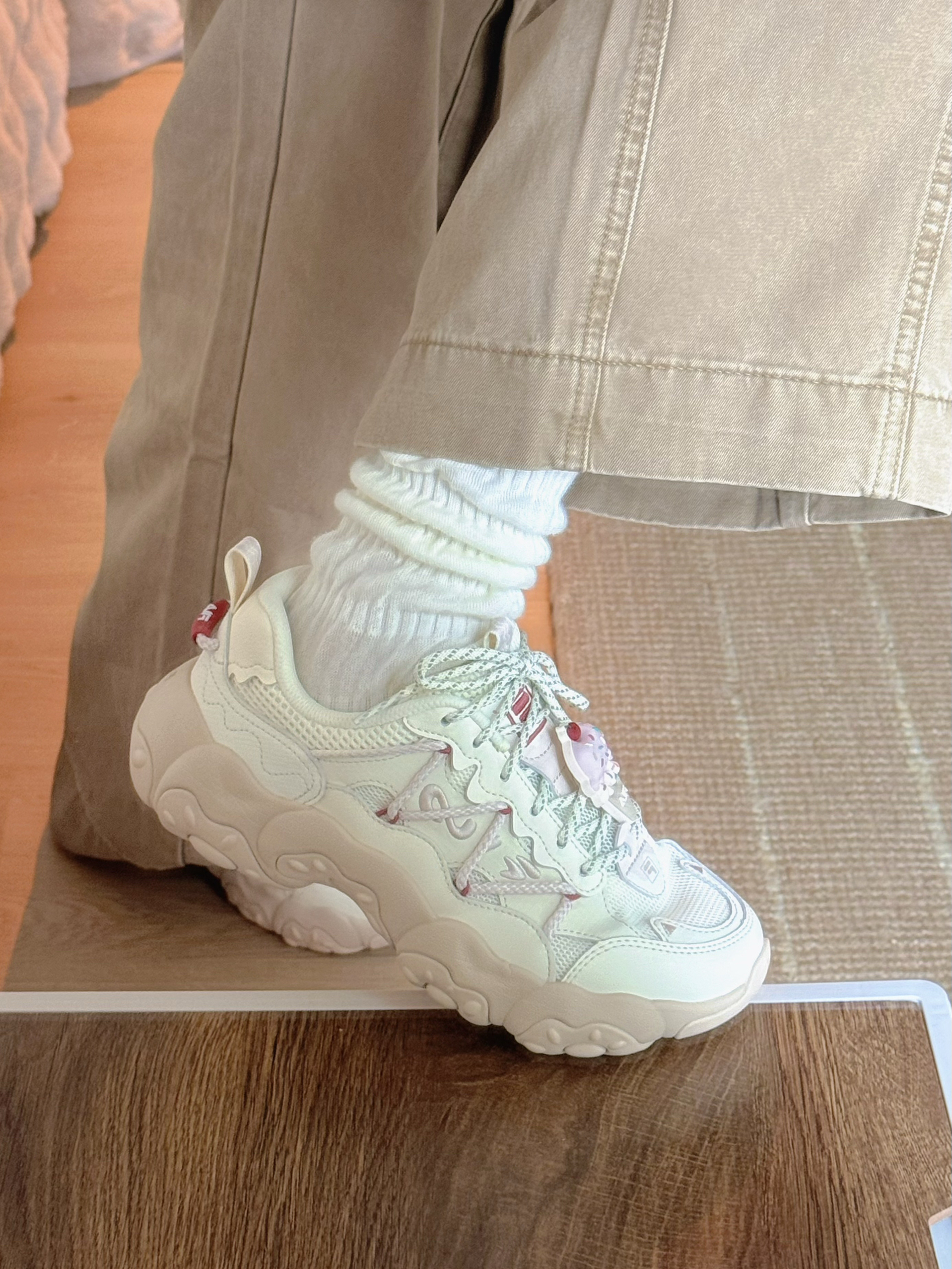 2026新年穿新鞋 FILA猫爪6美食主题也太会啦 冰淇淋配色奶fufu的 复古老爹鞋型超百搭 鞋底的小猫爪设计让爱猫人爱不释手 上脚后软乎乎很舒服 秋冬搭牛仔裤、休闲裤都蛮有少女感 鞋身的美食小细节也很赞 这双宝藏老爹鞋我先锁死…