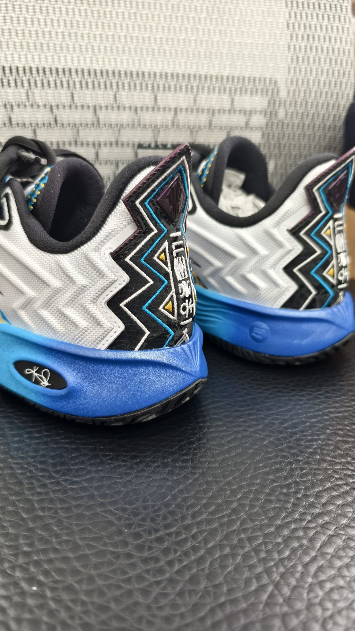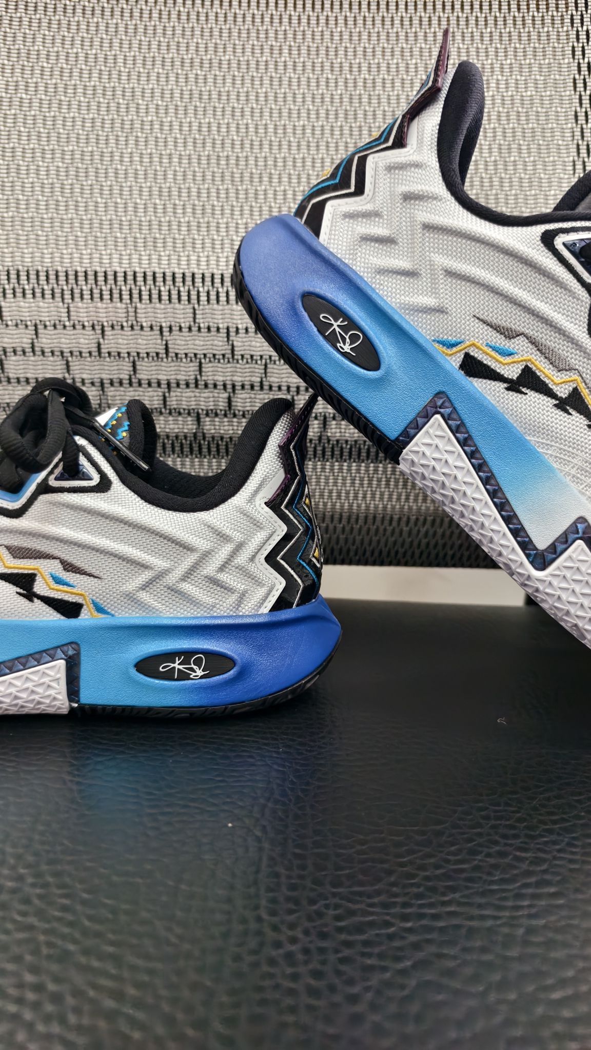 💰趁着双旦2开的价格入手了达拉斯配色的欧文2,真的是好看,好看,太好看了! 🔵白蓝撞色的主调超清爽,鞋后跟的几何纹路搭配紫蓝镶边,细节里透着设计感✨,鞋身的黄黑线条点缀得恰到好处。唯一可惜的就是看不到欧文今年在主场穿了! ⛹️♂️刚上脚第一感觉就是包裹感超赞👌,鞋面包裹得贴脚但不挤脚,后跟的填充软乎乎的。 👟鞋底的纹路抓地感很实,试了下急停和变向,一点都不打滑,落地的时候中底的回弹也很柔和...