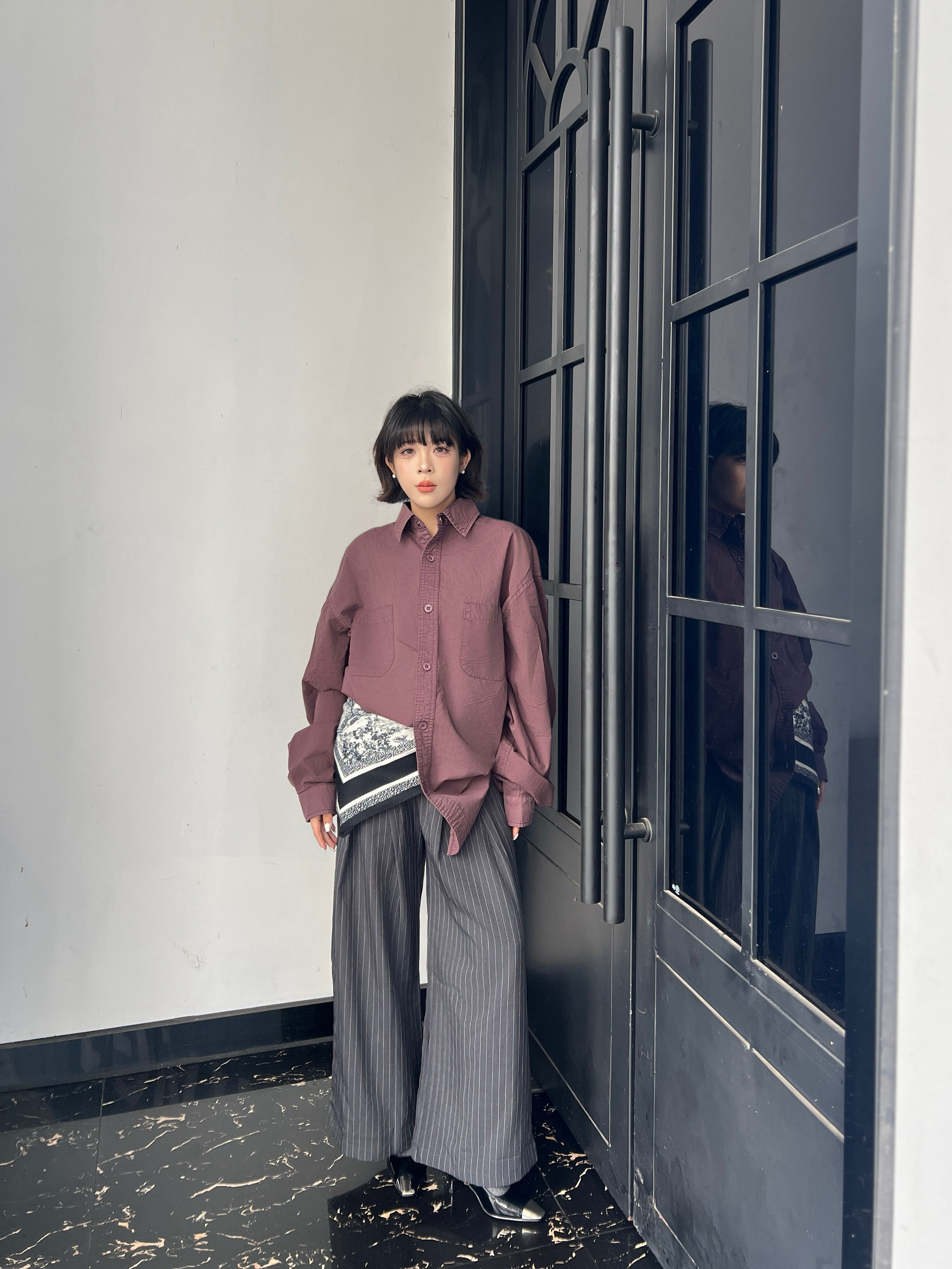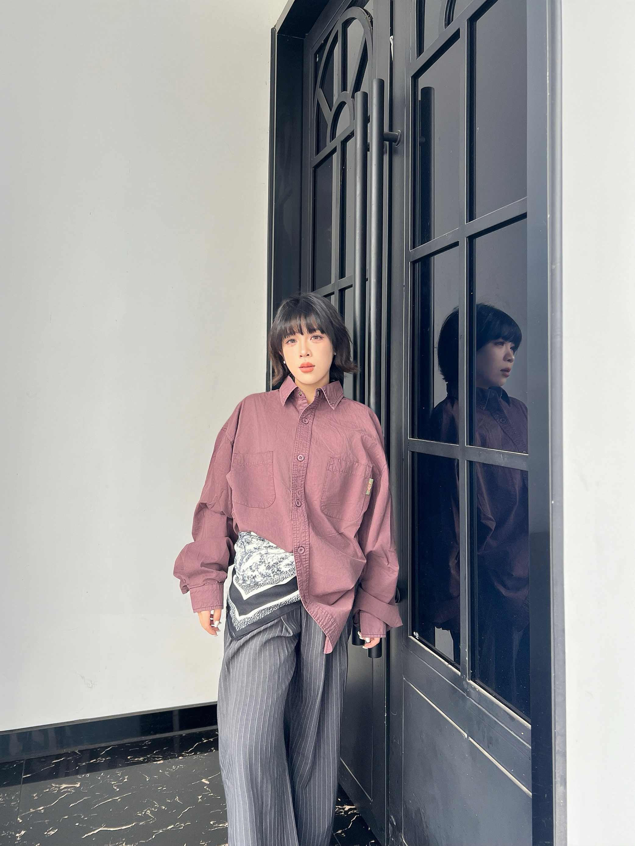 廓系的版型 对瘦子特别友好~衣服没有图案就是简单的款式 衣领和袖口内衬做了图案点缀,好特别!!如果觉得太长可以像我这样折起来,效果不错😌 质感版型在线,长期主义人的可学可勤知识分子风~