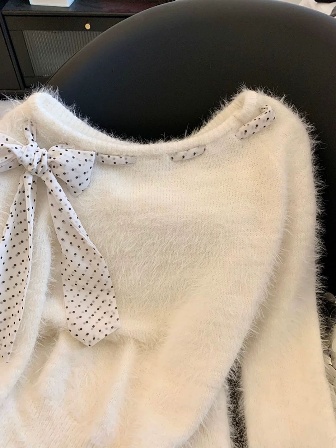 这件白色波点绑带毛绒上衣简直是纯欲风穿搭的天花板!软乎乎的水貂毛面料摸起来像云朵一样细腻,贴身穿亲肤又保暖,完全不会有扎皮肤的不适感。侧边的波点绑带蝴蝶结设计是点睛之笔,灵动又俏皮,轻轻一系就能拉满少女心,还能根据身形调节松紧,对各种身材都超友好。短款的剪裁还能悄悄拉高腰线,搭配高腰牛仔裤或半身裙都超显腿长,不管是单穿还是叠穿大衣、羽绒服当内搭,都能瞬间让穿搭精致度飙升。60多块的价格就能拥有这样...