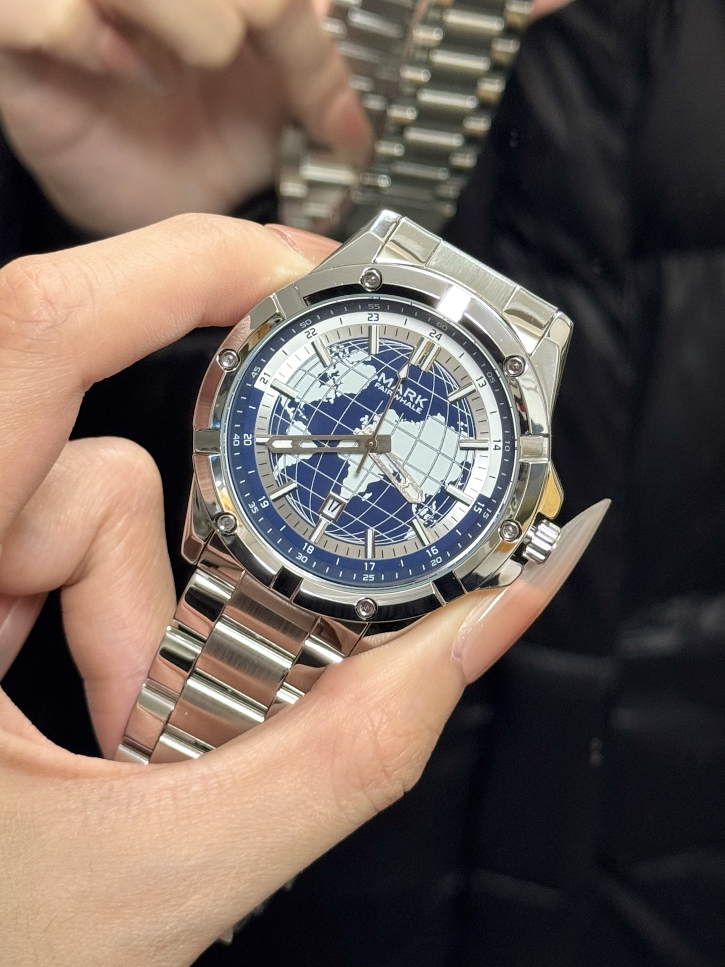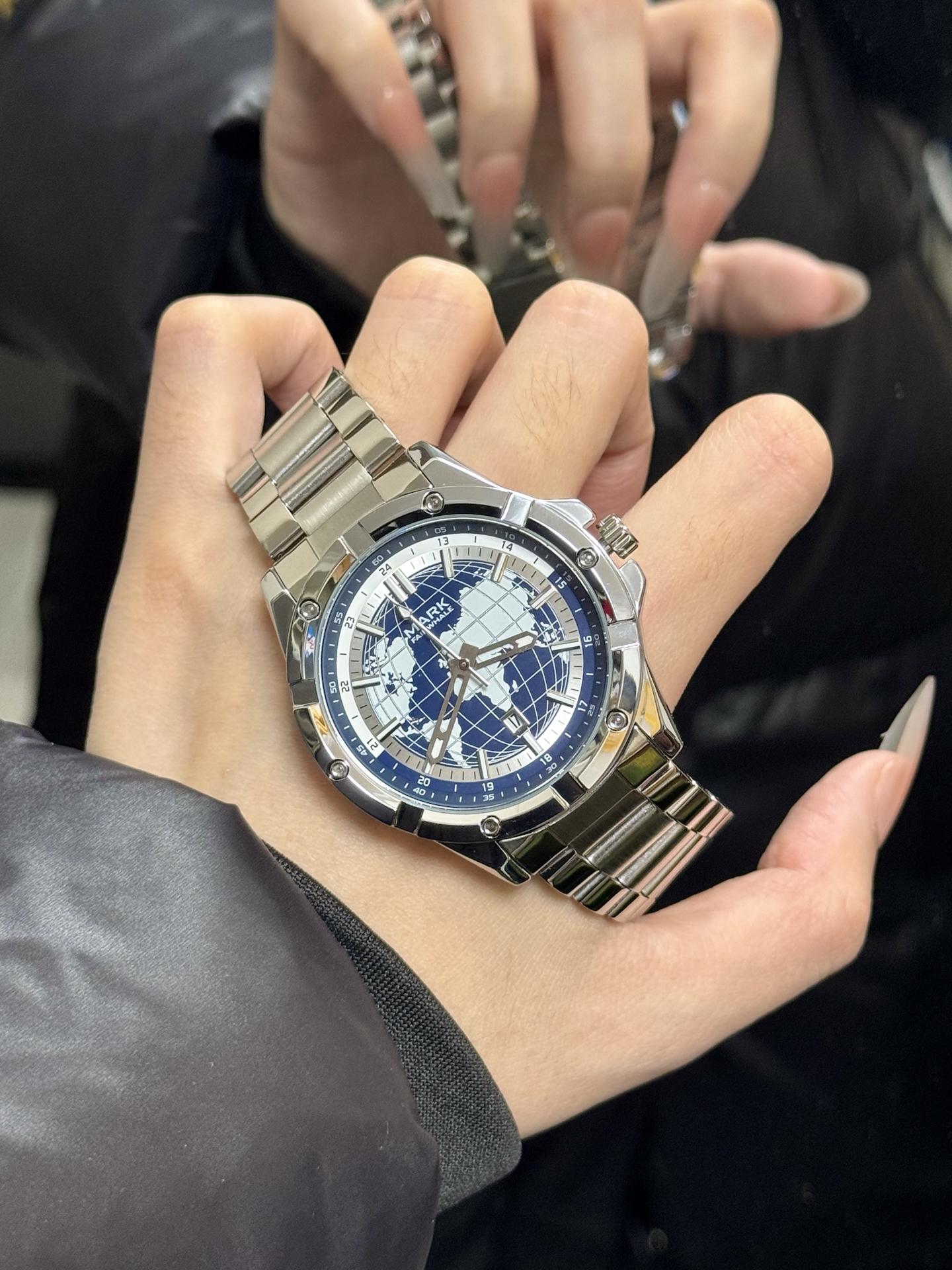 这款蓝色地球🌍表盘手表是我看中了很久的 男朋友比较喜欢穿黑色的大衣 我上手戴了一下感觉这么搭配还不错~ 我是在26年前的时候就拿下了 今天正好是元旦到手了准备送给男朋友 但是不知道这块表会不会拿不出手😅 大家觉得这块表的颜值怎么样? #我们都爱戴手表 #26年马年本命年佩戴什么 #送ta新年第一份礼物 #配饰的尽头是长期主义 #这个礼物送男朋友准没错