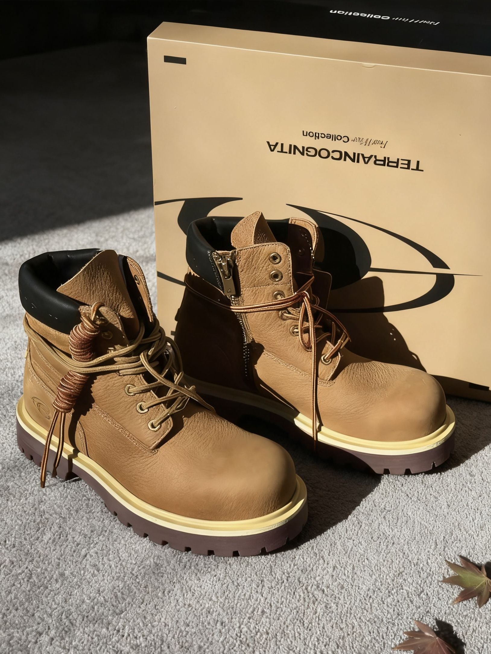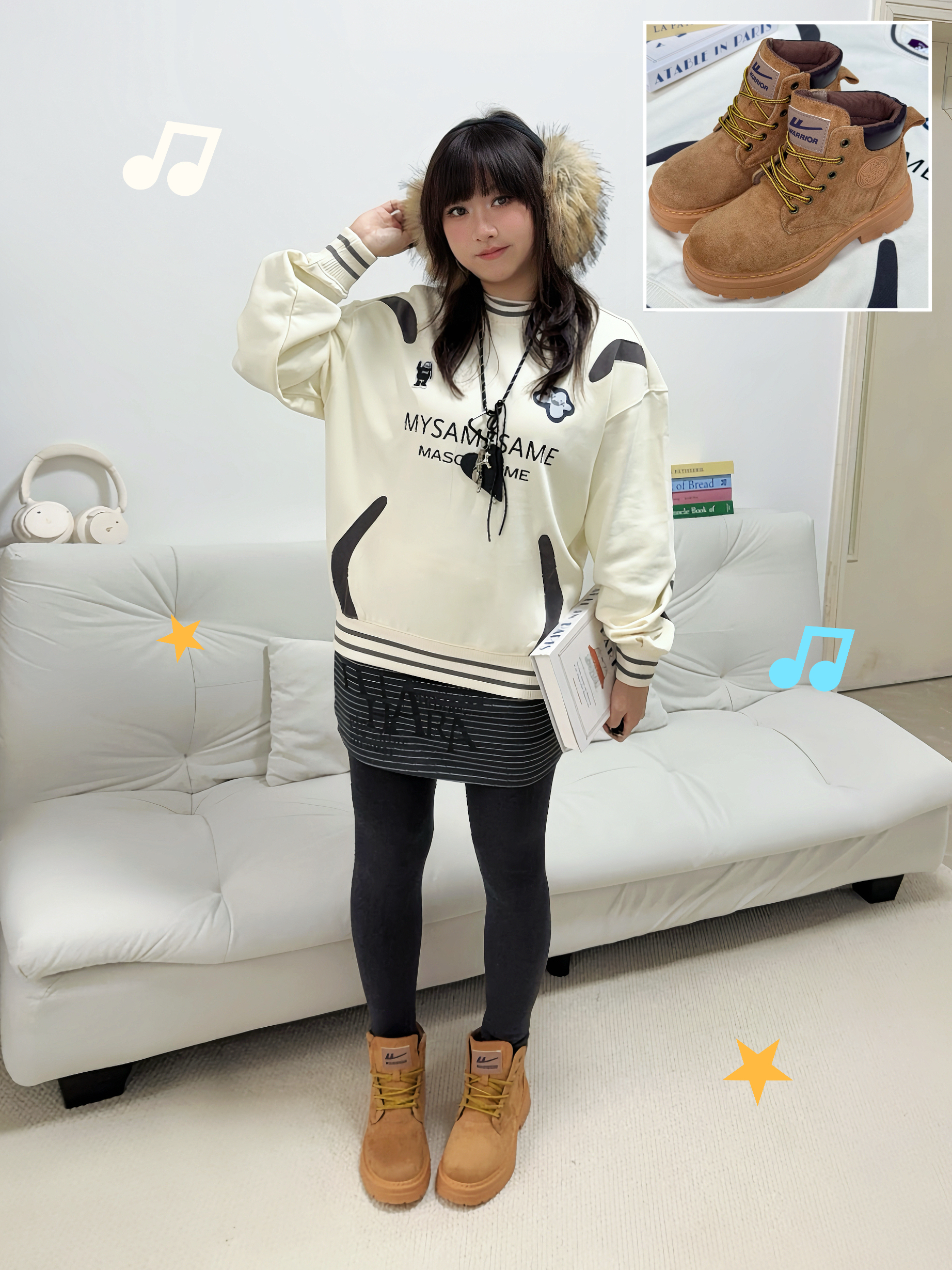入手的强人DJA7-AX57-1男单靴真的太合心意了!沙色的外观简约又大气,不管是搭配休闲裤还是工装裤都很搭。材质用的是二层牛皮绒加牛津布,摸起来质感特别好,鞋面的缝线也很工整,没有发现跳线、溢胶这些做工问题,能看出来品控很到位。 选的38码,对应240的内长,尺码特别标准,上脚后包裹感刚好,走了一段路也没出现磨脚、挤脚的情况,脚感很舒适。而且鞋子的鞋底防滑性也不错,日常通勤或者偶尔户外出行穿...