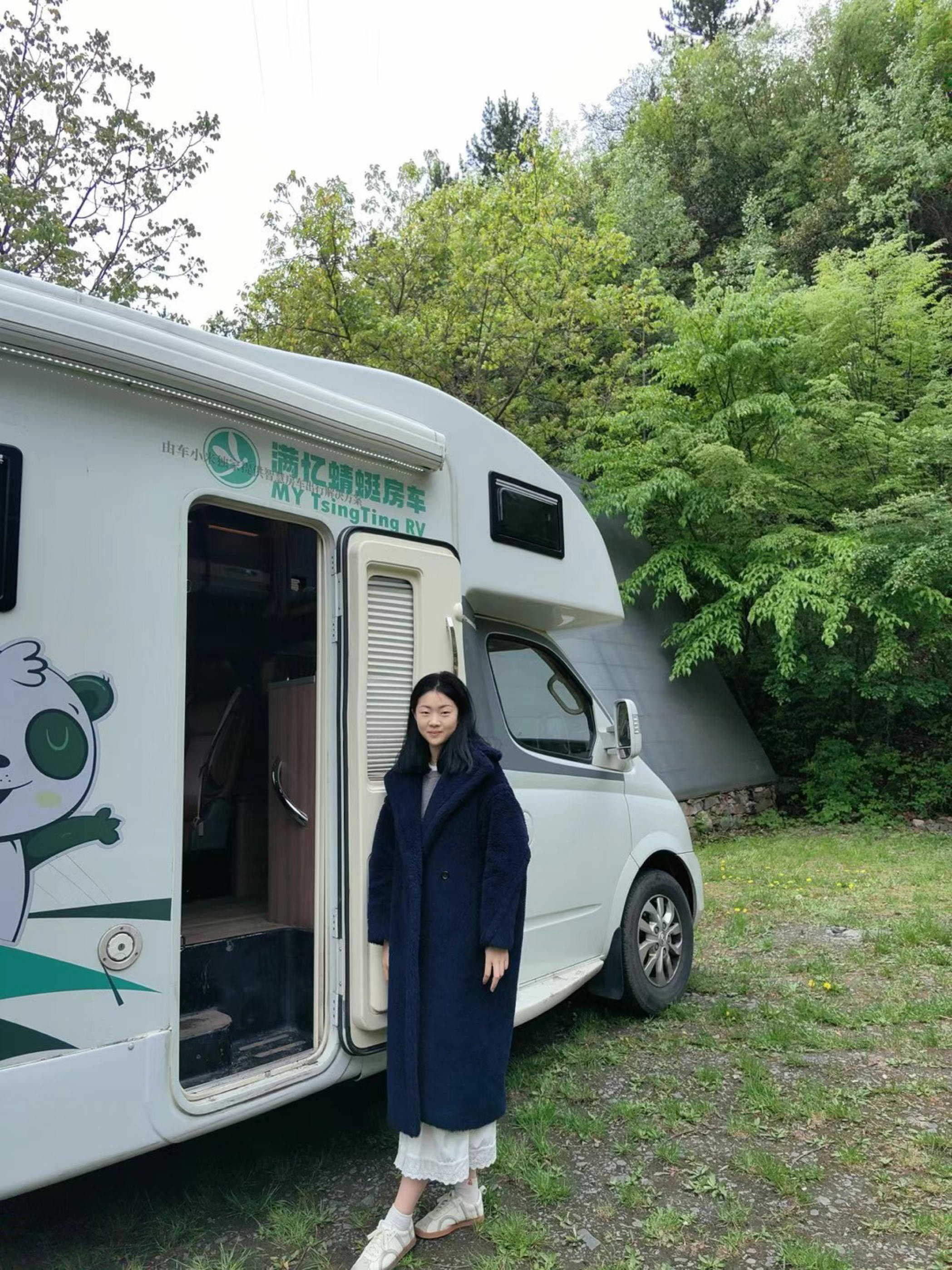 藏蓝长款泰迪大衣搭蕾丝裙+小白鞋,温柔松弛🦋,适配户外轻出行,氛围感拉满✨