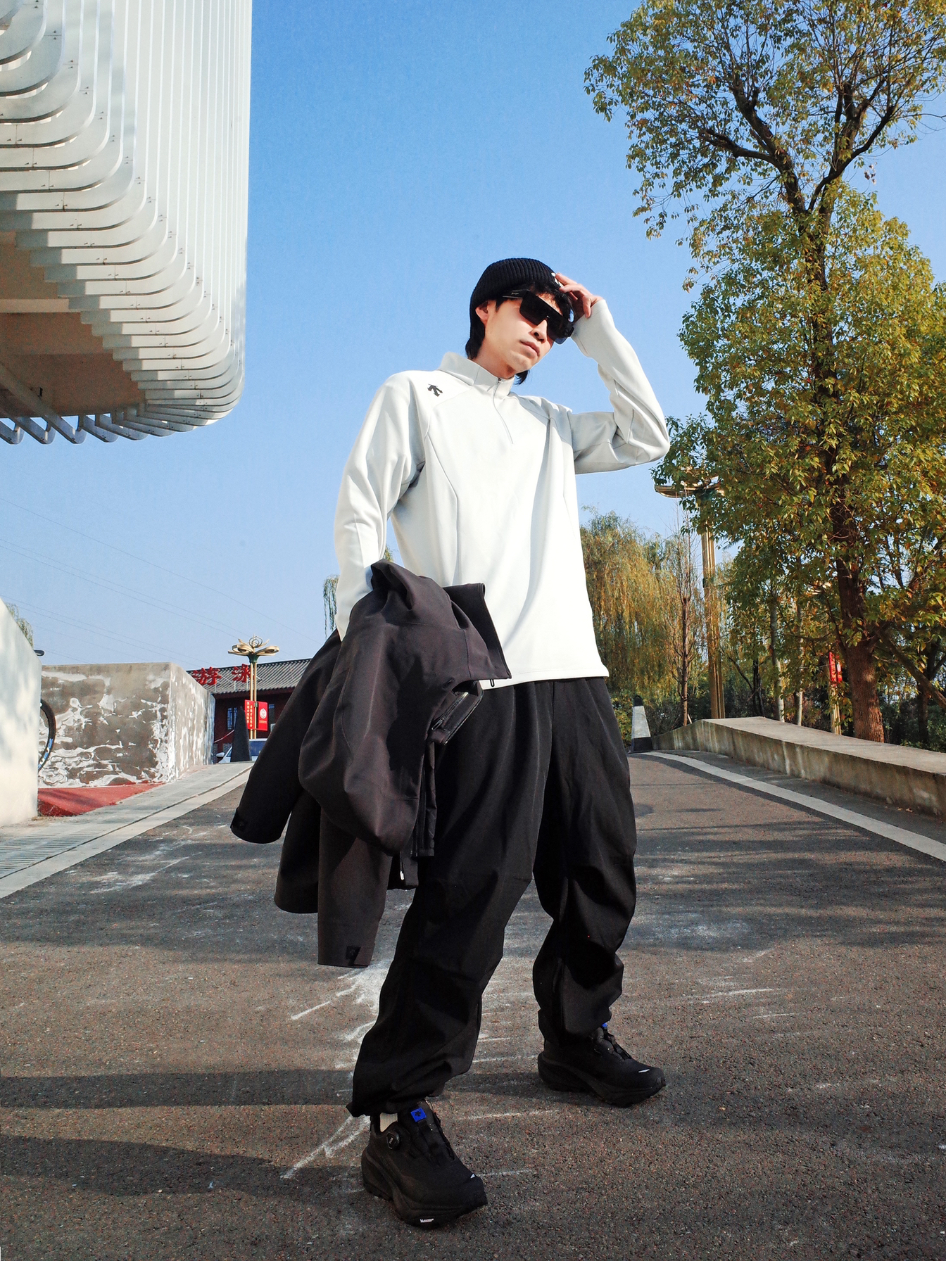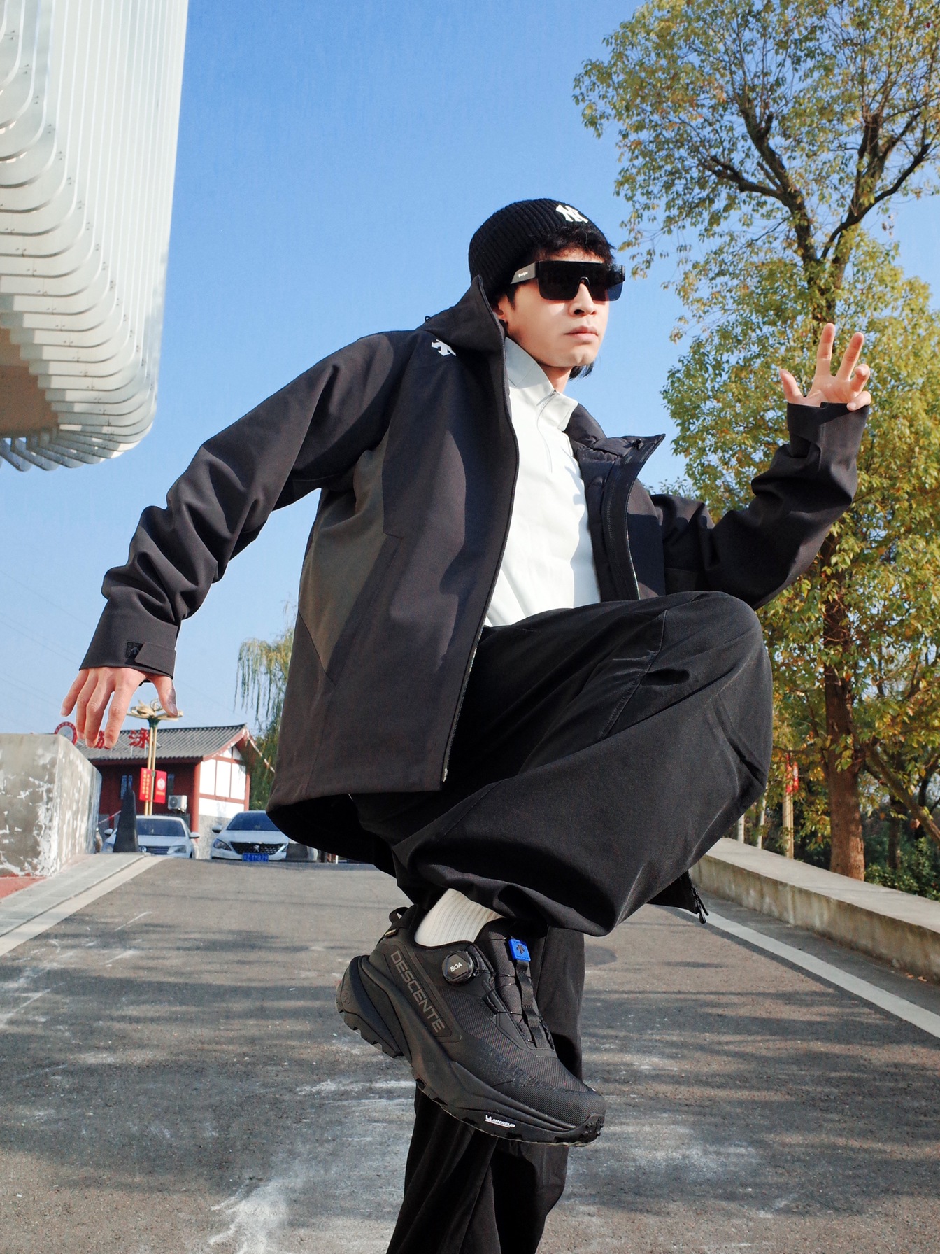 作为城市里一个普通的牛马打工人, 我也有颇为向往的户外生活🏞 不过生活所迫,只能用穿搭来寄托希望✨ - 今天是户外通勤风的帅气boy! 上身一件 DESCENTE迪桑特 TRAINING系列冲锋衣 低调的⚫️黑色耐看又耐脏, 三防设计对我这种城市打工人也挺友好的, 遇到❄️降温或者雨雪天气也不用担心了! - 内搭一件运动长袖, 贴身的设计保暖又舒适🔥 和黑色冲锋衣相撞也是经典配色, 搭配一条黑色...