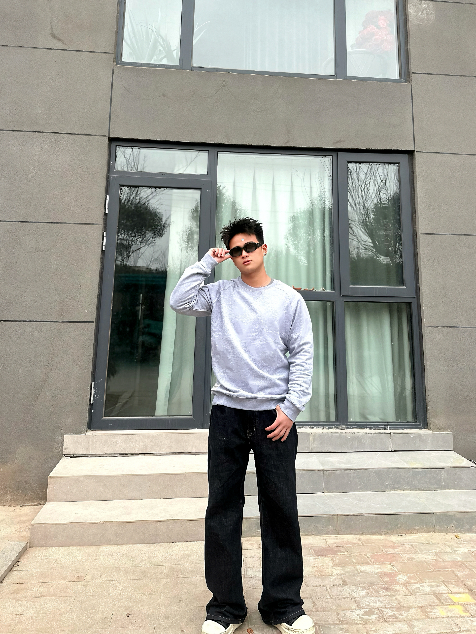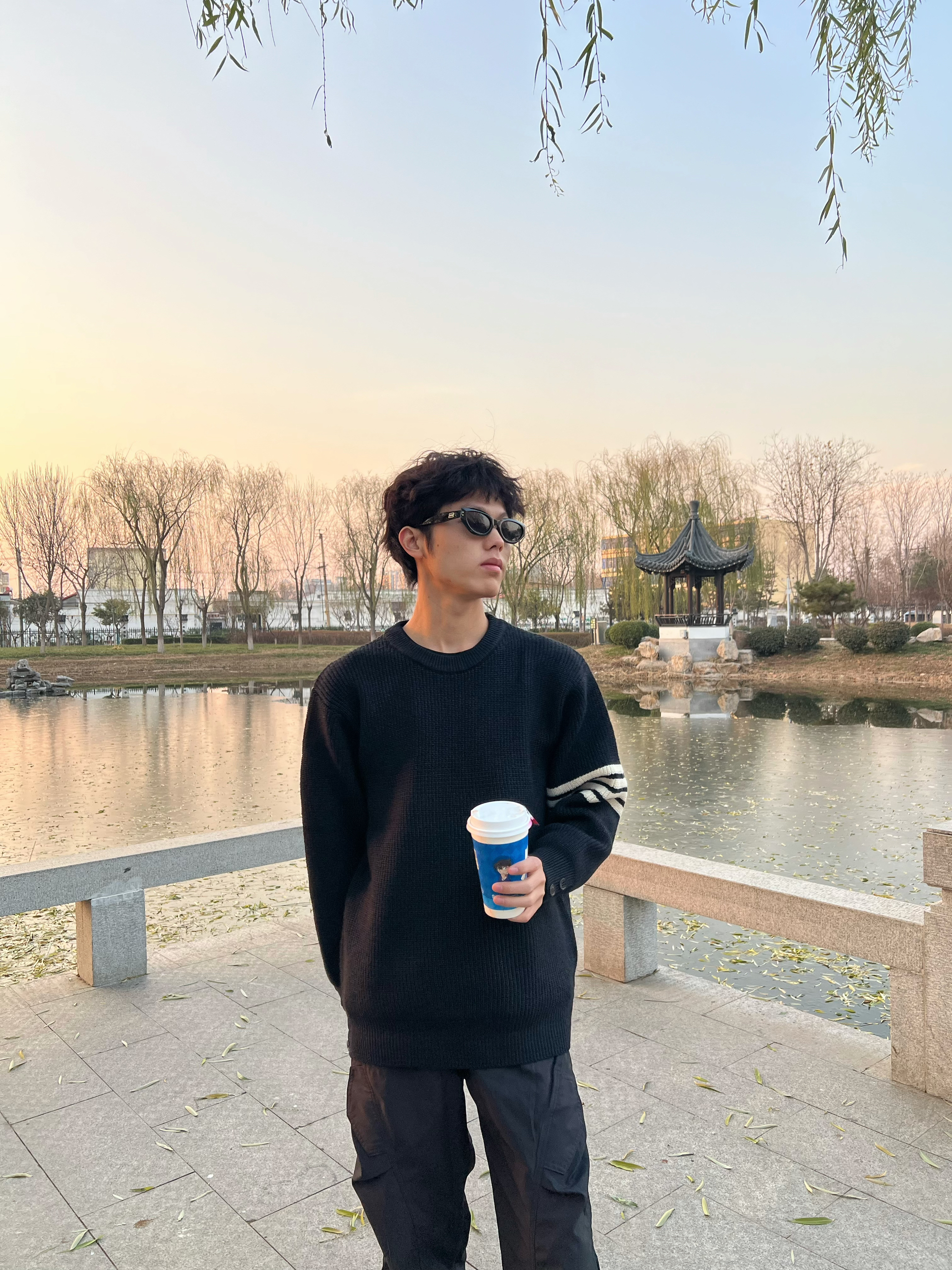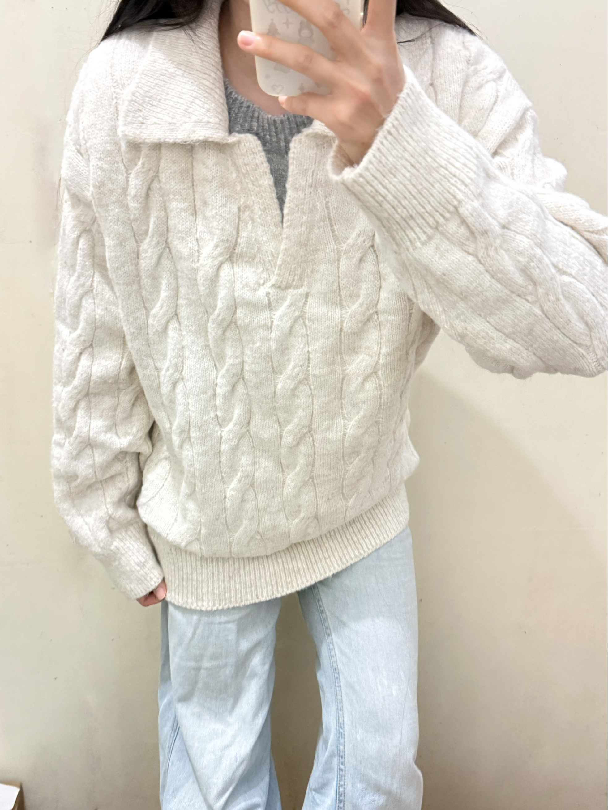 166 102穿的是L码 面料是很厚实的 是假两件的设计哦 我是搭配牛仔裤穿呢 可以搭配半裙穿就更温柔哦 喜欢的宝宝可以参考一下哦