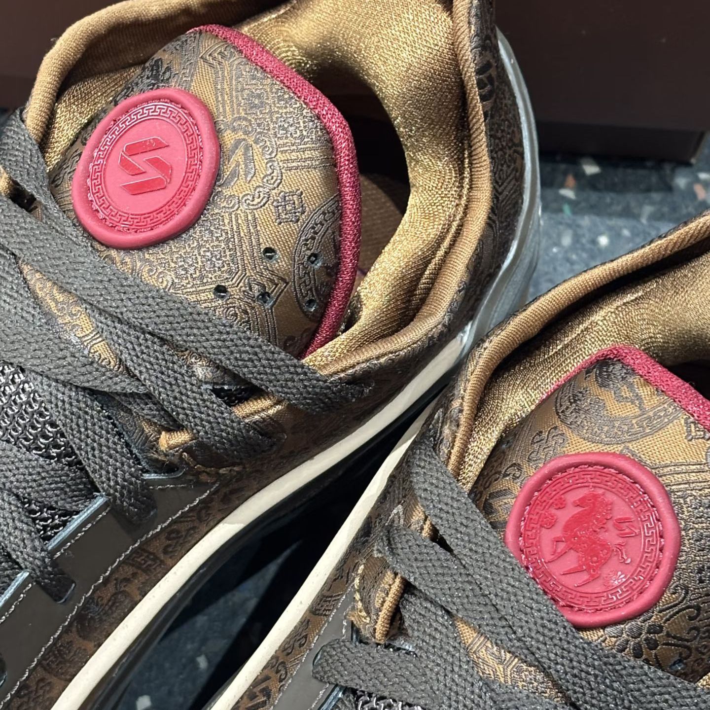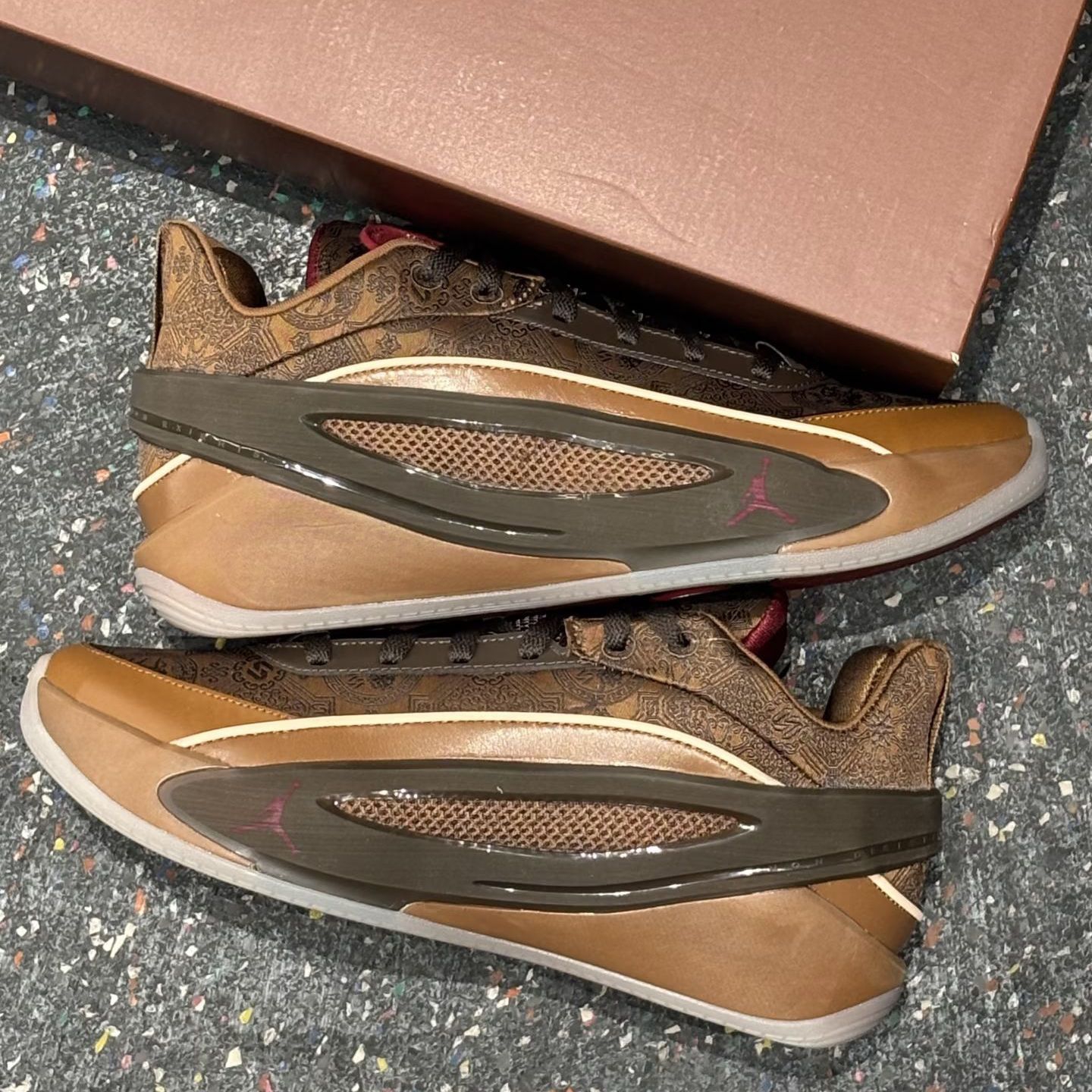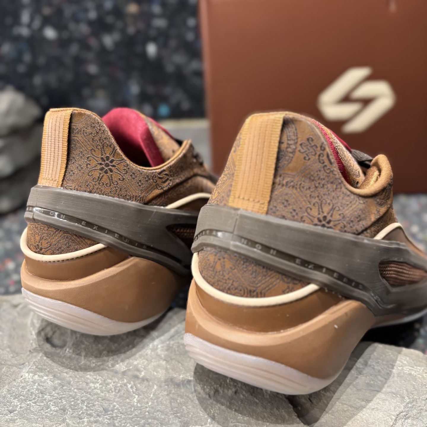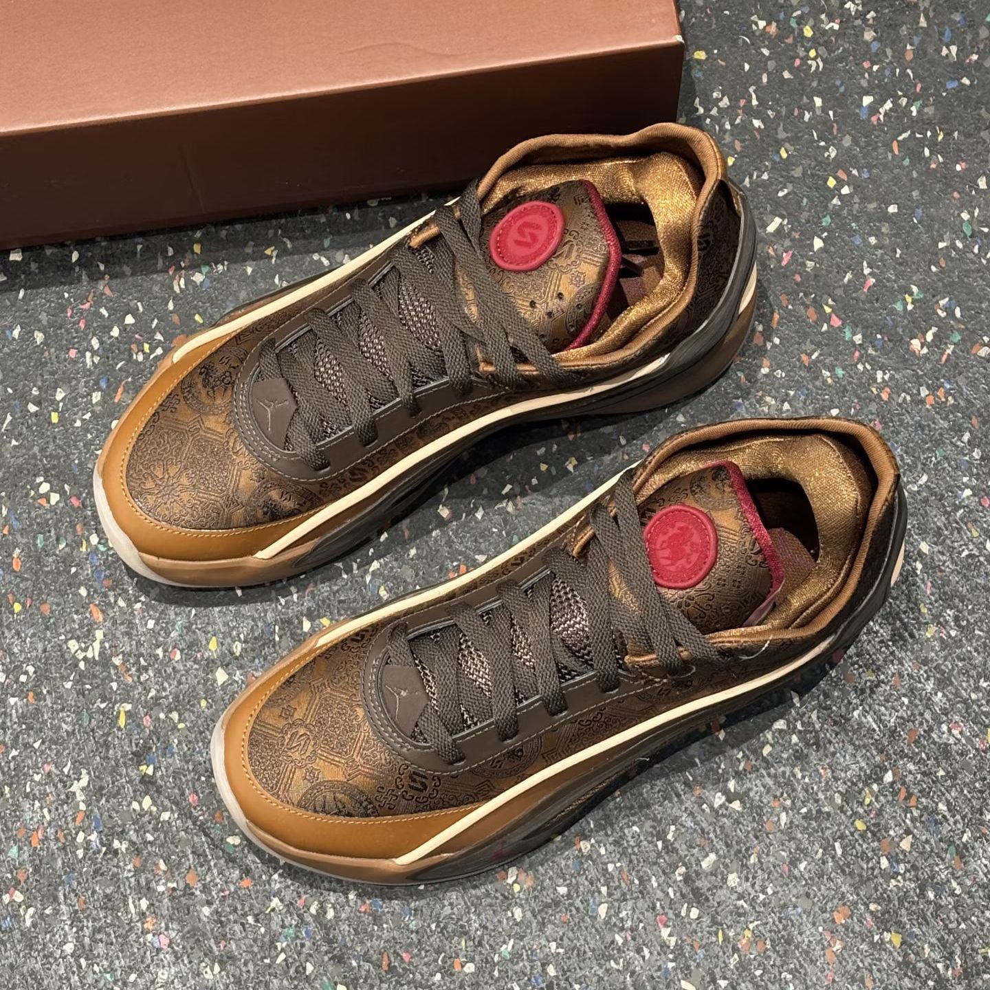 东契奇5代的焦糖棕的主调搭配国风纹理,红标点缀瞬间年味拉满,细节里全是中式美学的巧思鞋身的纹理质感绝了,摸起来超有手感,搭配同色系鞋盒仪式感拉满,不管是上脚打球还是收藏都超合适 实战性能不用多说,缓震和支撑都在线,这波CNY配色直接把颜值和实力焊死了,谁能不爱啊