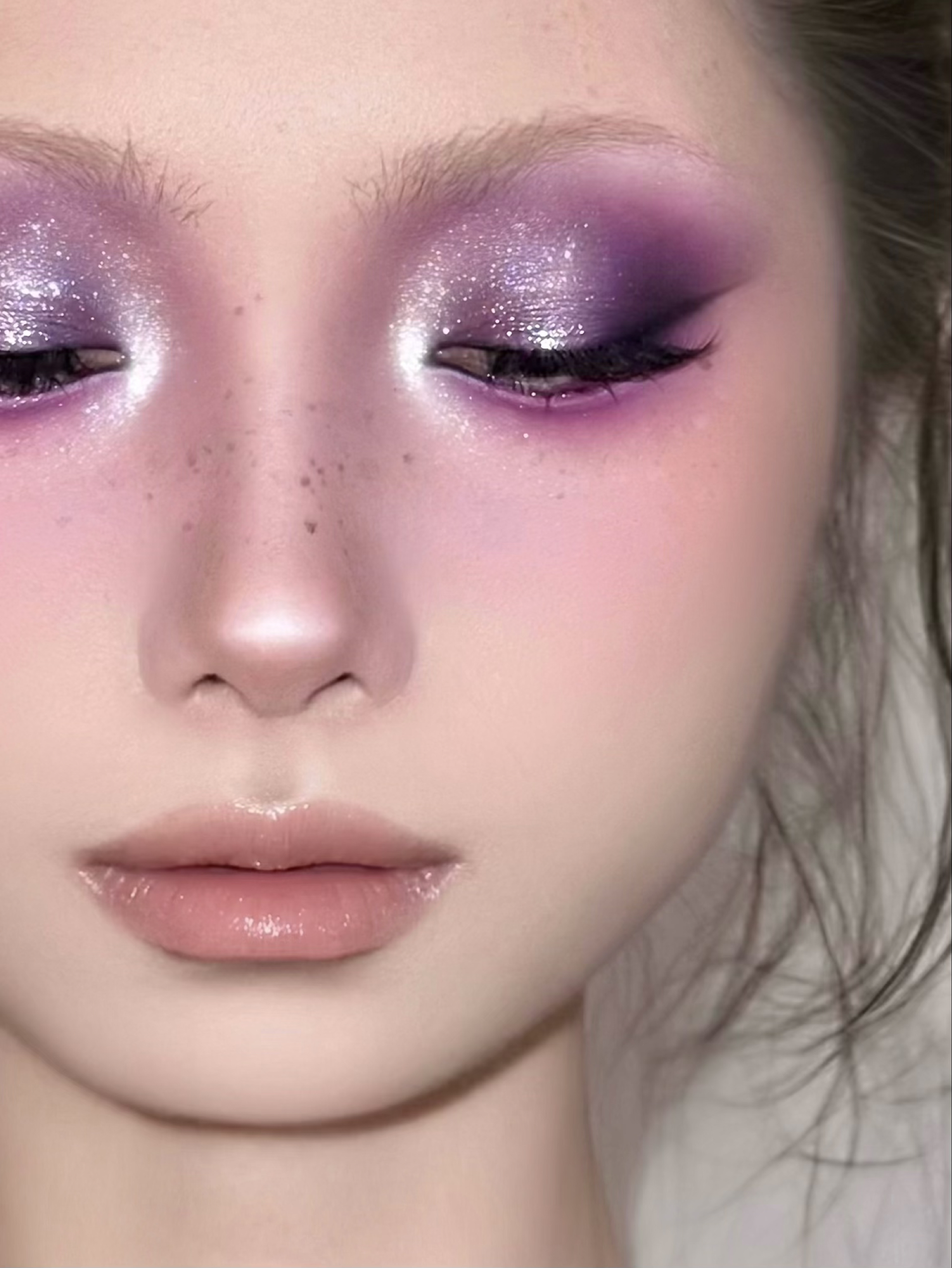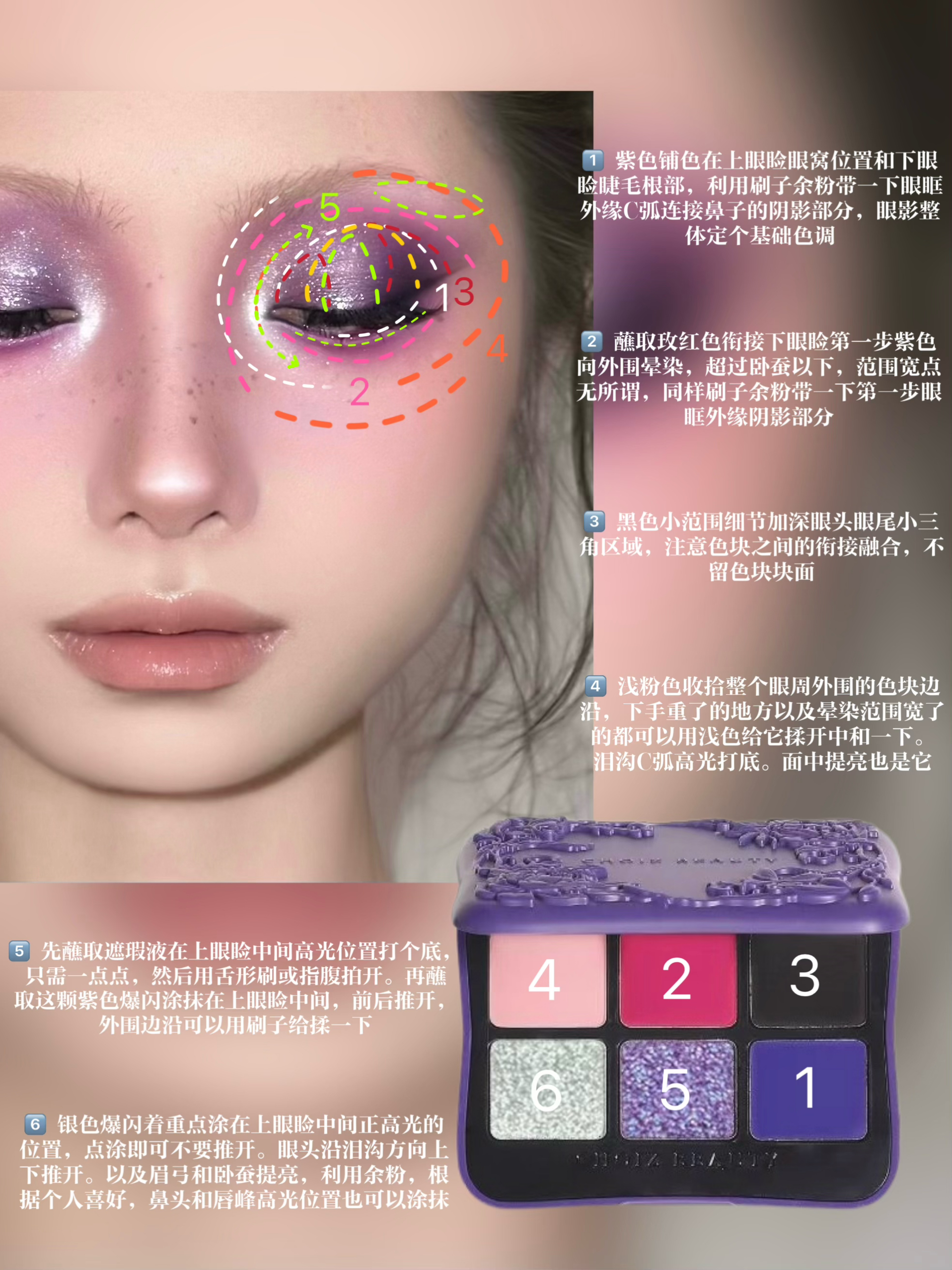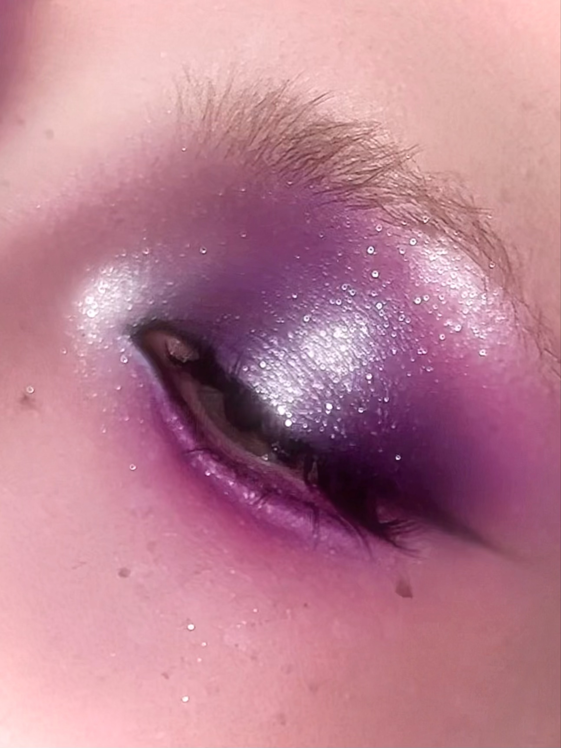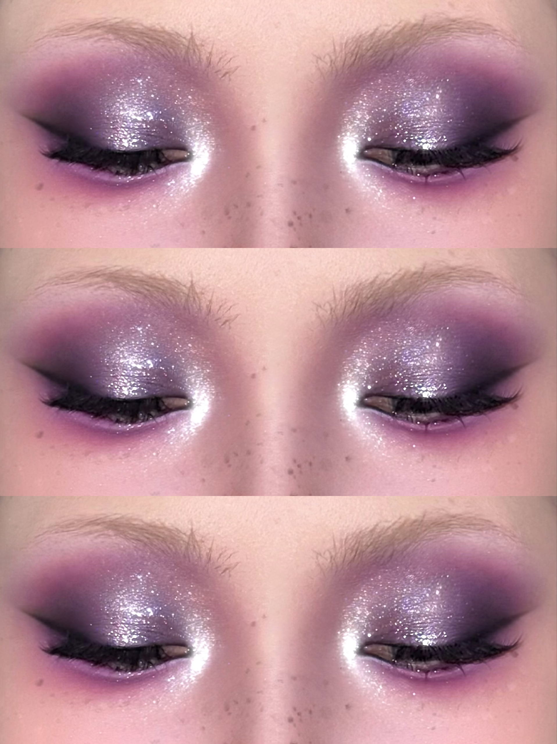 色彩隆重一点的眼妆好像都不太适合画眉毛诶。 我的本意是想要一点电光霓虹氛围感的,混来混去终成紫……🥲