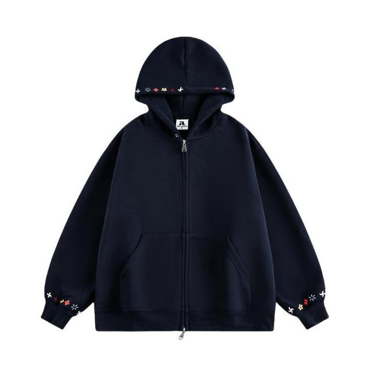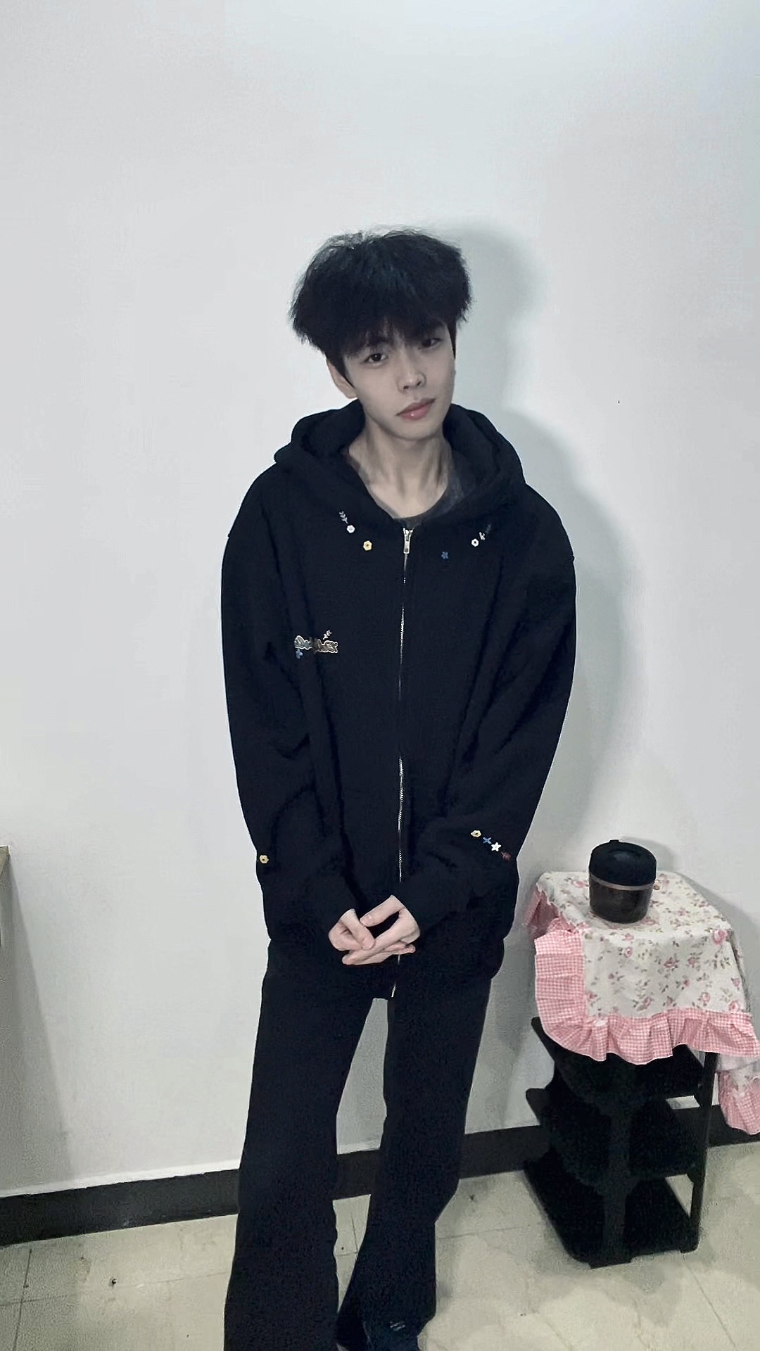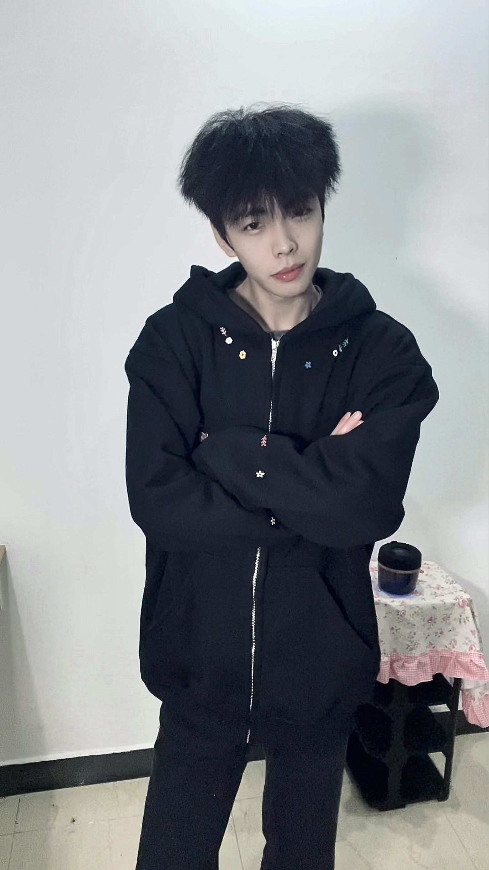这件黑色连帽拉链开衫,算是我日常穿搭里的“万能牌”,把酷帅感和日常的舒适感融合得特别到位。 纯黑的底色自带利落的酷感,不会挑穿搭场景,上学、出门闲逛穿都合适。衣服上的小刺绣和金属装饰细节很加分,打破了纯黑的单调,又不会因为设计太花哨显得浮夸,低调中透着点小个性,刚好戳中我对日常穿搭的期待。 宽松的版型是我选它的关键,不管是把手插进口袋,还是随意搭在身上,都没有束缚感,连帽的设计还能随时切换造型...