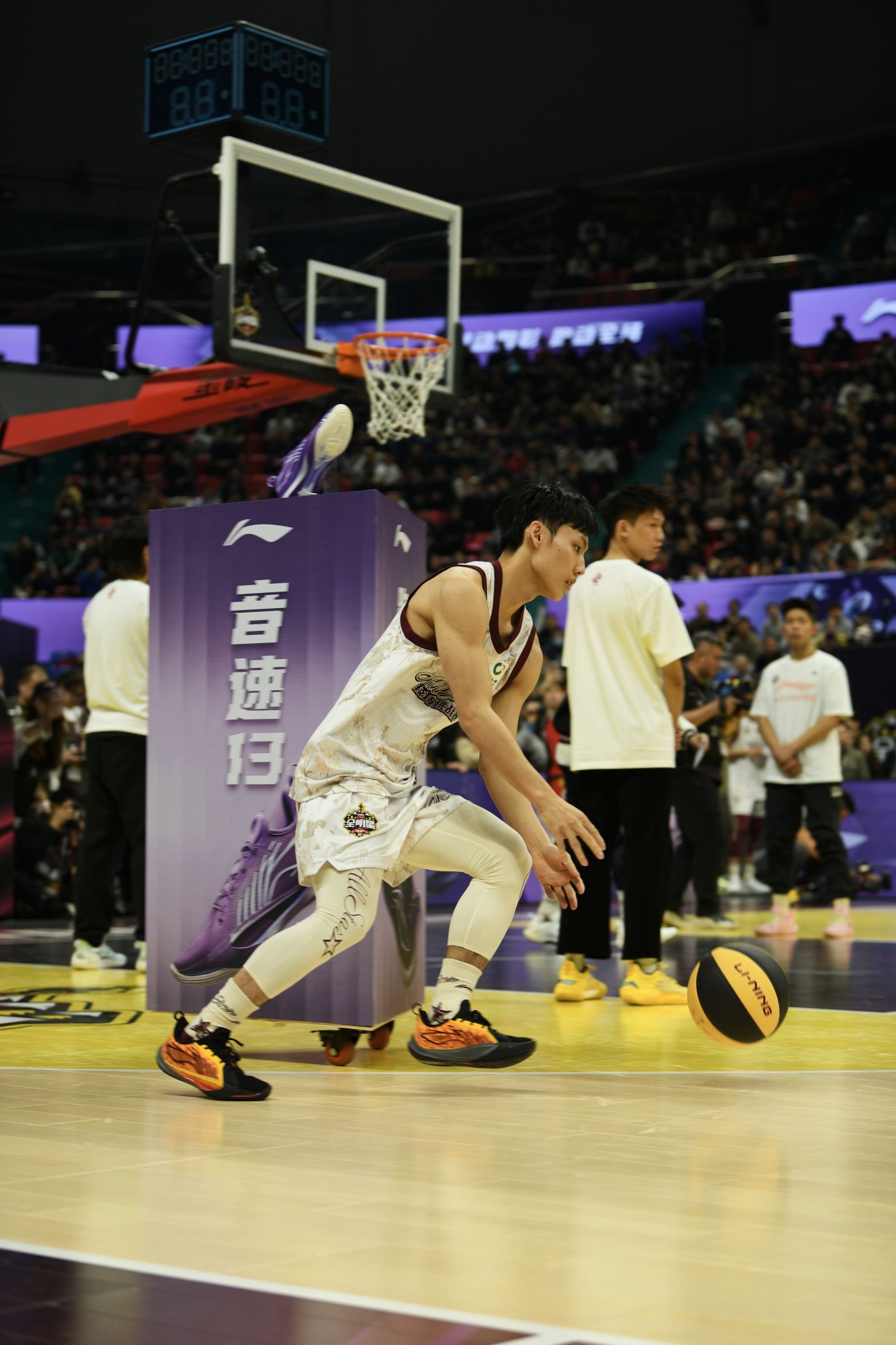 徐杰在场上折返跑、急停变向时脚下的节奏,就懂音速13 V2为啥能成为他的赛场搭档——这双鞋的调性,和小个子后卫的灵动特质简直绝配。 收窄的鞋楦搭配半内靴设计,把包裹感做得刚好到位,不挤脚却能牢牢锁住双脚,就像徐杰在攻防两端的紧凑节奏,每一次启动都没有多余拖沓。中底延续了韧弹的脚感,前掌软弹反馈及时,后掌韧性十足,全场跑下来足底过渡流畅,那种自然的滚动感让突破和跑动都更省力,完全适配爱跑爱跳的打...