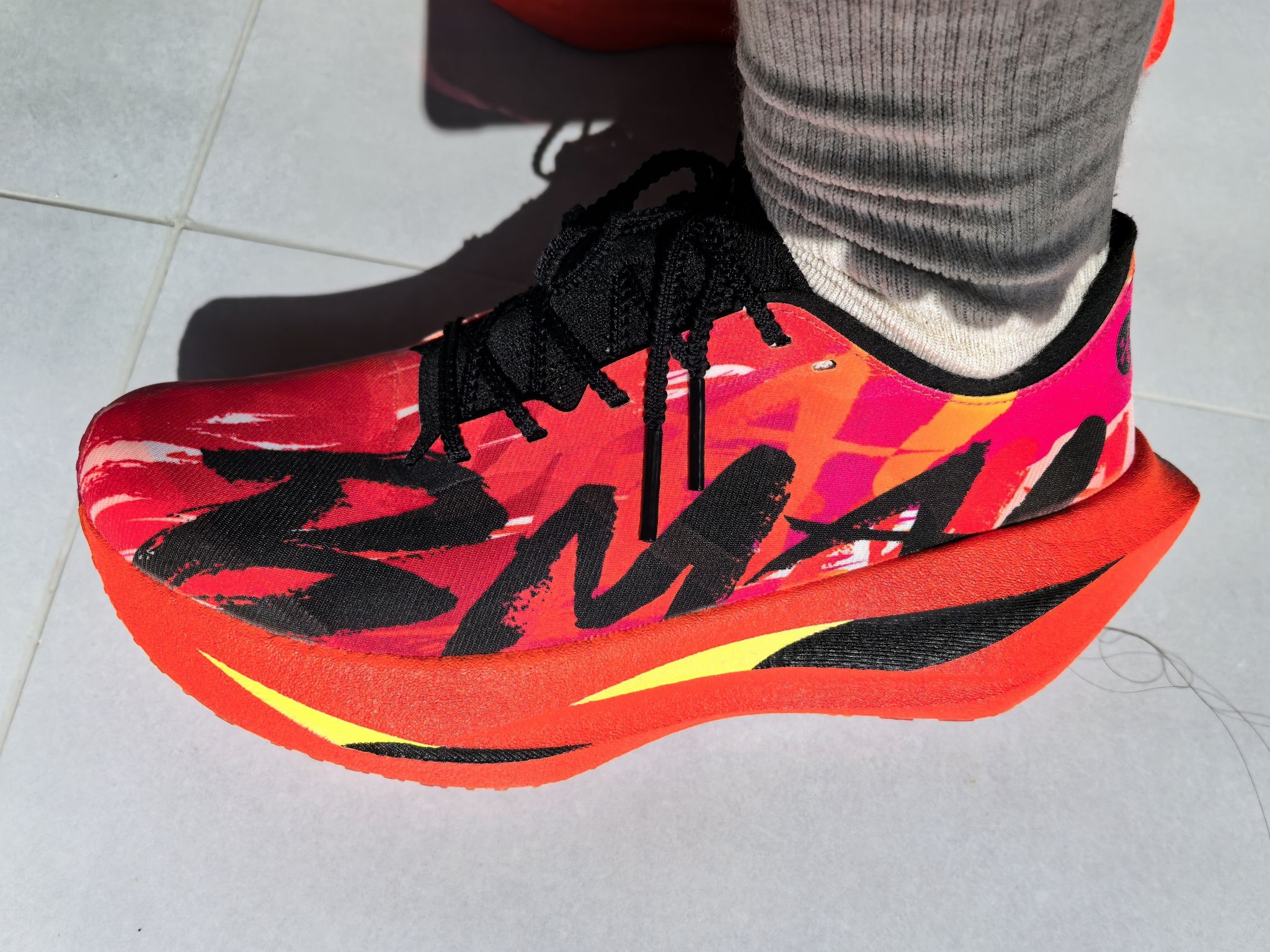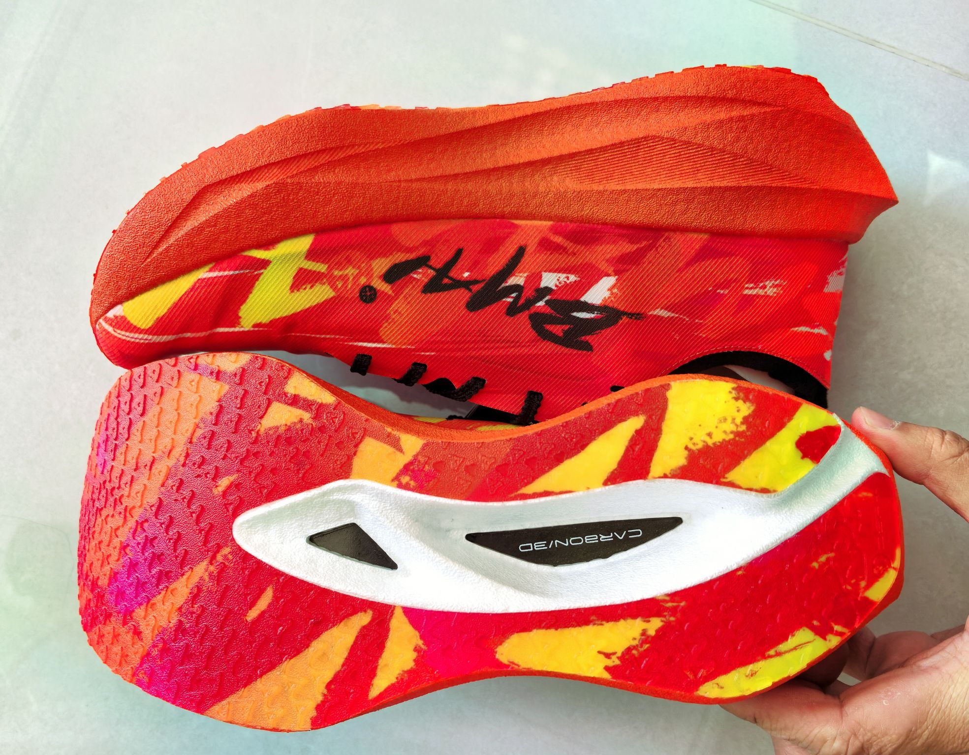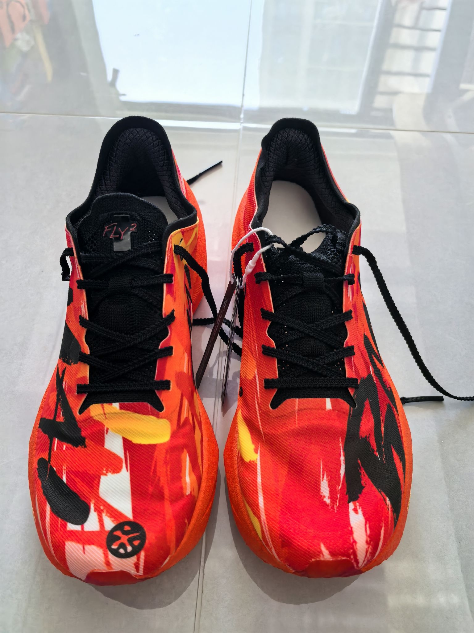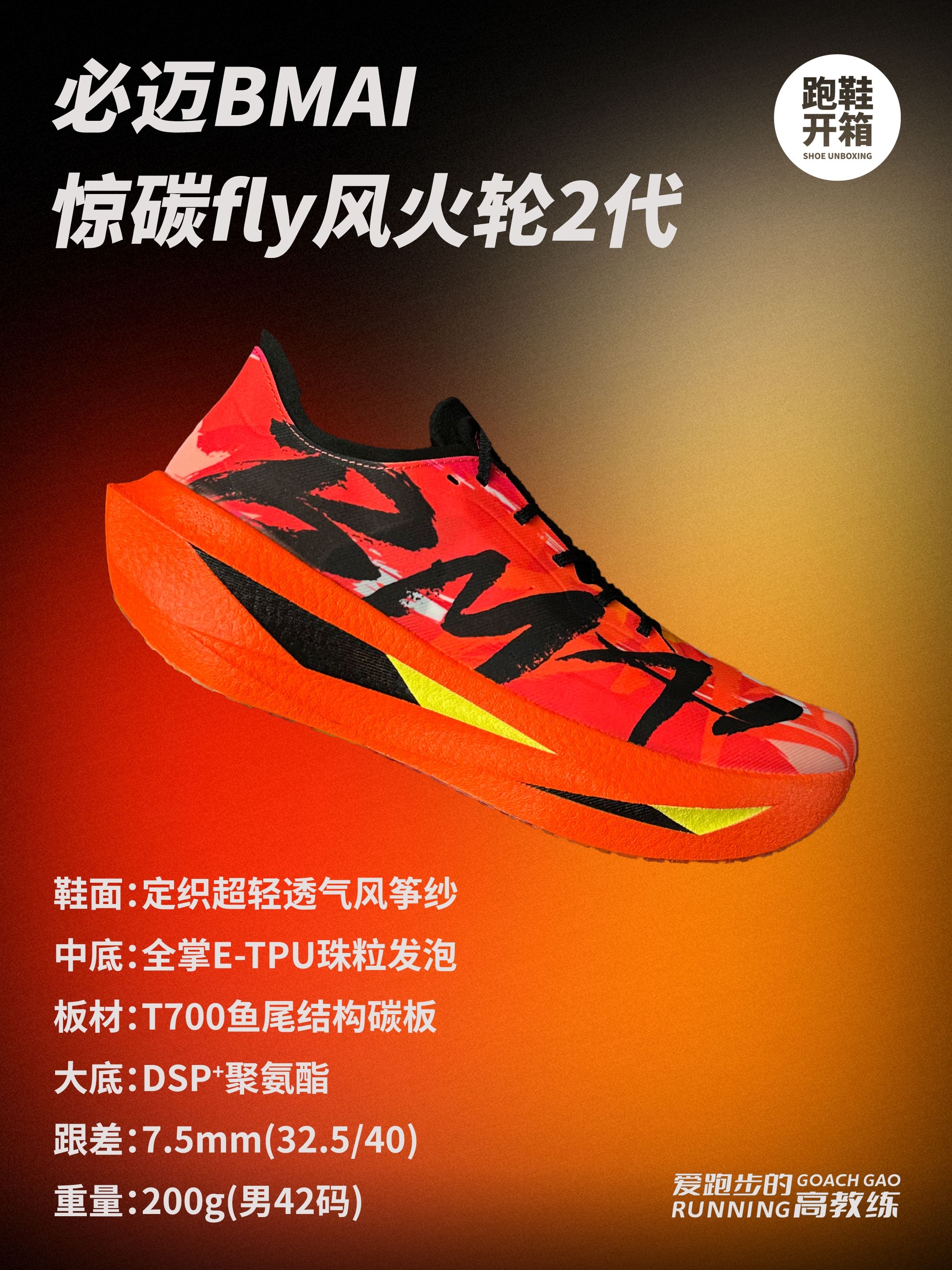 #必迈驚碳全民体验团 #必迈风火轮第2代 期待已久的新款跑鞋终于在元旦到了,真香啊! 整体颜色跟亮,鞋底很厚,细节很好,脚感很弹,必迈跑鞋大字母已经成为了一种独特的品牌调性。 麦穗鞋带好评,不会跑动松。 碳板刚性一般,用力可以掰弯。 鞋底橡胶透明的,防滑可以,但是耐磨性感觉一般。 这次鞋面纺纱透气性感觉不是很好,抗撕裂性可以。 这次前脚掌上翘太高了,不适合6分配一下。 脂肪族材料缓震优秀,但是稳定...