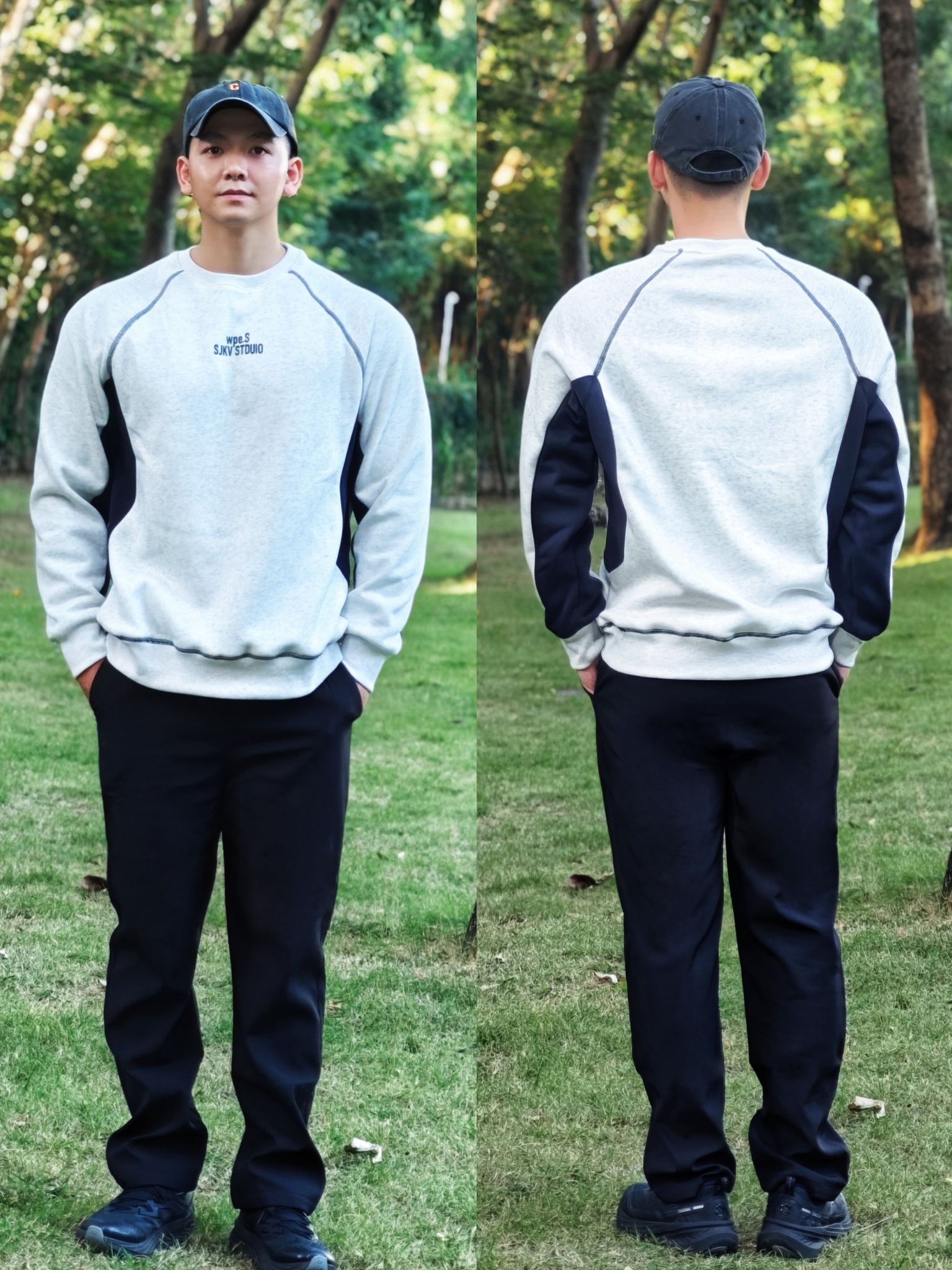 今天上山穿了这套ALEXANDRO FRATELLI的美式复古套装。我175cm/75kg穿XL码正合适,燕麦色加绒卫衣配黑色三防工装裤,妥妥的美式街头感。 卫衣的燕麦色在阳光下特别显质感,加绒内里让山风吹着也不觉得冷。裤子也确实做到了三防,路过灌木丛时露水直接滑落,没渗进去。整体宽松的版型让散步和之后的核心训练时身体能完全伸展开,没有束缚感。 喜欢这种复古撞色和功能性的结合,既有美式休闲的松...