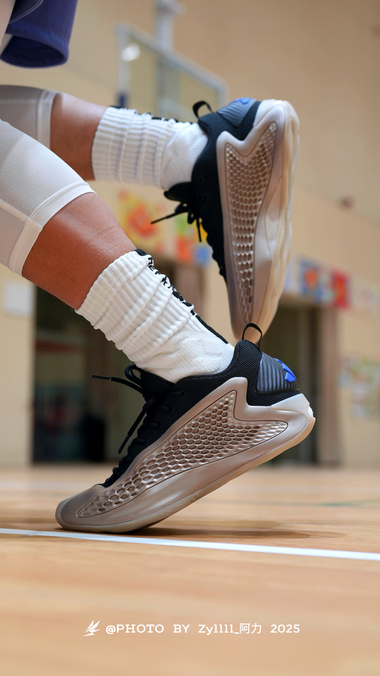 现在来看AE 1 ,突然觉得它还是颜王 这个上脚的颜值,我觉得无可挑剔,我认为它配得上2025年度鞋王 当然,实战性能我只能给到70分,我不太喜欢这个脚感,对于我这个体重来说,前掌真的偏硬而且前掌的包裹对于我得脚型而言不太适合,磨合几场之后会有改善