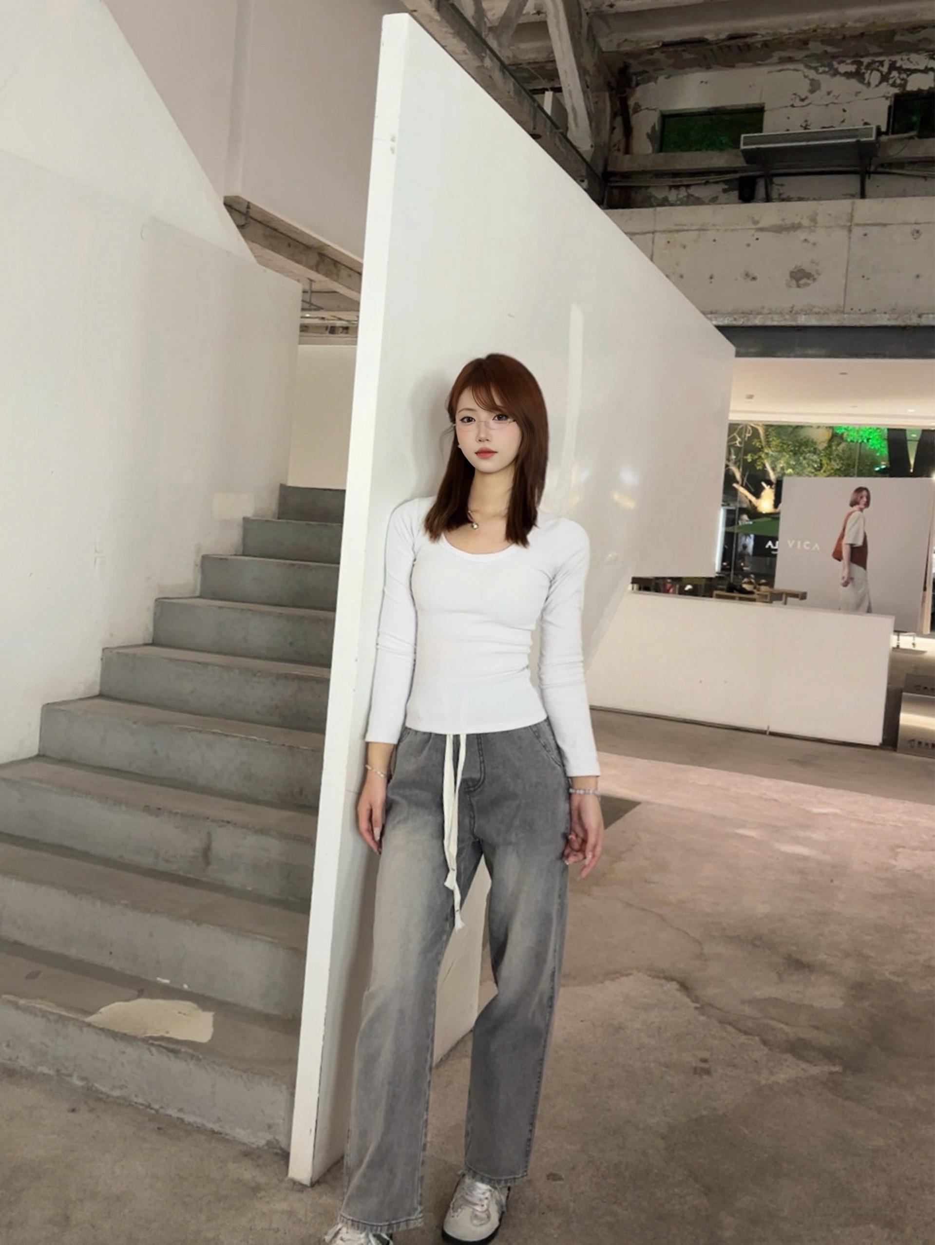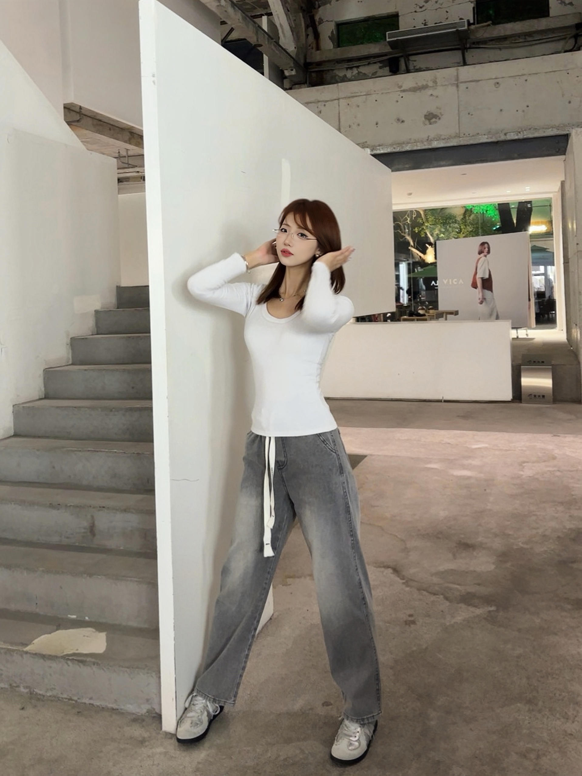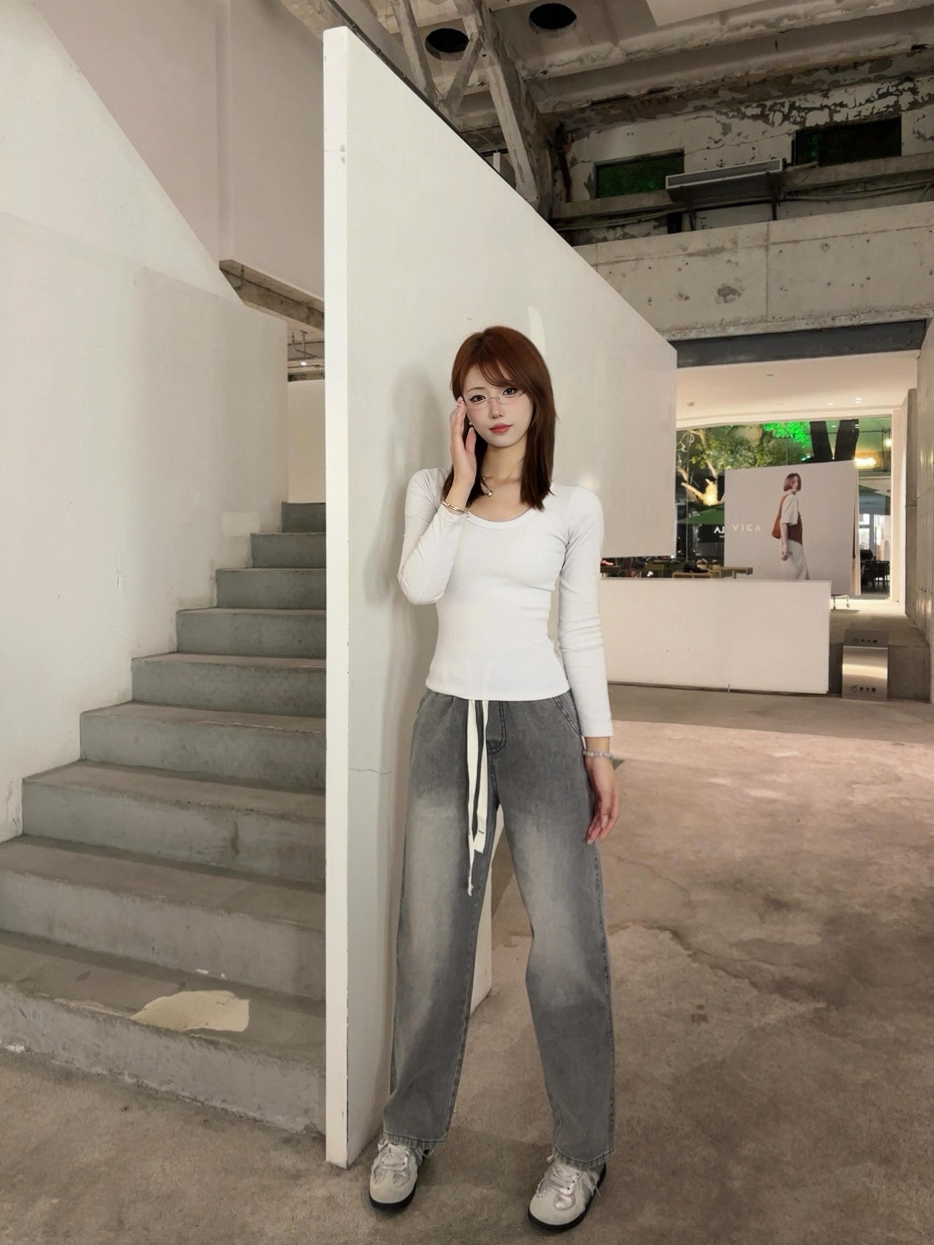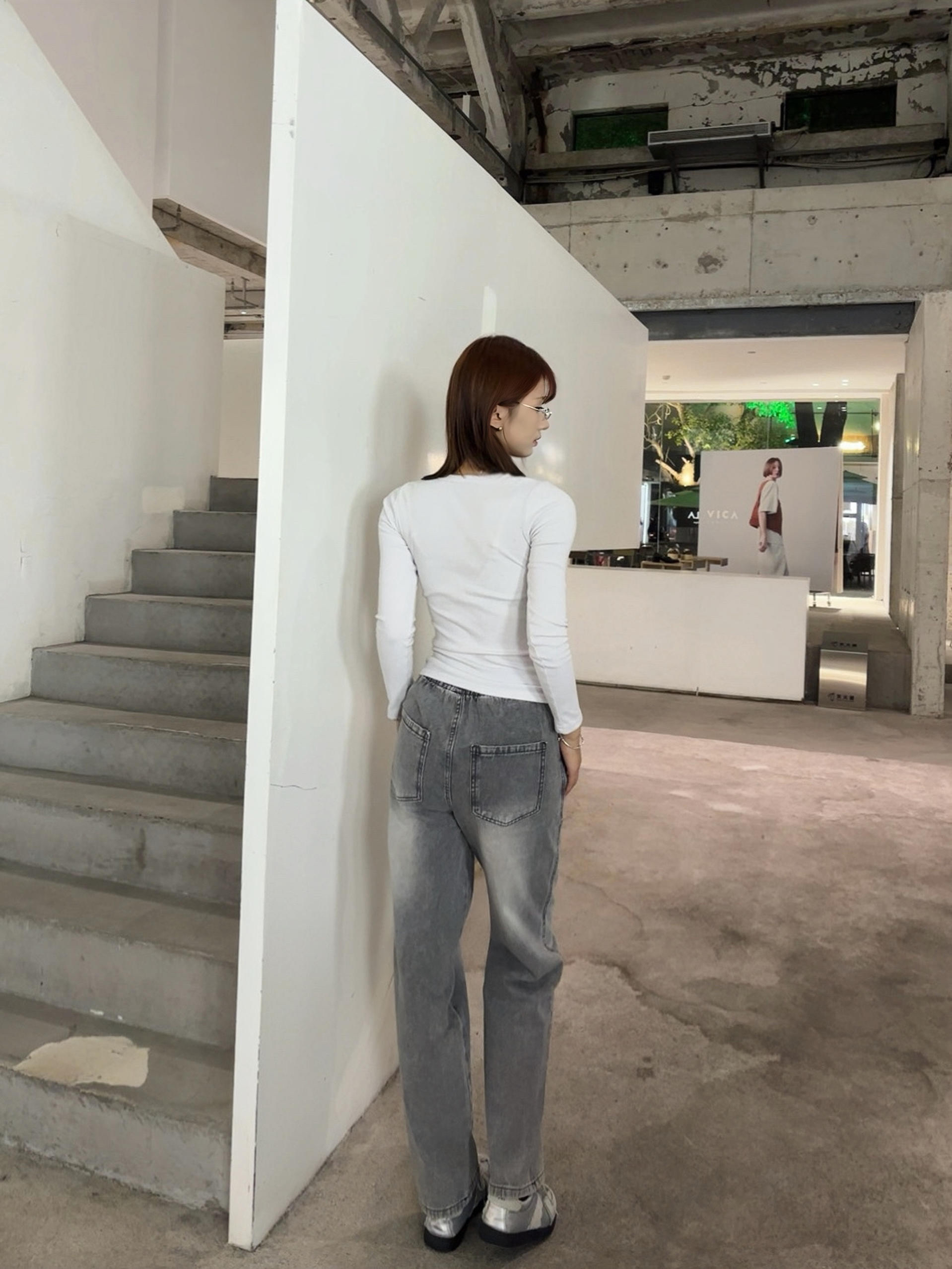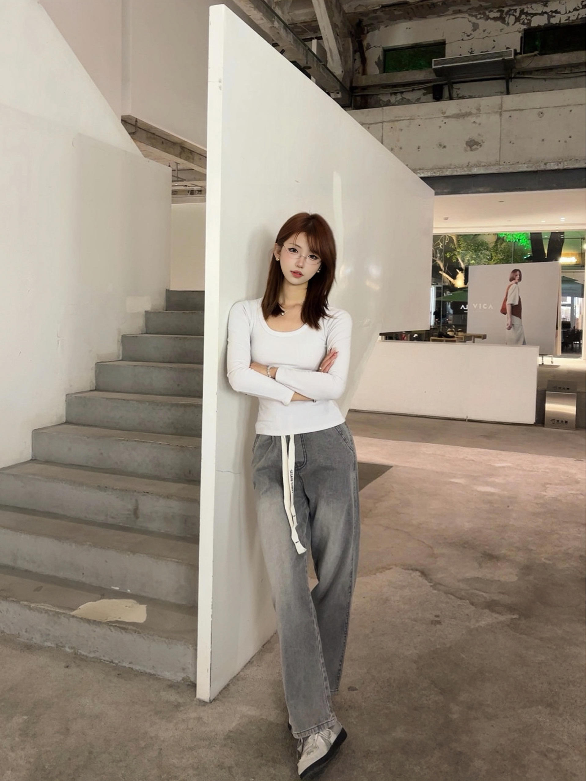 条灰调牛仔裤真的长在我的审美点上了 穿上感觉整个人的松弛感直接拉满 裤型对腿型的包容度绝了 我这种梨形身材也能轻松驾驭 搭配简单的白上衣 我感觉自己随便拍都很出片 日常穿也完全不挑场景