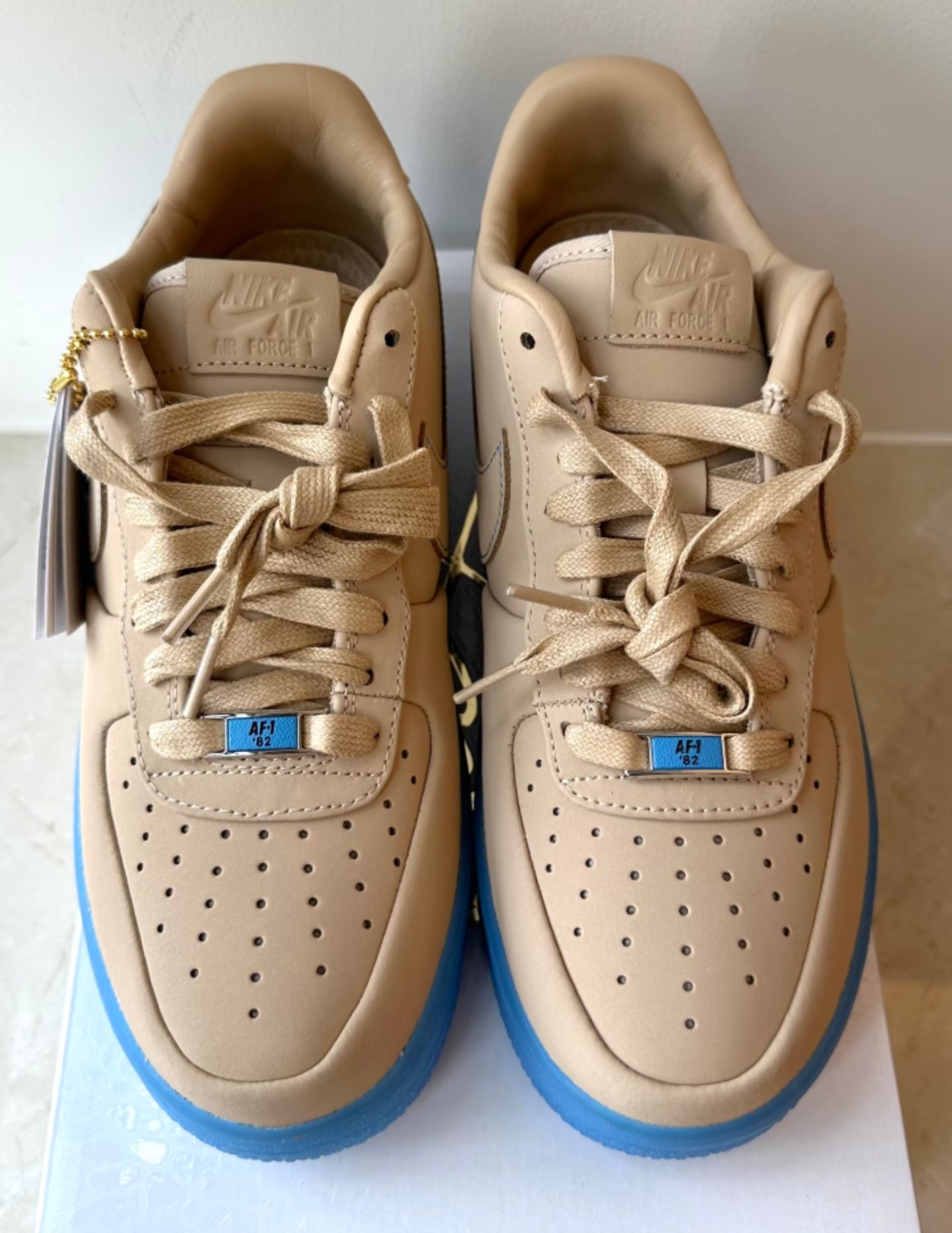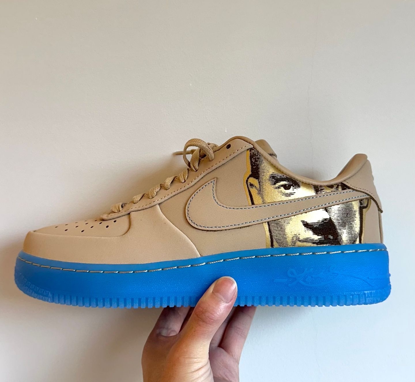 作为科比死忠粉,挖到这双Nike Air Force 1科比联名款的时候,真的感觉DNA都动了!谁能拒绝把刻在骨子里的曼巴精神穿在脚上啊,这双鞋直接把情怀和颜值焊在了一起💘 先看颜值,米杏色的麂皮鞋身质感直接拉满,细腻的绒面触感上手就知道是高端货,温柔的浅调还特别衬肤色,日常搭配完全不挑风格。侧边的科比人像印花是点睛之笔,复古的黄棕色调和鞋身形成层次感,每一次看都能感受到对科比的满满致敬;亮蓝...
