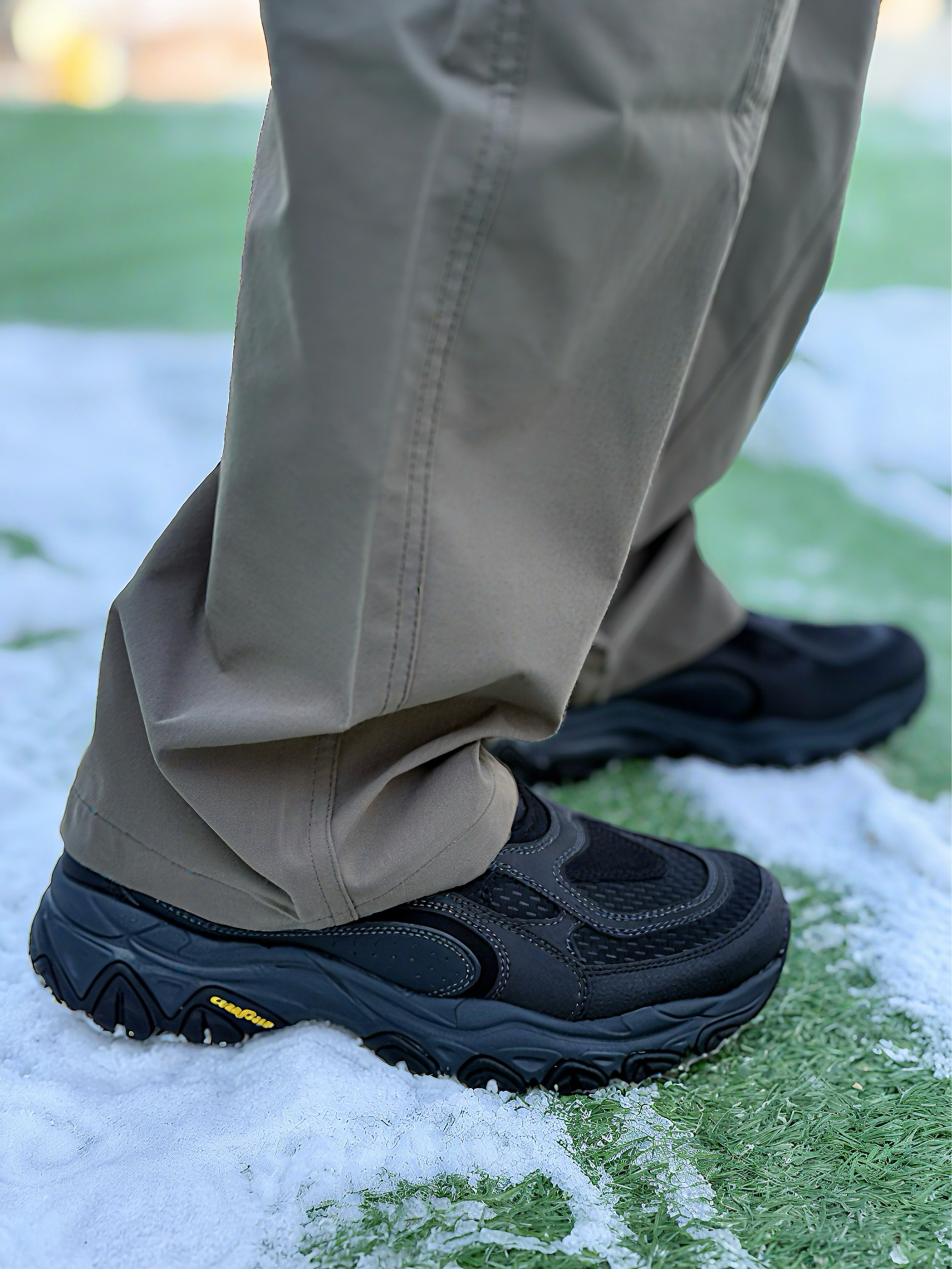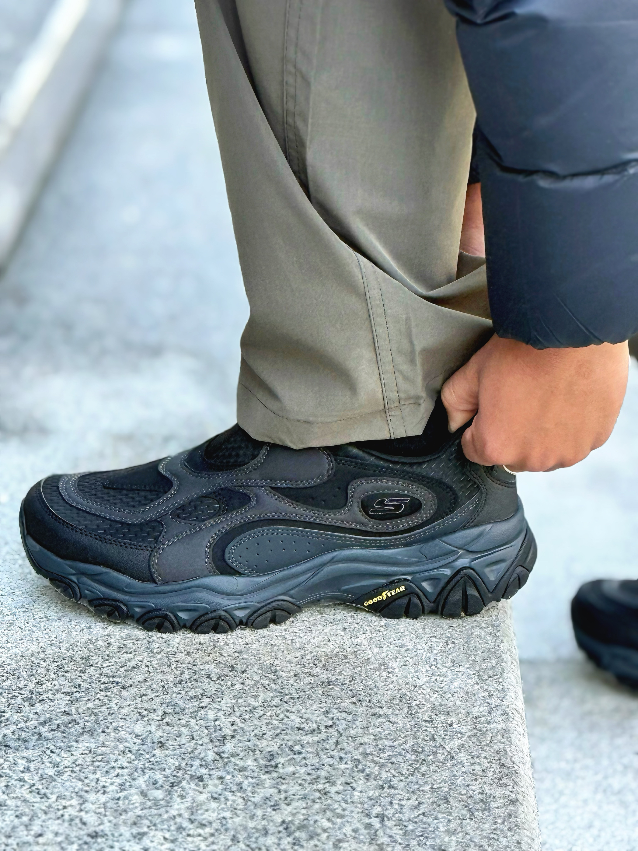 今天上脚的是 Skechers 的户外运动鞋 一脚蹬的设计的我真的好喜欢 鞋面的话用到了人造革➕网布拼接设计🖤 质感和耐脏程度挺好的 个人感觉最值得夸一夸的是鞋底 3-4cm 厚的不光有增高效果减震性也不错🧽 鞋底弓型造型足弓支撑性好。舒适度方面一般 有喜欢徒步或者有久站需要的朋友可以关注一下👀 鞋码秋冬穿厚袜子的话建议拍大半码 春夏季节的话正码拍就可以☺️