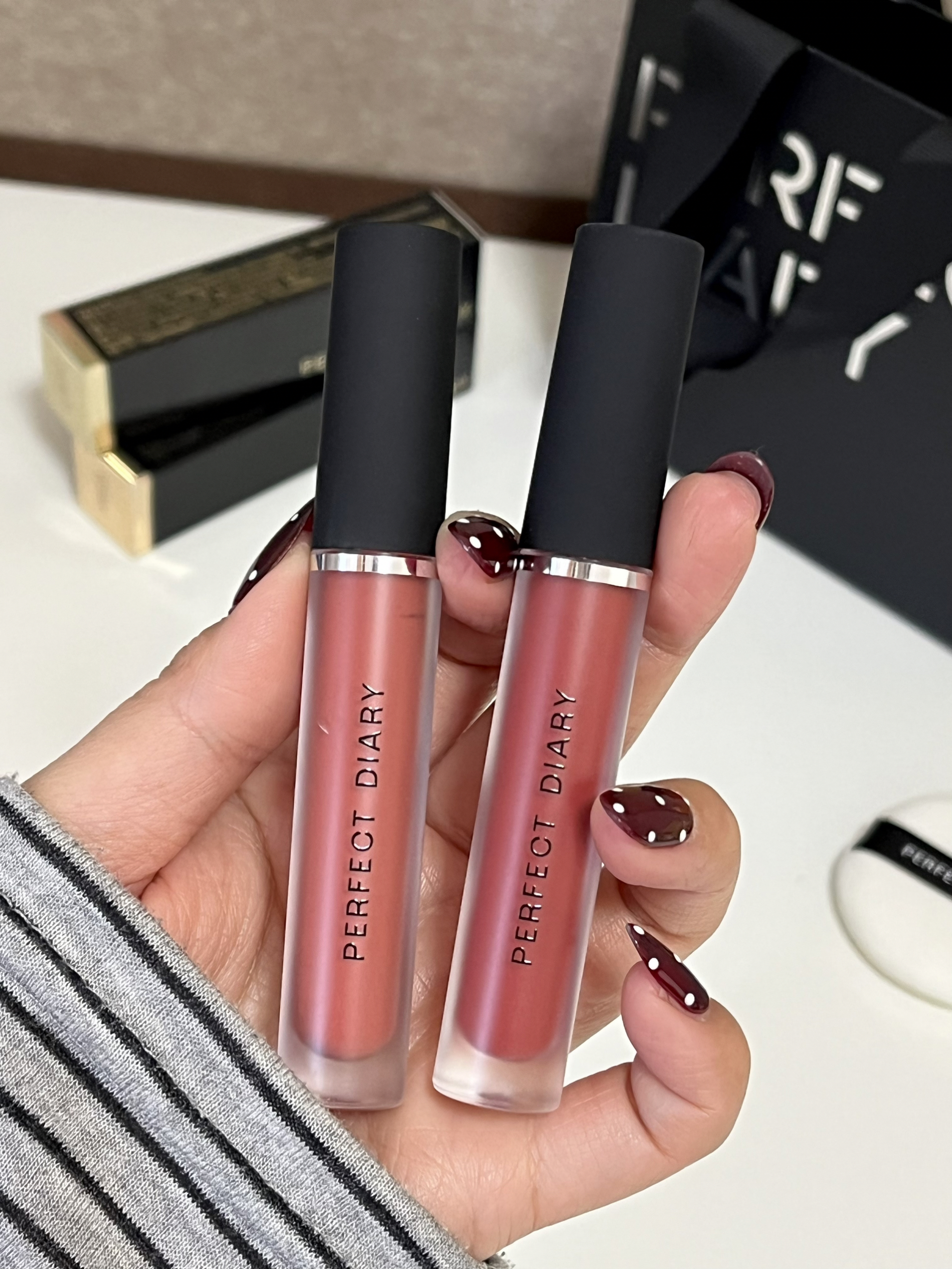 完美日记太懂我们女孩子了吧 区区几十块就可以拿下这俩支丝绒唇釉 我觉得都还蛮显白的 素颜黄皮也很友好,质地丝滑很好涂抹 自带小礼袋,不管自用还是送人都OK的