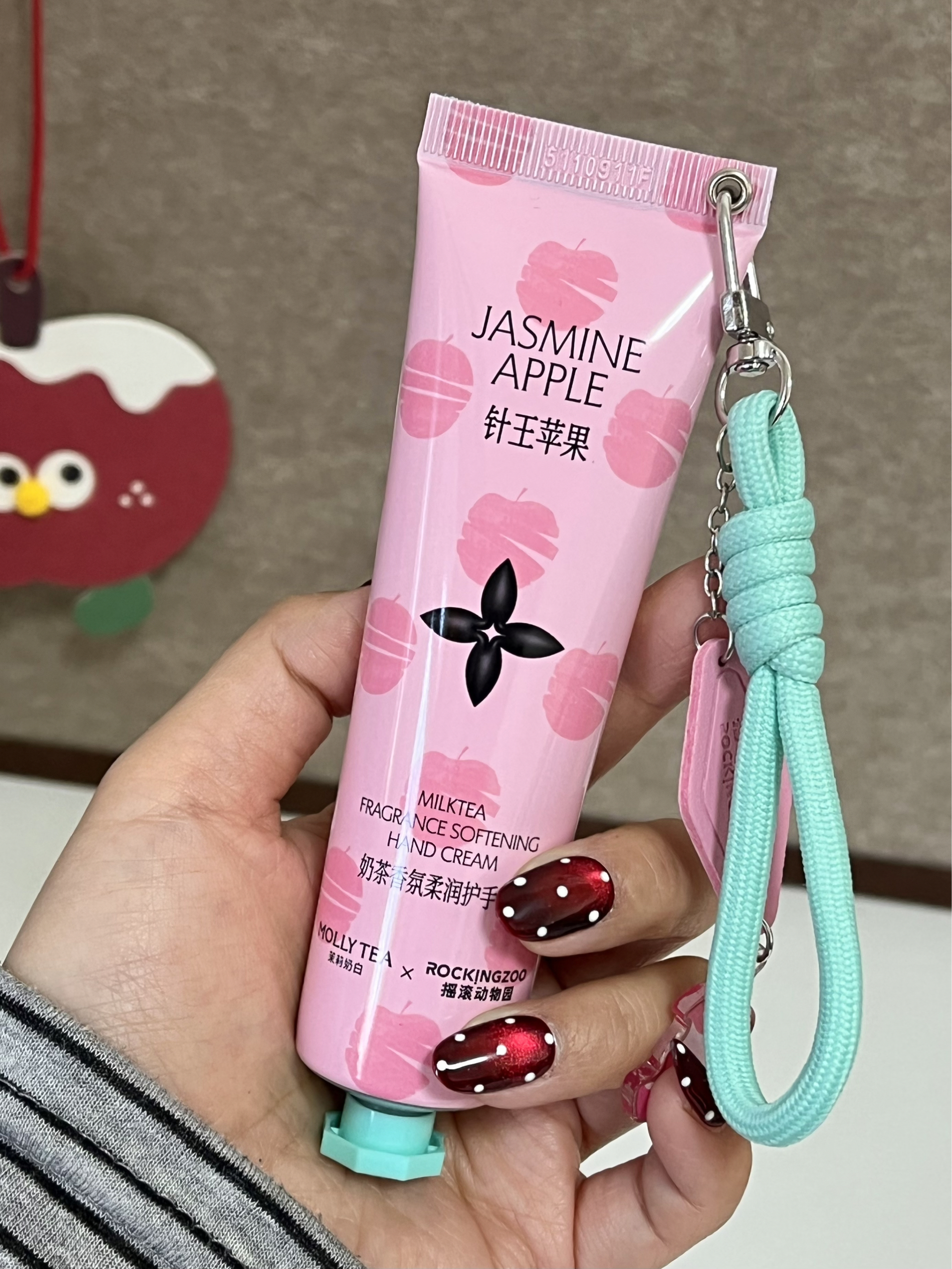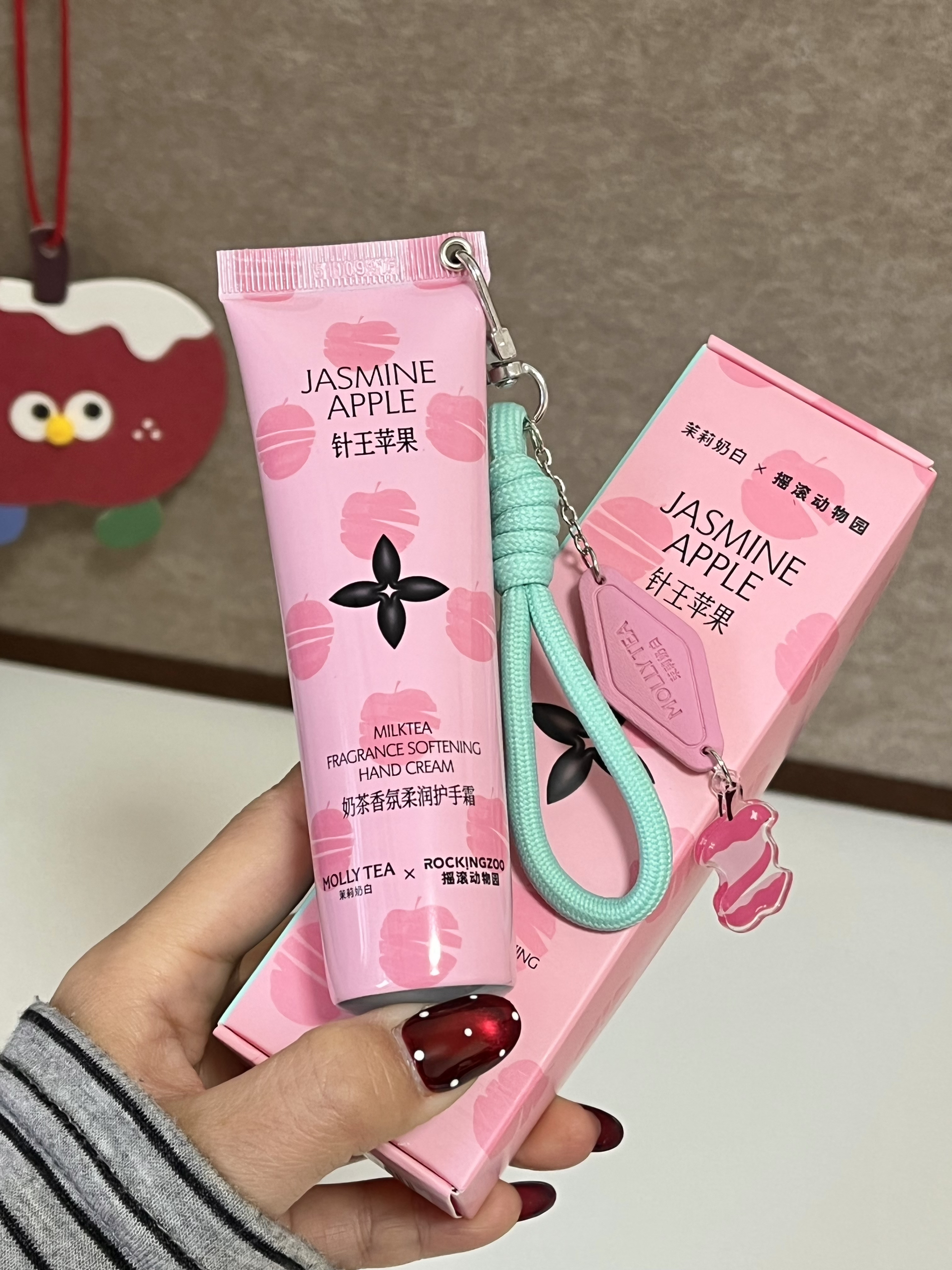 是摇滚动物园和茉莉奶白联名的护手霜耶 针王苹果味真的幻视奶茶本茶了 苹果茉莉搭配雪松,甜而不腻的味道我好喜欢 质地蛮滋润的,而且不粘腻 平时可以挂在包包上,随时涂抹 我好喜欢~