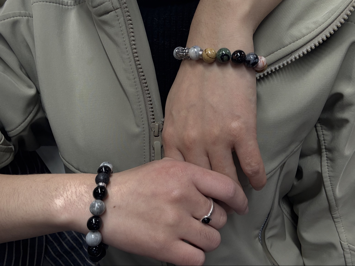 手串的主体材质是黑曜石制成 貔貅的材质是纯银质地 简直是点睛之笔。 貔貅的整体浑然天成, 珠子莹润光洁圆润饱满 起到了招财纳福,福运满堂之意 你们喜欢戴手串搭配什么配置呢