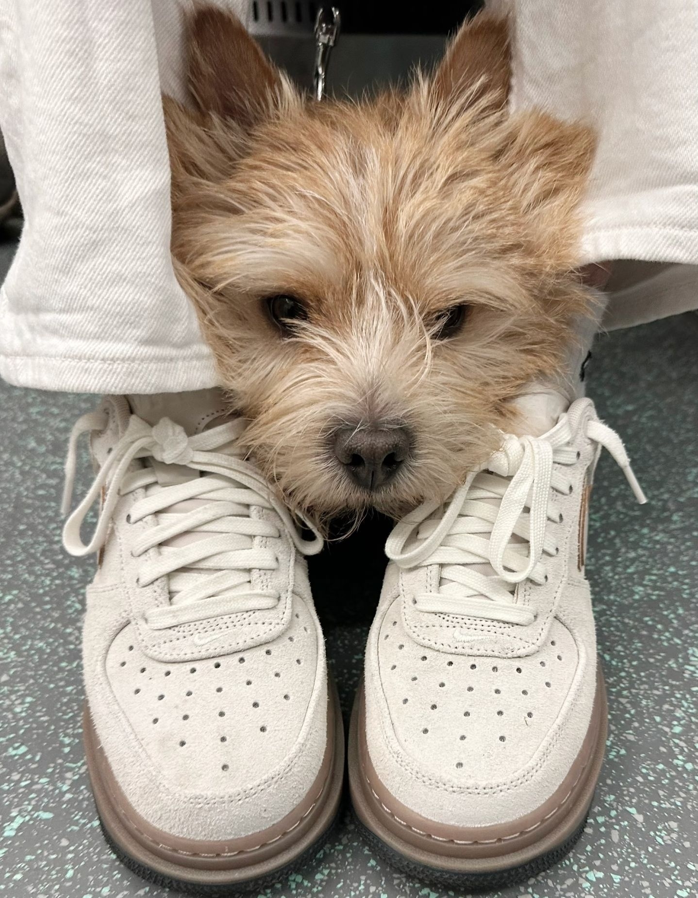 这双AF1的配色真的太戳奶茶控了,米白色的麂皮鞋面软乎乎的,摸起来的质感比普通皮质款细腻太多,浅棕色的包边和生胶大底形成呼应,低饱和的暖调调就像捧着一杯热奶茶,秋冬穿在脚上,连脚步都跟着温柔起来。而且麂皮的哑光质感超高级,不会像亮面皮质那样容易显脏,反而越穿越有复古味道。 说到搭配,这双鞋简直是“懒人救星”。搭宽松的白色卫裤,是慵懒的韩系休闲感;配牛仔半身裙加堆堆袜,秒变甜妹风;就算是搭工装裤...