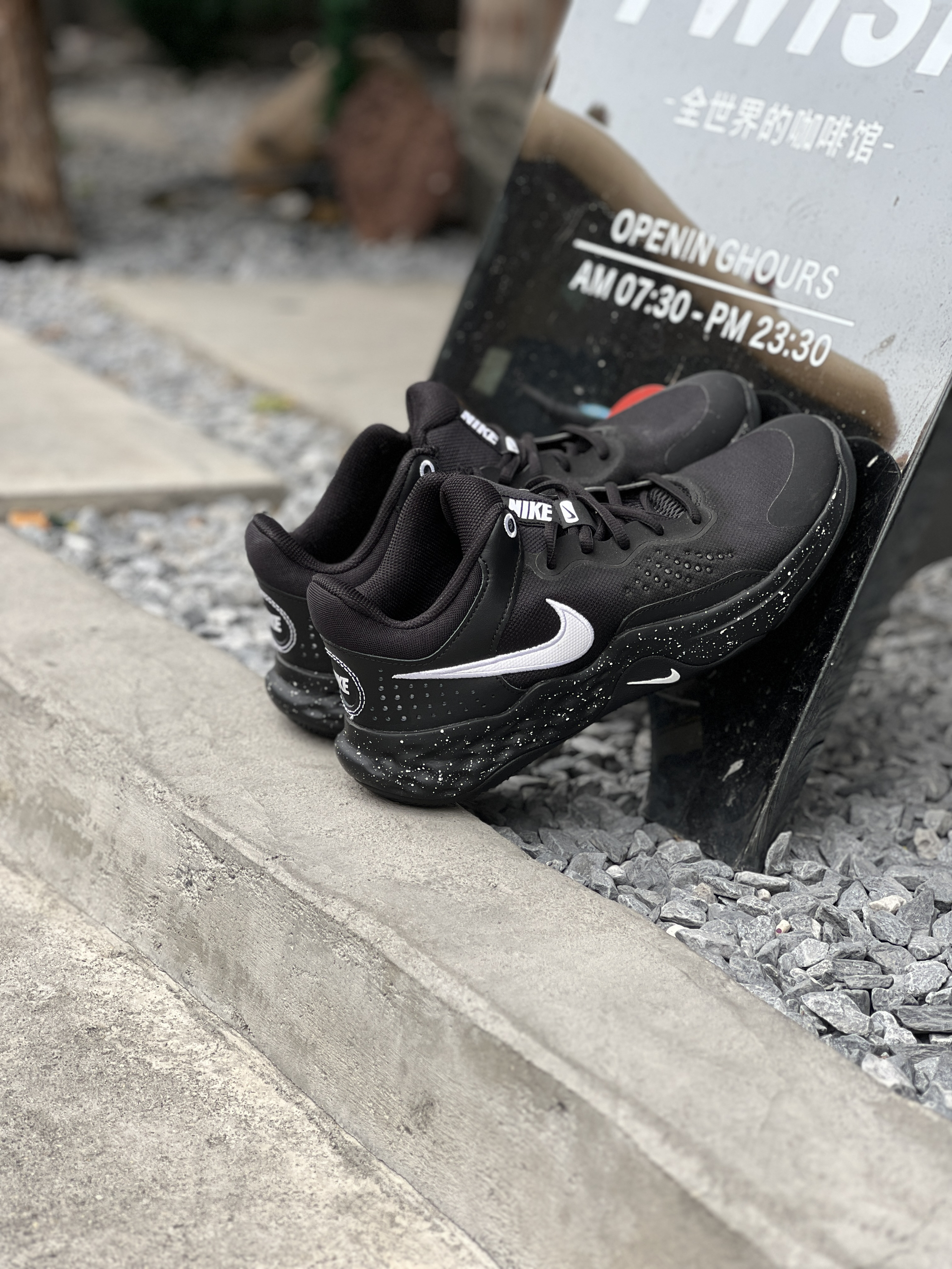 这双定制款Nike Fly By Mid 3黑武士的体验,到手就被它的极简设计戳中了,熊猫俱乐部的定制细节让基础款多了点专属感🤍 实物是全黑鞋身配白色小勾,泼墨中底的设计低调又不单调,定制款的做工比普通款更精细,鞋身的缝线和材质拼接都很规整。得物的鉴别流程也很靠谱,查了鞋标和工艺细节,确认是正品才放心上脚。 作为中帮篮球鞋,它的实战表现超出我的预期:网布鞋面透气不闷脚,夏天打球也舒服;鞋帮的填...