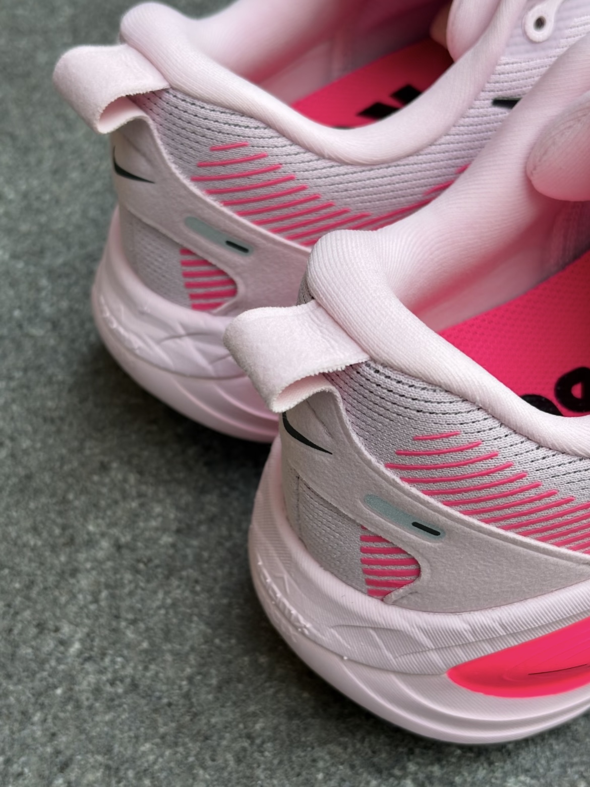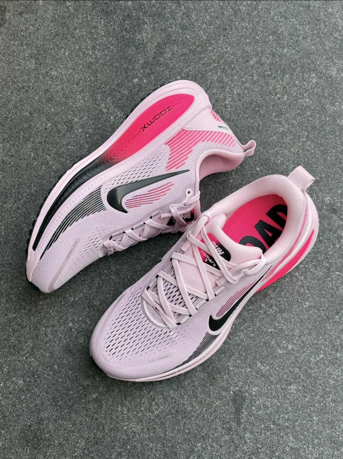 作为Nike的老粉,新入的Vomero18粉色款真的戳中我日常刚需了! 先看颜值——淡粉主调+亮粉内衬的撞色,不会像纯粉那么甜腻,反而带点清爽的少女感~鞋型是偏修长的窄脚款,配上黑色小勾子,视觉上能把脚衬得很秀气,我这种小肉脚穿牛仔裤、运动短裤都不突兀,甚至搭宽松卫衣走“下衣失踪”也很和谐👖 重点说脚感:本来以为是专业跑鞋会偏硬,结果上脚是那种“软弹但不塌”的感觉——Nike的Zoom...