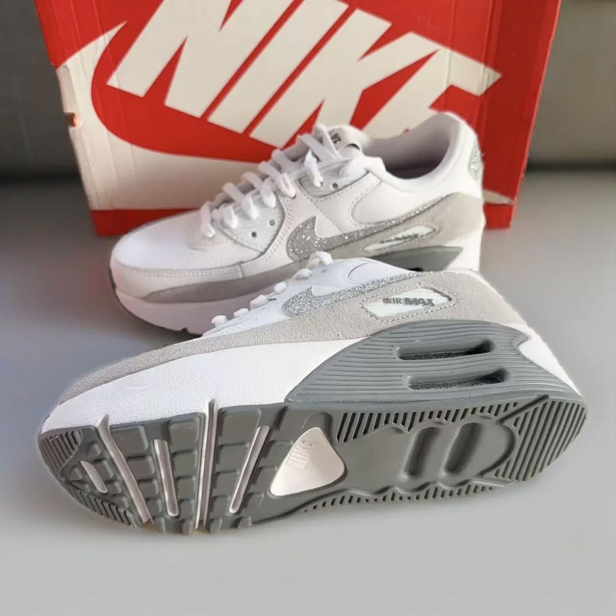 🔥【必入经典款】Nike Air Max 90「月光白」!碎钻Swoosh+踩屎感气垫,通勤运动全拿捏!