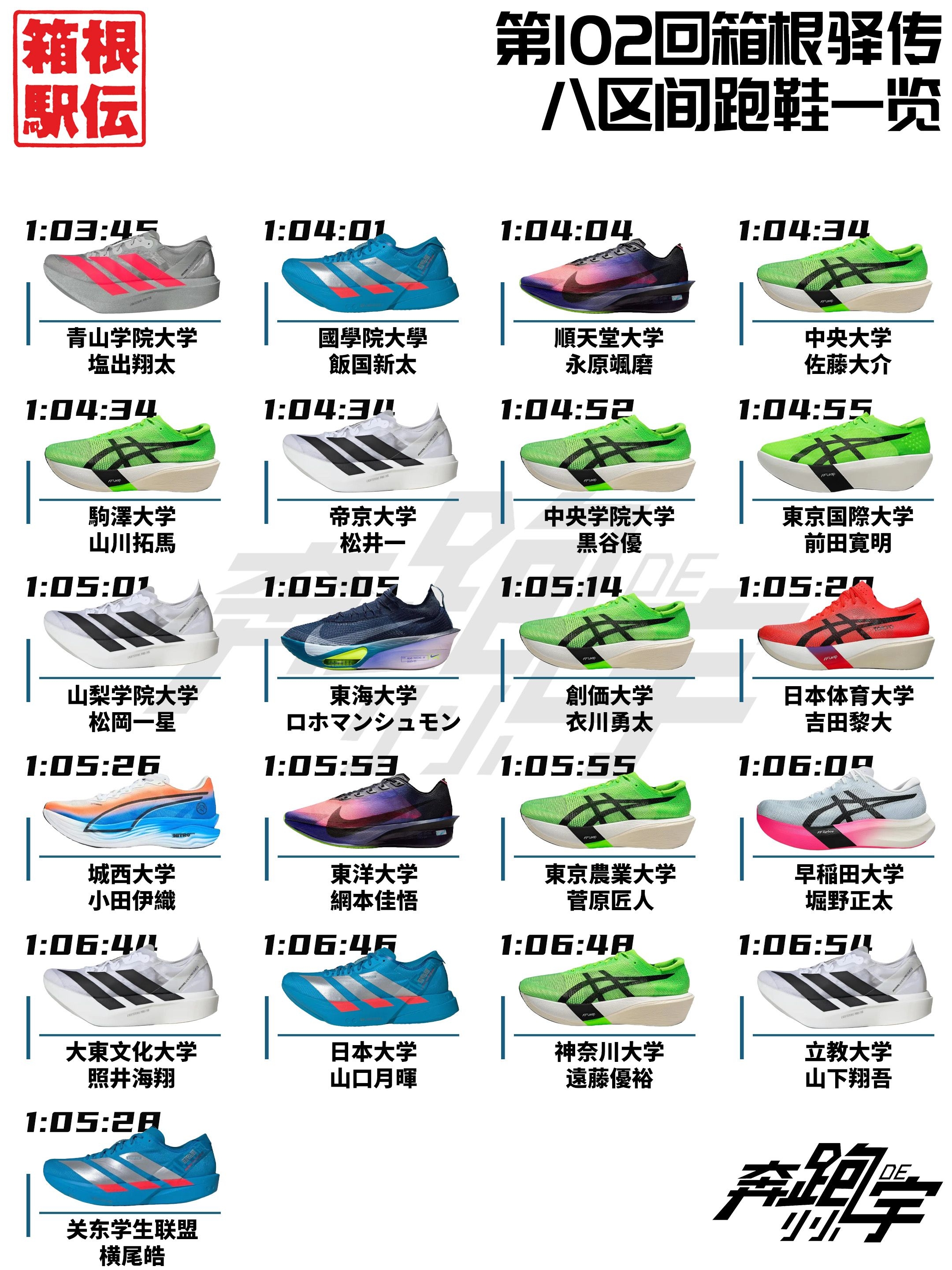 【第102回箱根驿传各区间跑鞋一览】,由用户 奔跑的小小宇 分享,来自辽宁。这是一篇来自识货社区的真实用户分享笔记。