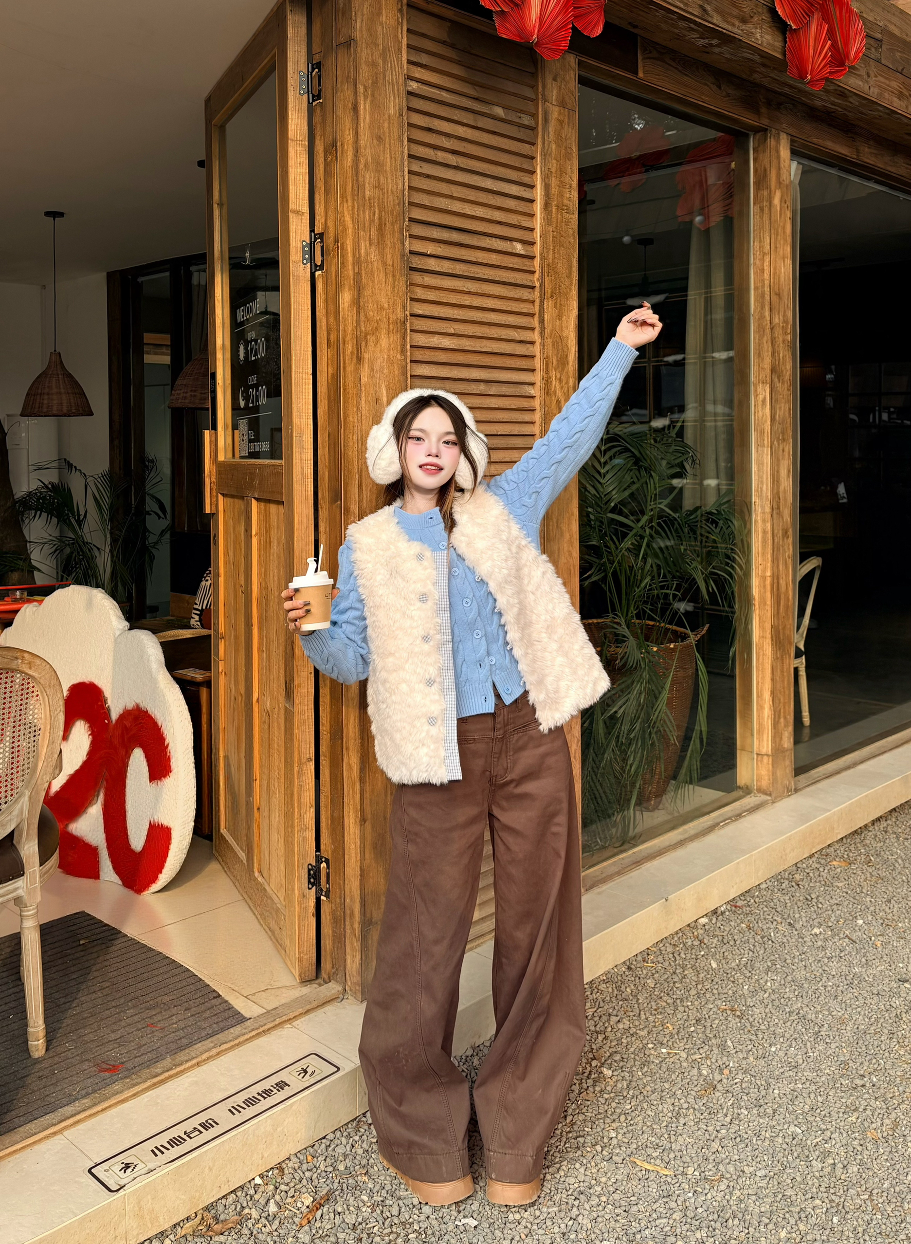 冬日穿搭主打一个软乎乎☁️ 翻出压箱底的毛绒马甲,搭件浅蓝毛衣意外的好看🩵 咖色阔腿裤显瘦又百搭,戴上毛绒耳罩,感觉自己像个行走的小奶团子~❄️ 165/96 我穿的一套s