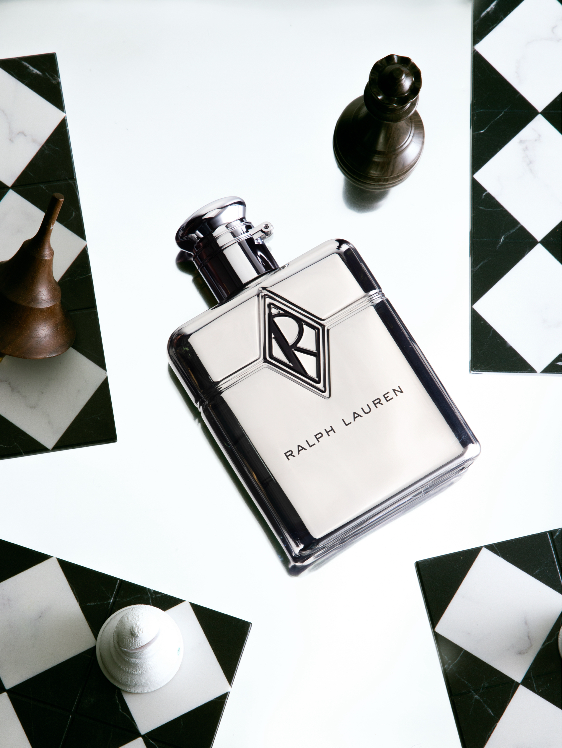 冷冽金属,包裹温润木质 Ralph Lauren Club,是矛盾的和谐,是力量的优雅 棋子散落,倒影如镜,映照的不只是瓶身,更是内心的秩序与张力