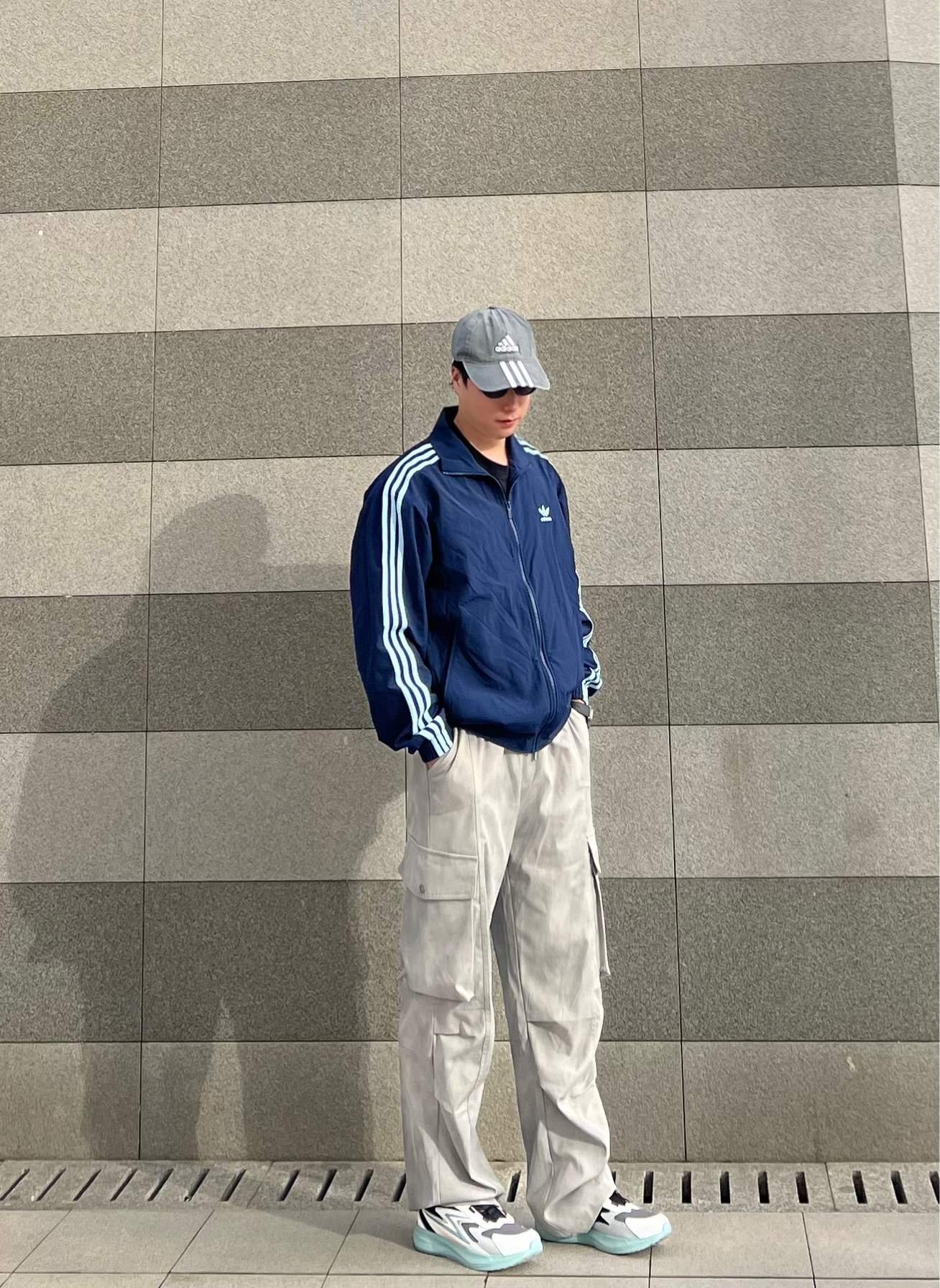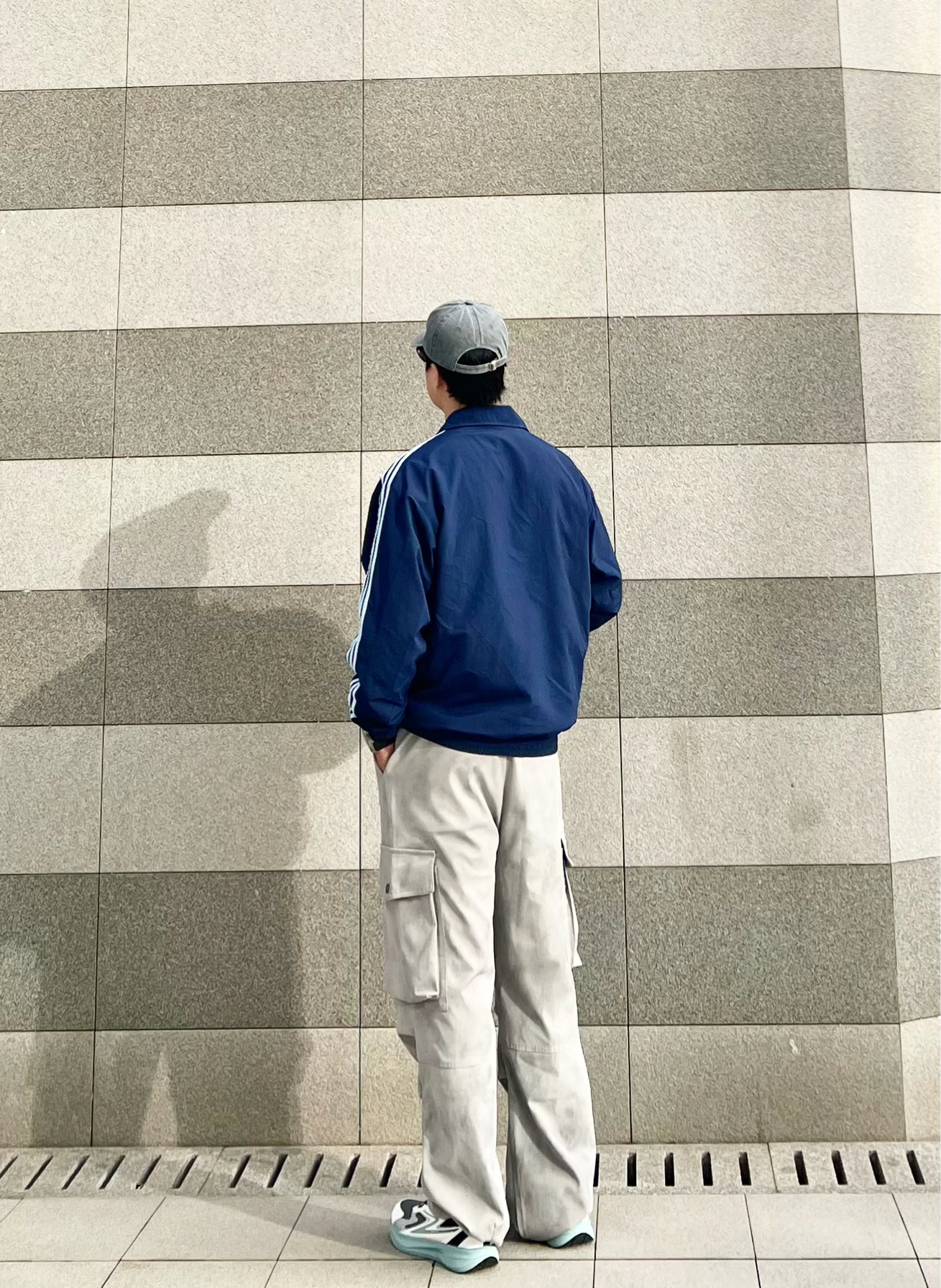 城市通勤穿搭就该这么穿!阿迪外套的轻薄面料 搭配浅卡其工装裤,运动风与工装风的结合,既不会太休闲也不会太正式