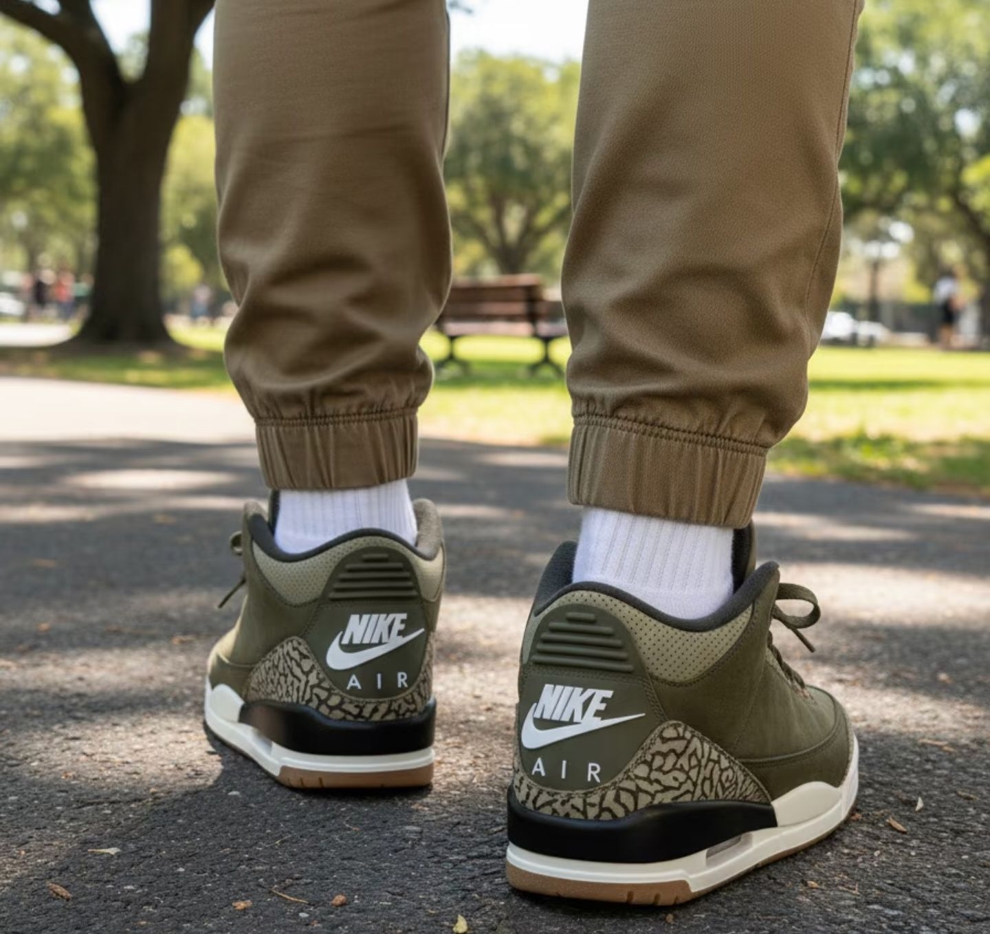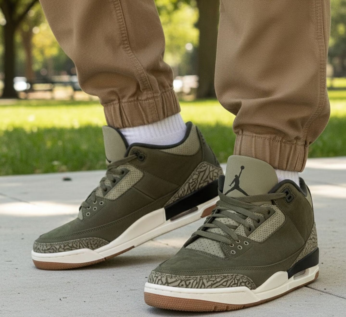 作为AJ系列里的经典款,AJ3的魅力从来不用多说,而这双橄榄绿配色直接把复古质感玩到了新高度,绝对是复古球鞋党不能错过的宝藏款! 鞋面选用橄榄绿磨砂皮打造,触感细腻又有高级感,搭配浅卡其色的爆裂纹细节,大地色系的碰撞让整双鞋的层次感直接拉满。鞋身的透气孔设计兼顾了颜值与实用性,夏天上脚也不会闷脚;经典的可视气垫保留了AJ3的标志性设计,脚感软弹,日常出街暴走完全无压力。 搭配上更是懒人福音...