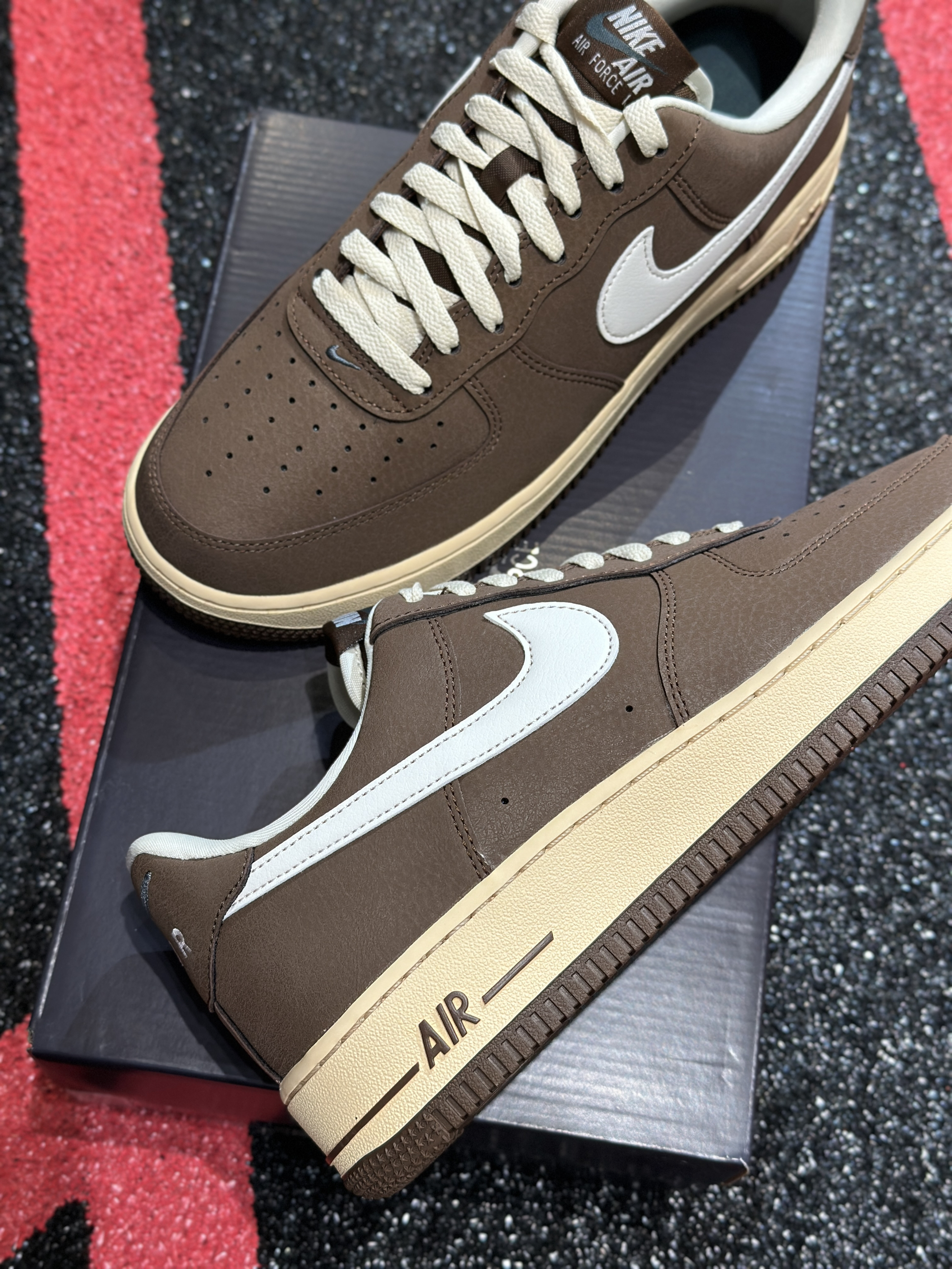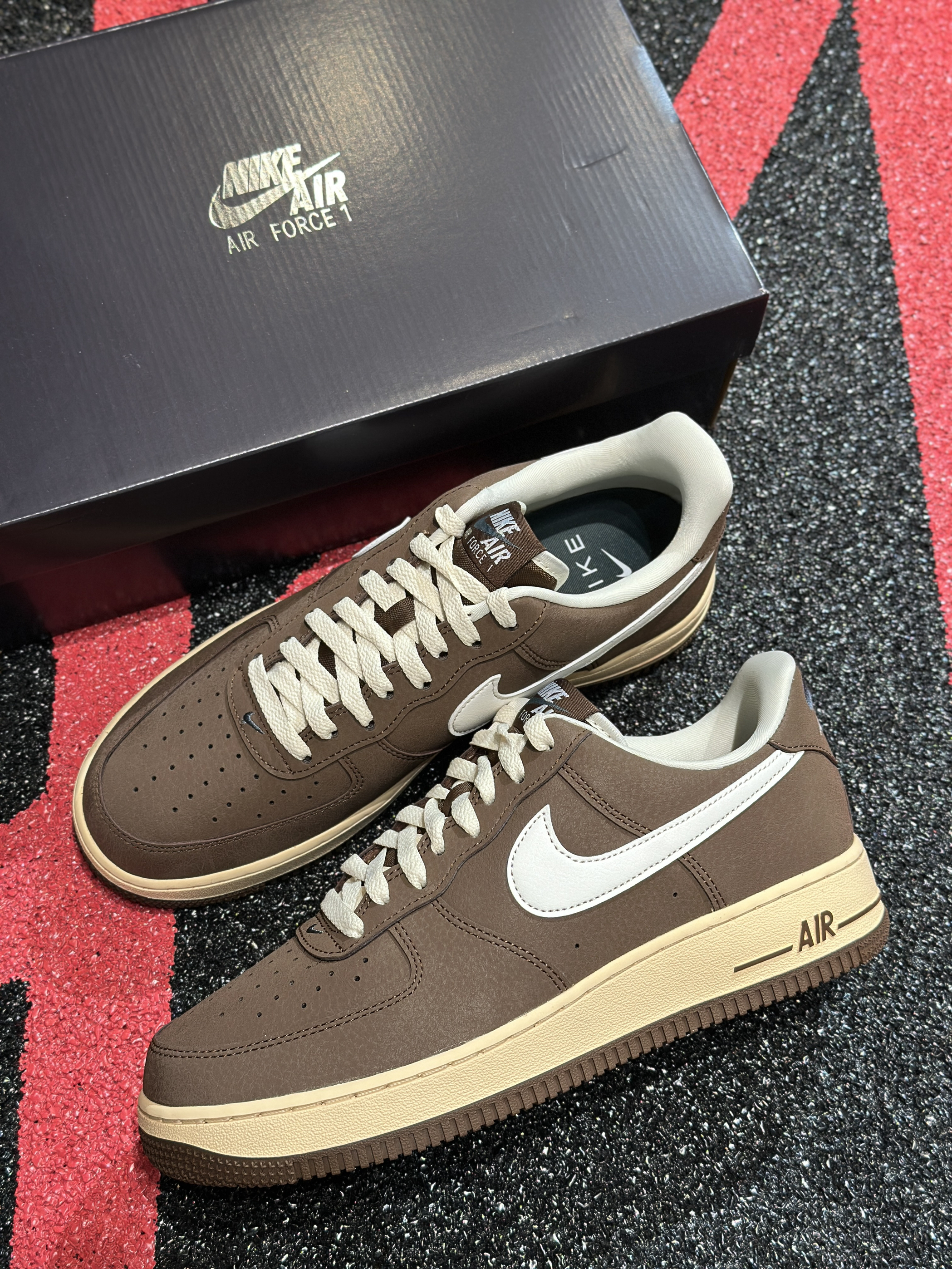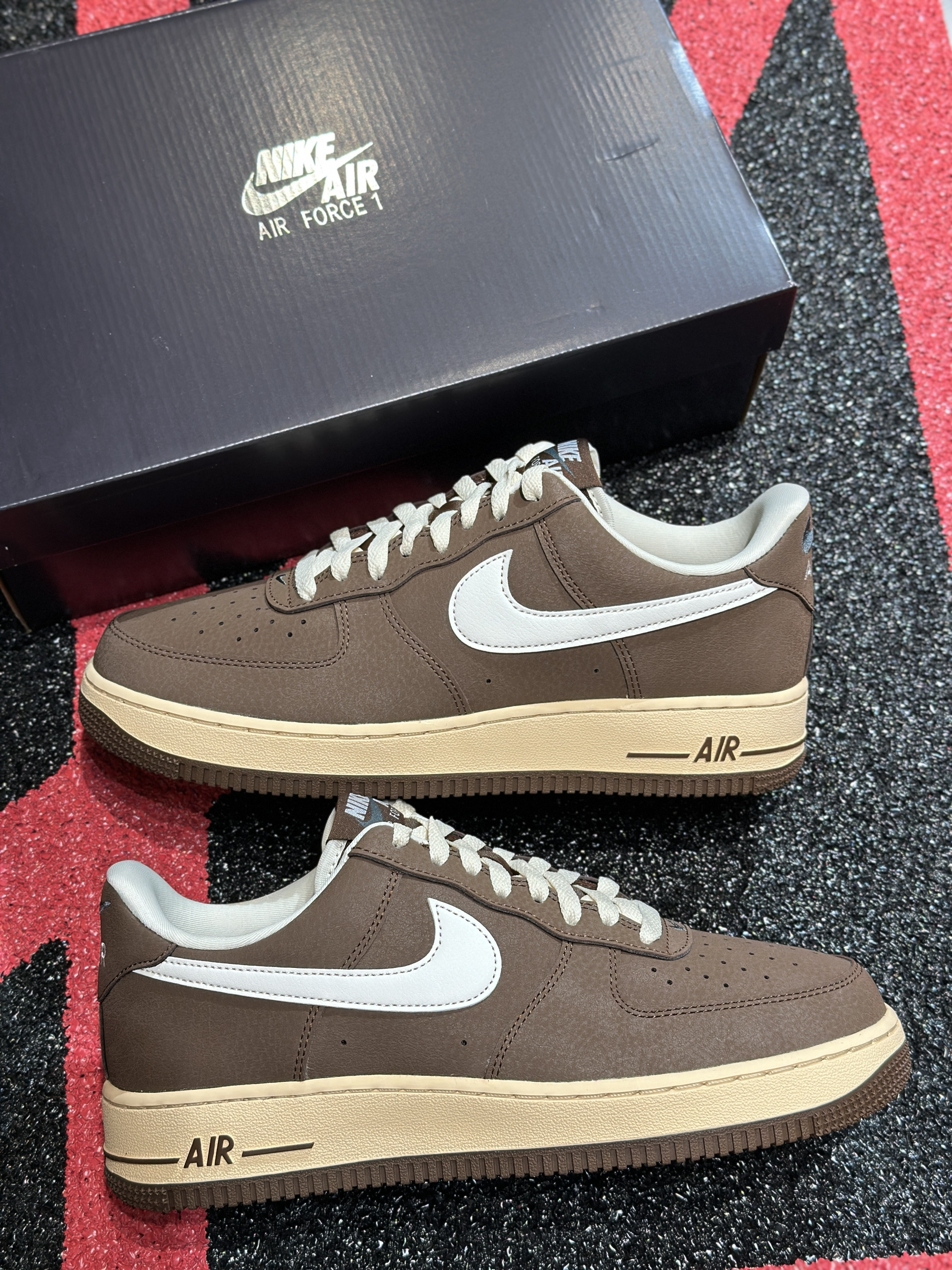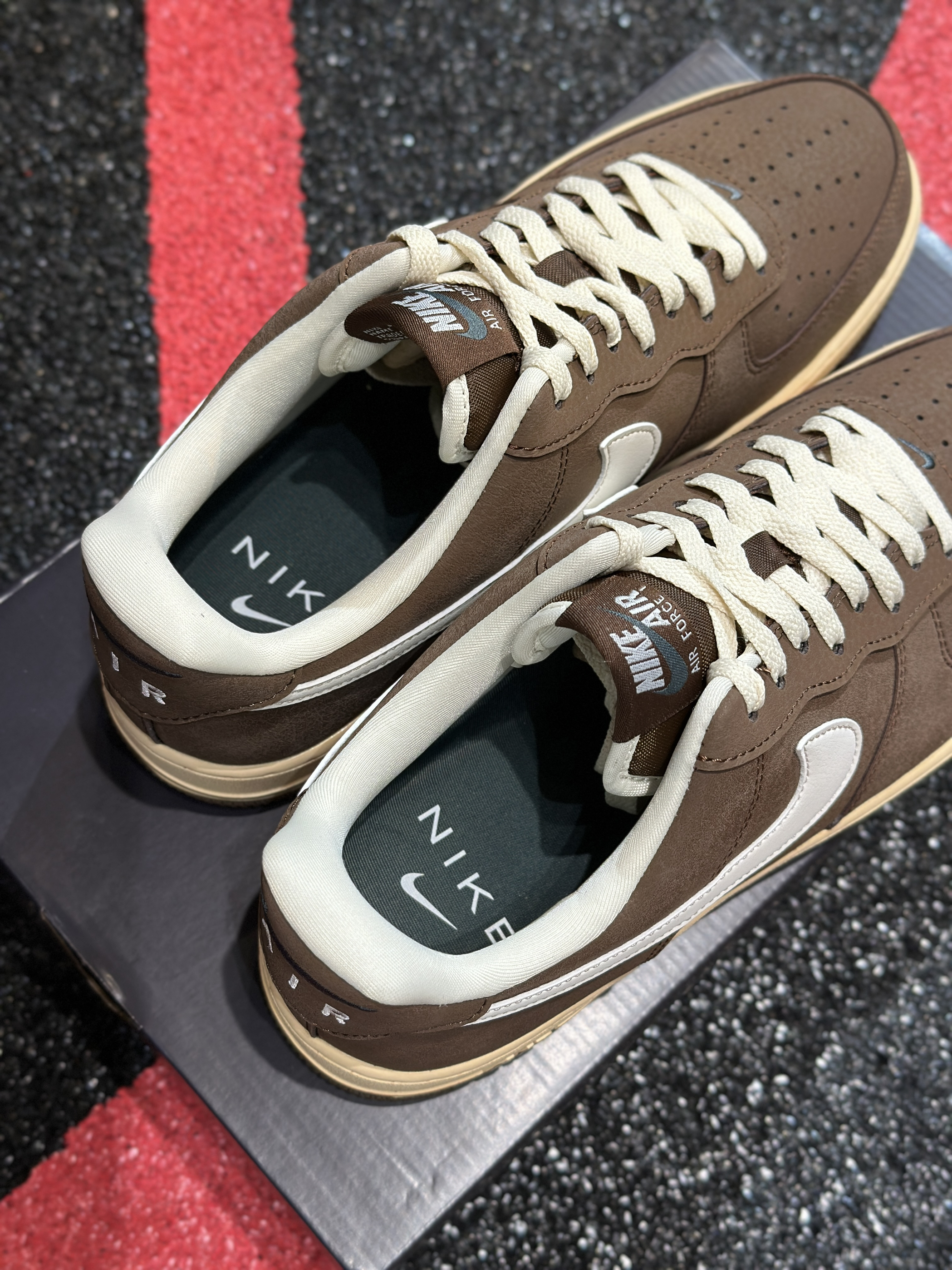 新入的AF1摩卡棕真的挖到宝了!麂皮材质摸起来软乎乎的,棕白配奶黄中底的复古感拉满,上脚特别稳,随便搭个卫衣牛仔裤都超有味道,已经成我最近的出门标配了~