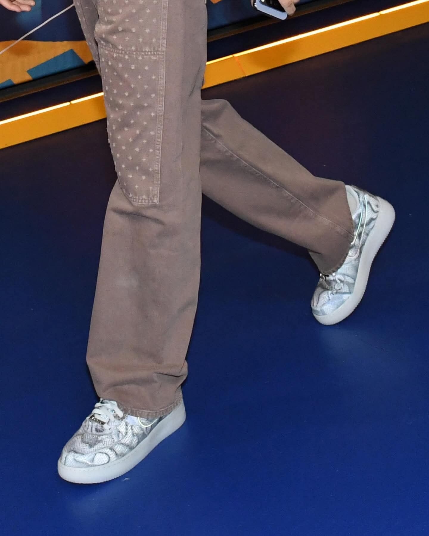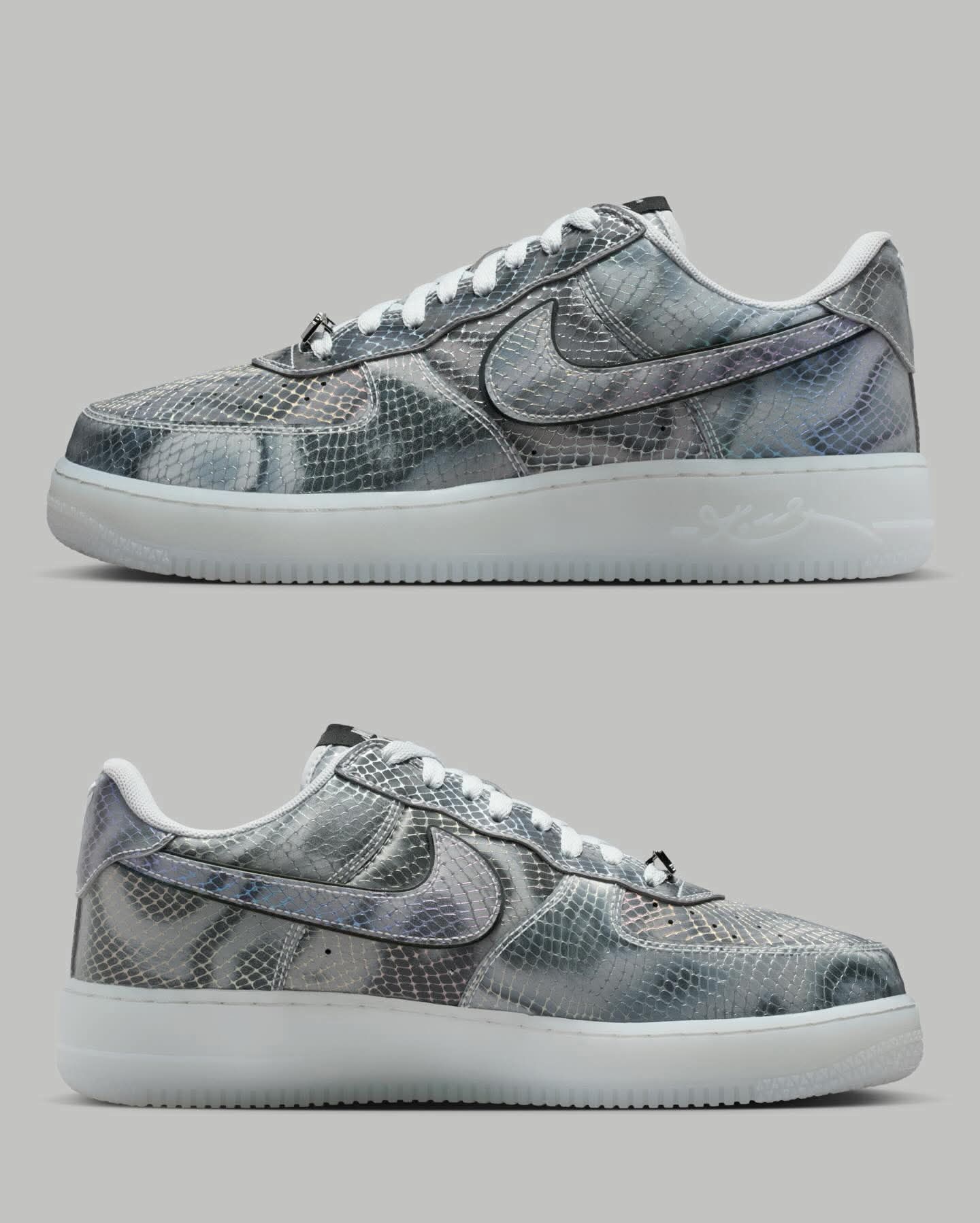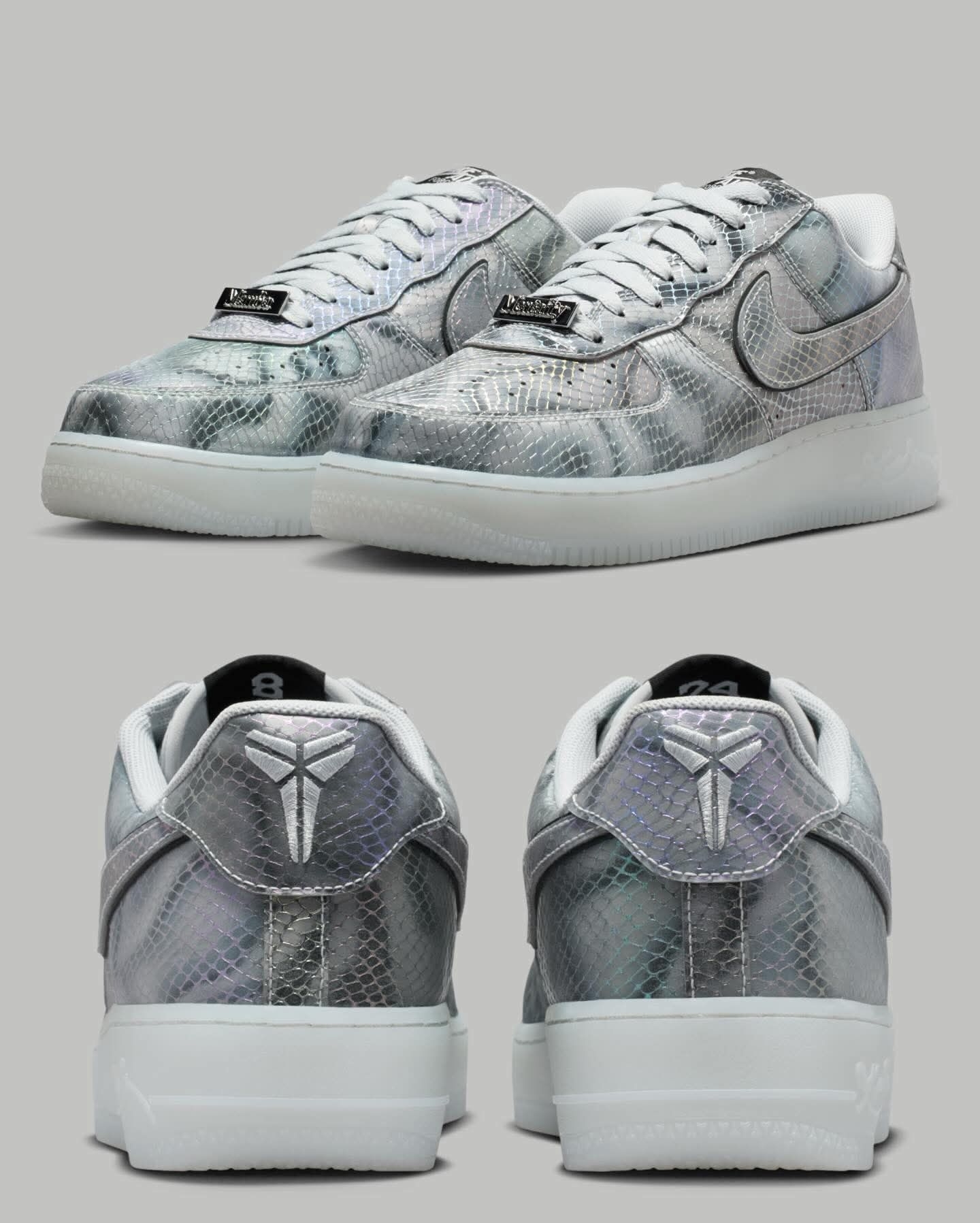 库里都上脚的Kobe × AF1 Lenticular蛇纹款太惊艳了!蛇纹鞋面叠加幻彩镭射效果,不同角度看有不一样的视觉冲击,鞋带扣的曼巴精神刻字更是细节拉满,把曼巴元素和AF1的经典完美融合~穿上脚后感觉透气度超棒,打球时回头率超高!