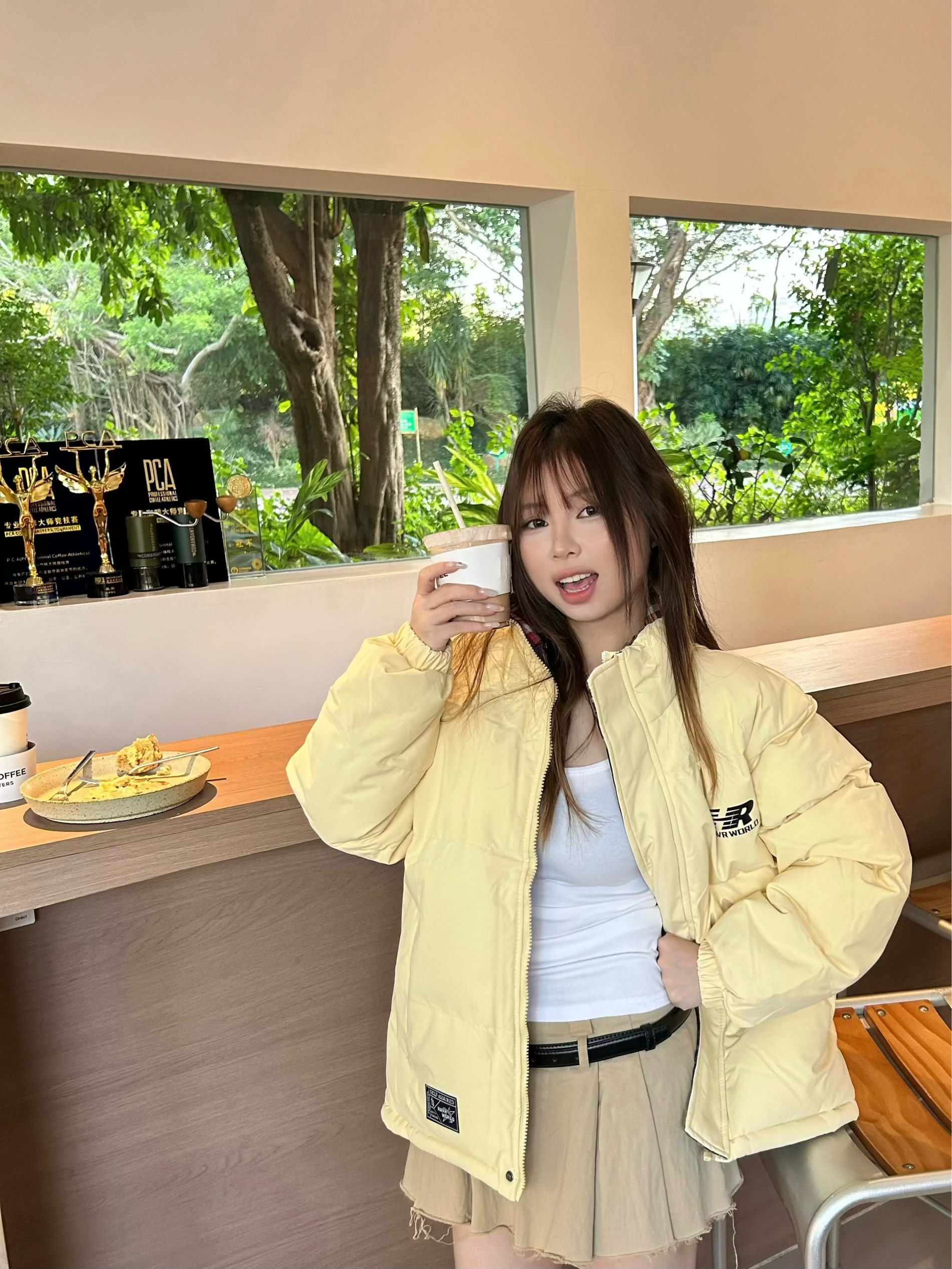 穿上好韩啊啊啊!!充绒量真的没话说,我宣布 热胀冷缩已过时,冬天也可以优雅!!奶呼呼滴一身!搭配阿迪鸭舌帽 韩味满满~