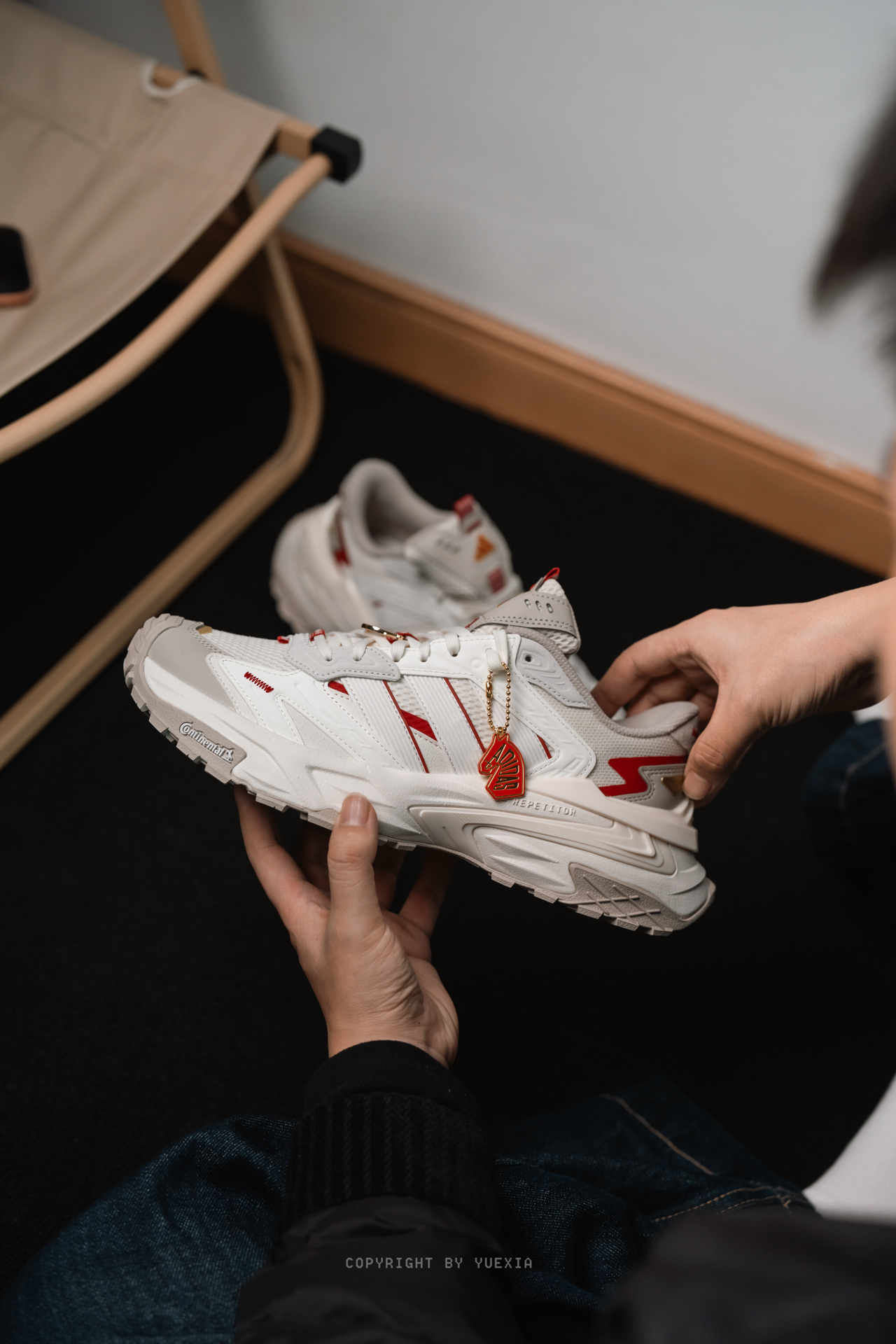 马上新春将至,跟大家分享一款非常适合春节穿搭的鞋款。这款Adidas的CNY配色老爹鞋,整体造型非常是有层次感,大面积的皮质和TPU也比较有质感。米白色为基底的鞋身点缀红色,很喜庆。而且附赠有一个蛮精致的金属吊牌。 鞋子上脚后也非常舒服,经典老爹鞋的脚感,舒适柔软而且空间恰到好处。厚底的设计也有着不错的增高效果,搭配一下牛仔裤或者阔腿运动服,个人觉得都是蛮好的,喜欢的可以考虑一下。 #贺聪同款...
