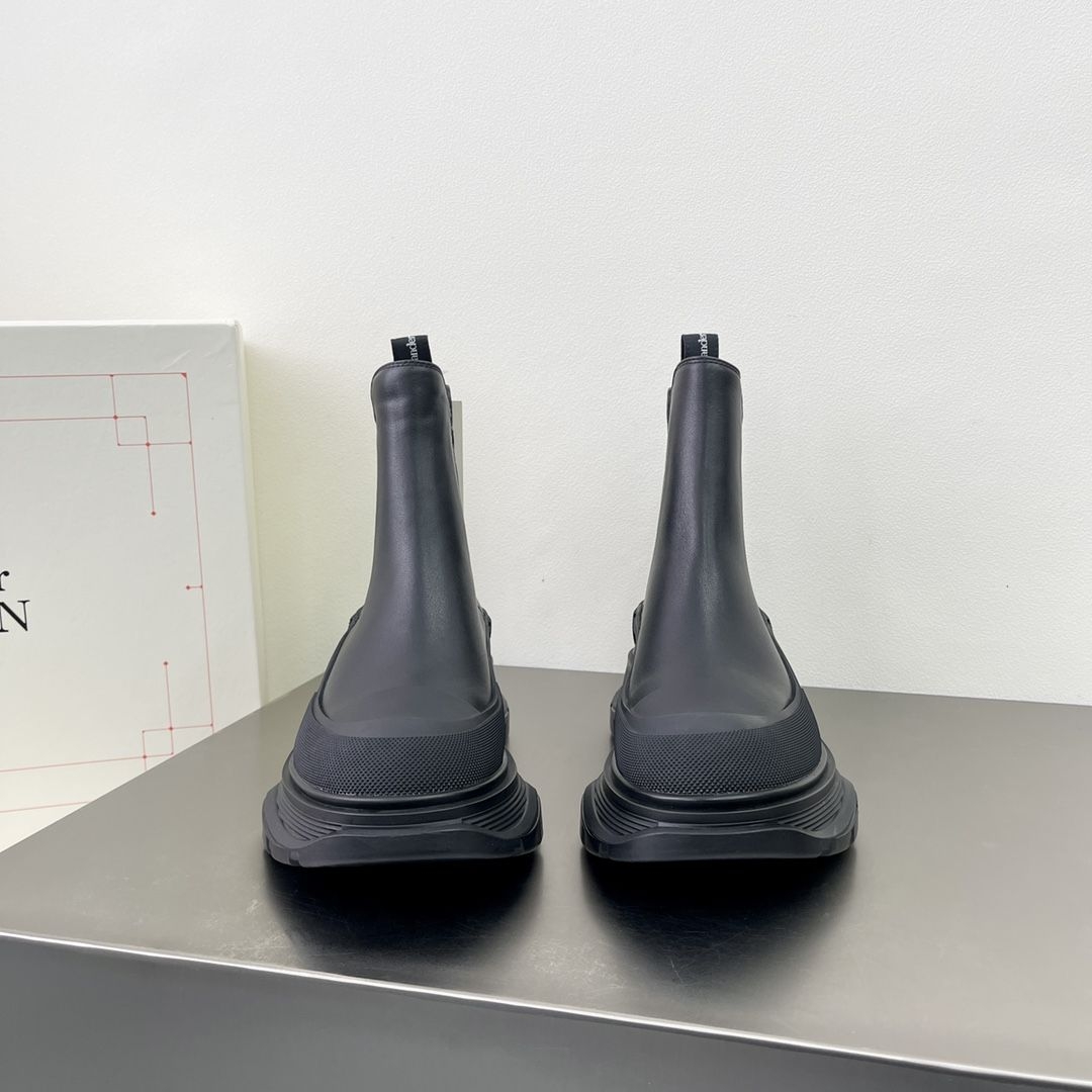 我一直觉得切尔西靴是个聪明的设计。没有鞋带,一蹬就进去,利落得很。我常在街拍里看到亚历山大·麦昆的那款,厚实的橡胶底,光洁的小牛皮,侧面一个不起眼的标志。它有种劲儿,不是张牙舞爪的那种,是收着的,有力量的。我知道它,但也只是知道。直到上个月,在一个朋友的聚会上。 那朋友是个时尚编辑,总能在潮流涌来前就站对地方。那天她穿了一身黑,脚上就是那双靴子,黑色的。她靠在吧台边,裤脚微微卷起,露出靴子流畅的...