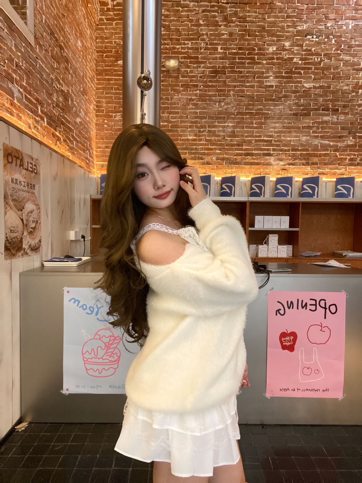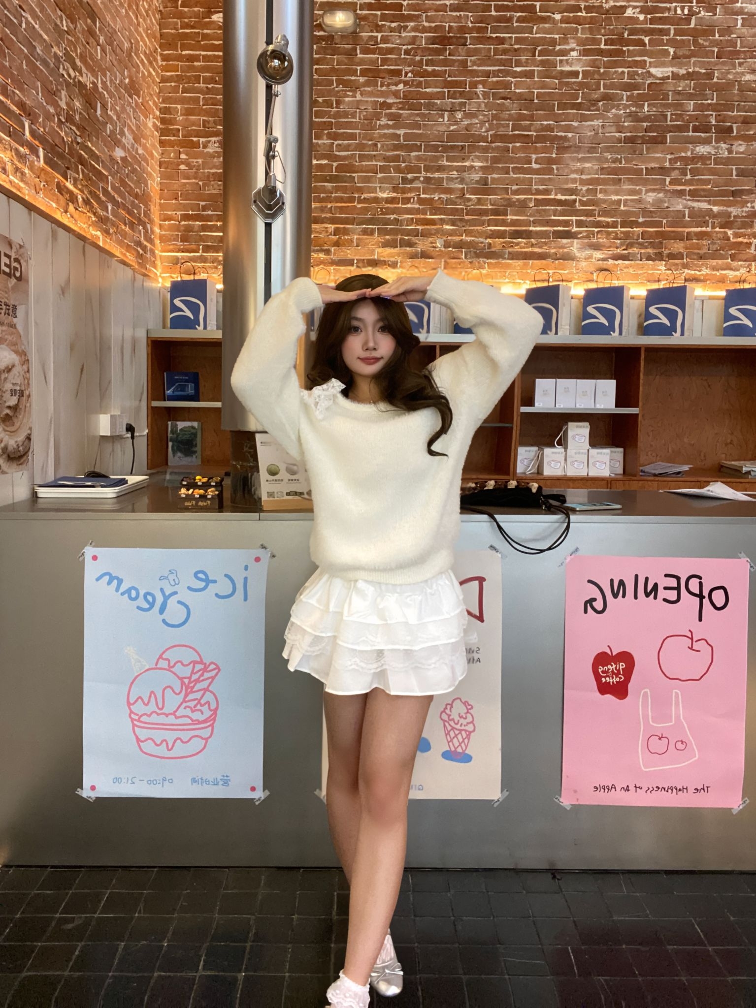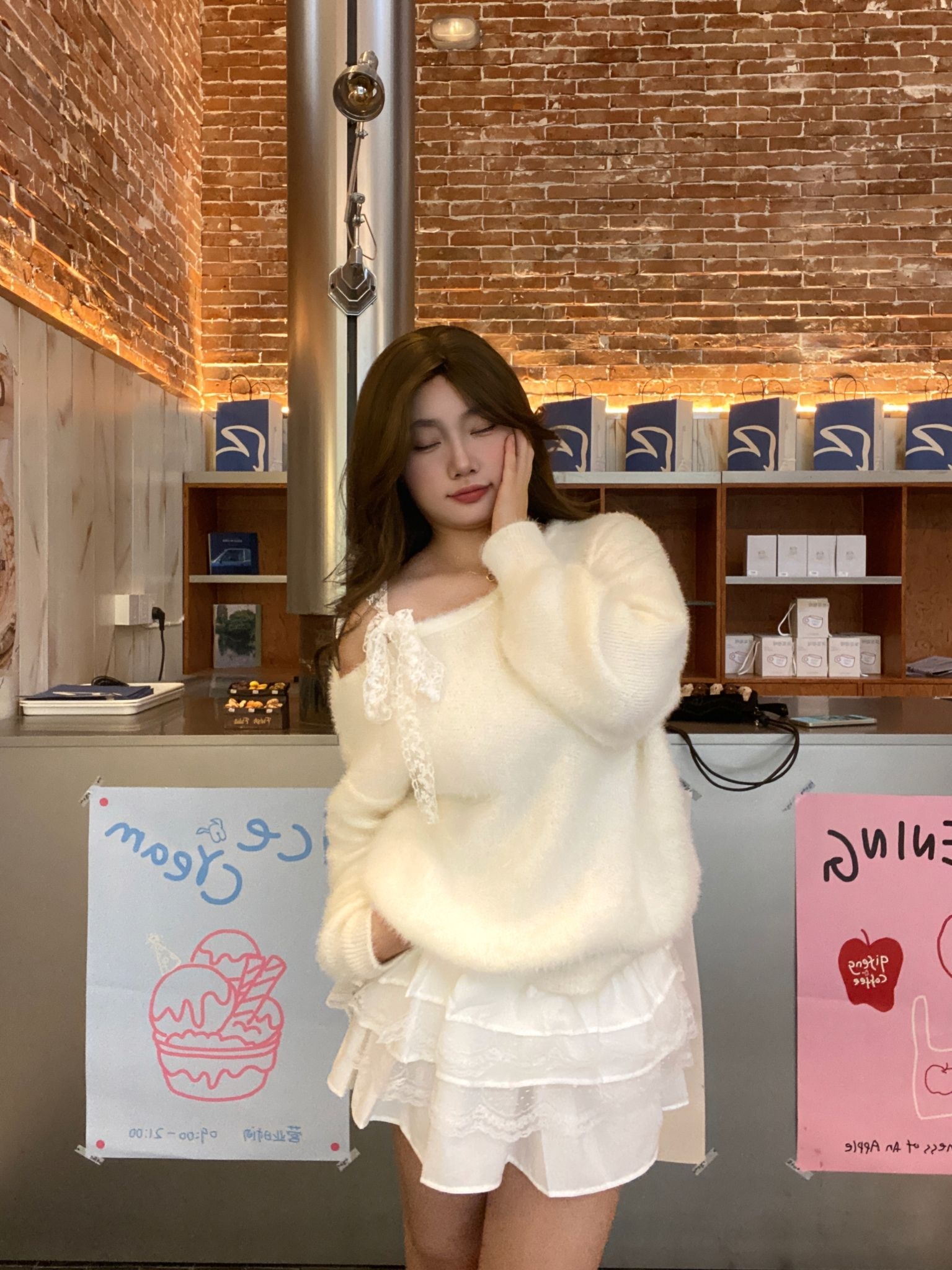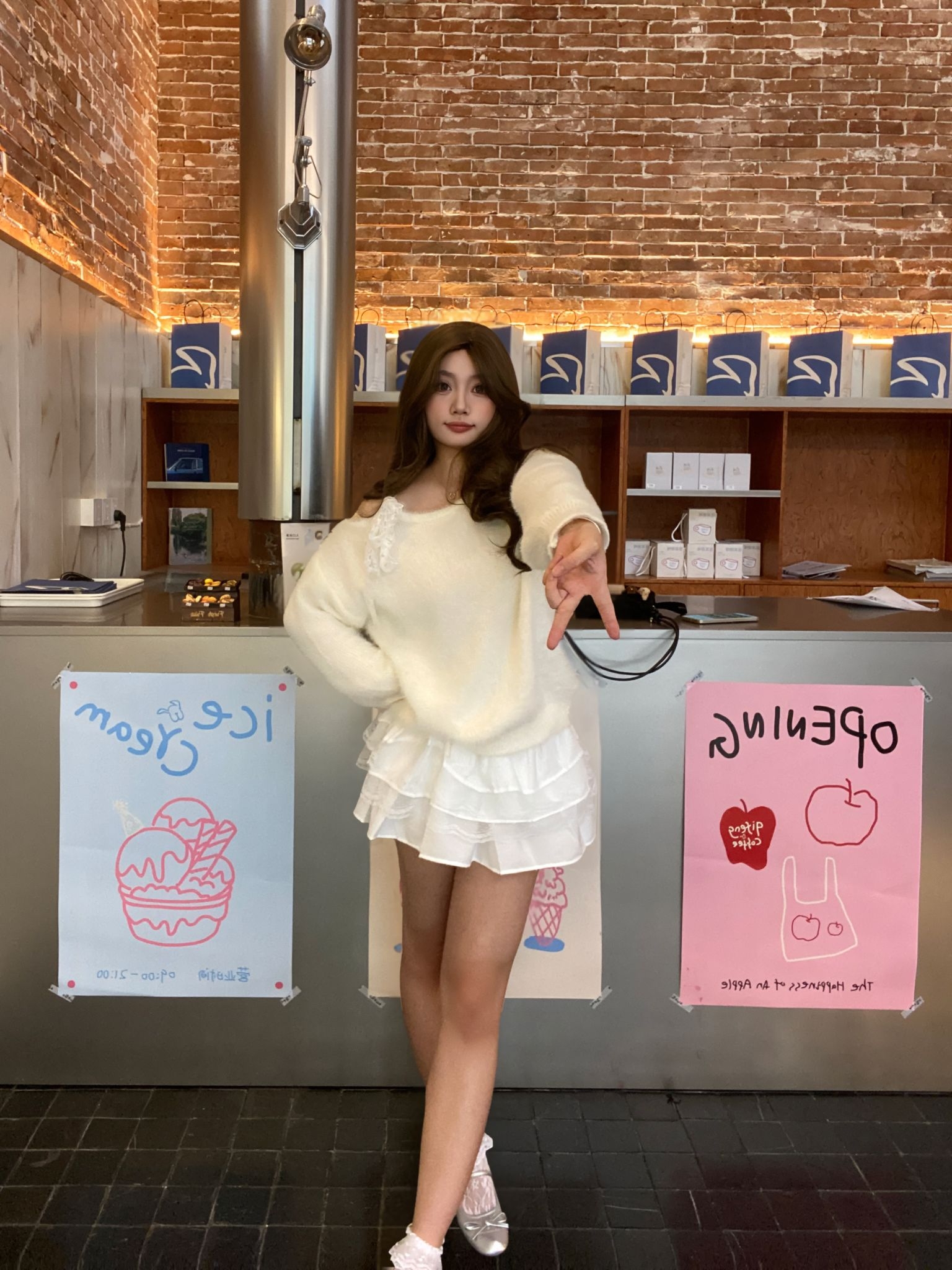 谁懂啊!这套穿搭简直是纯欲天花板!奶白色的露肩毛衣,质感软fufu的,像云朵一样温柔。露肩的设计又带点小性感,不会显得单调。而且穿着很暖和~搭配的白色蕾丝蛋糕裙是点睛之笔,层层叠叠的,让整体造型更有层次感和甜妹氛围。这套穿出去,温柔又不失俏皮,不管是约会还是逛街都很合适。而且这种浅色系在暖光下拍照特别出片,显得人又白又嫩,氛围感直接拉满!姐妹们,秋冬就要穿这种软软糯糯的衣服,真的会让人心情变好!