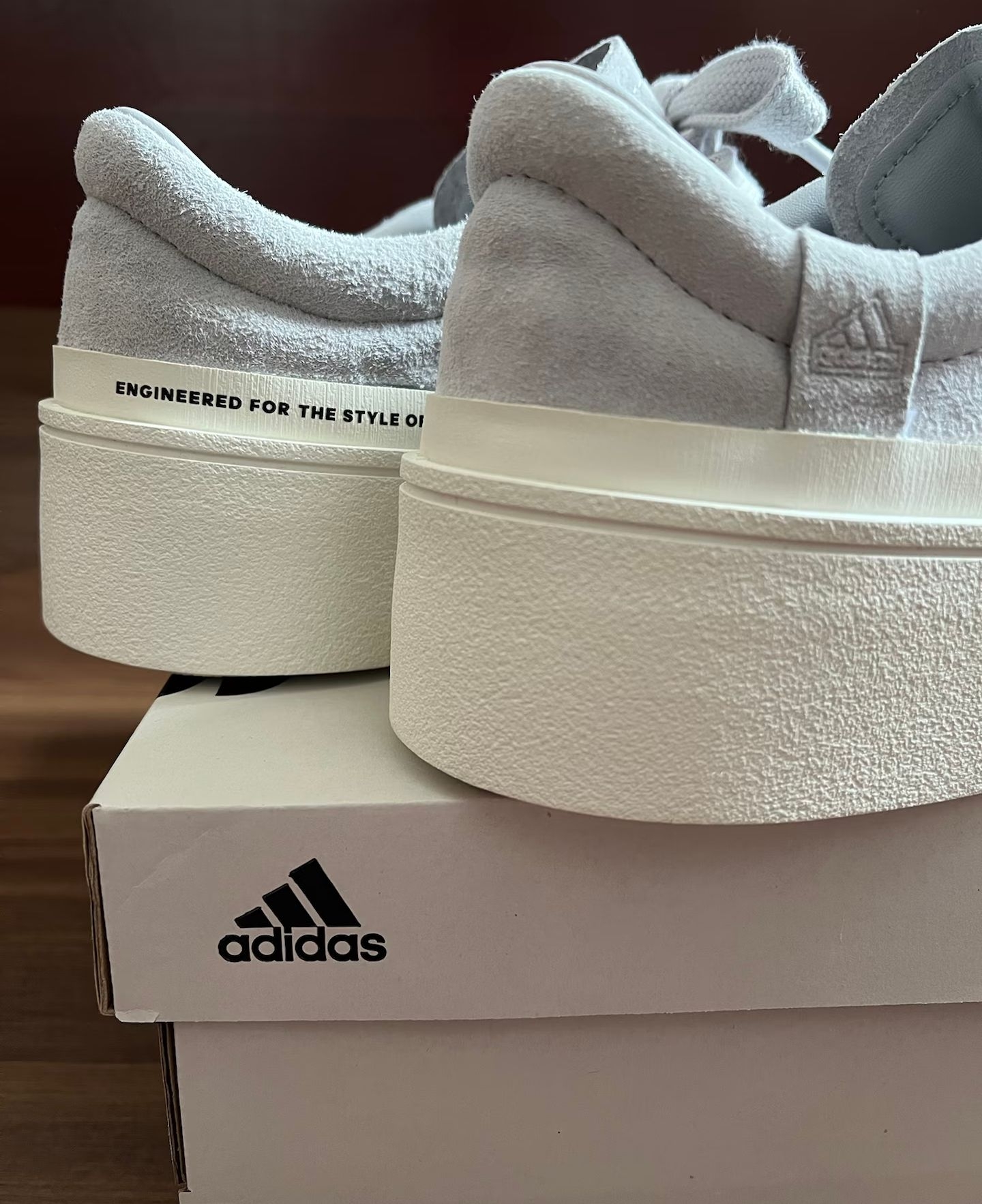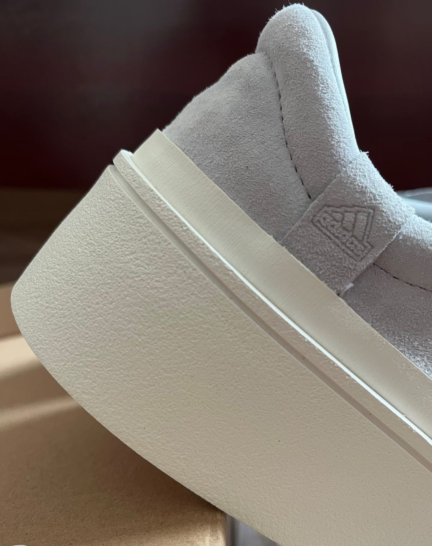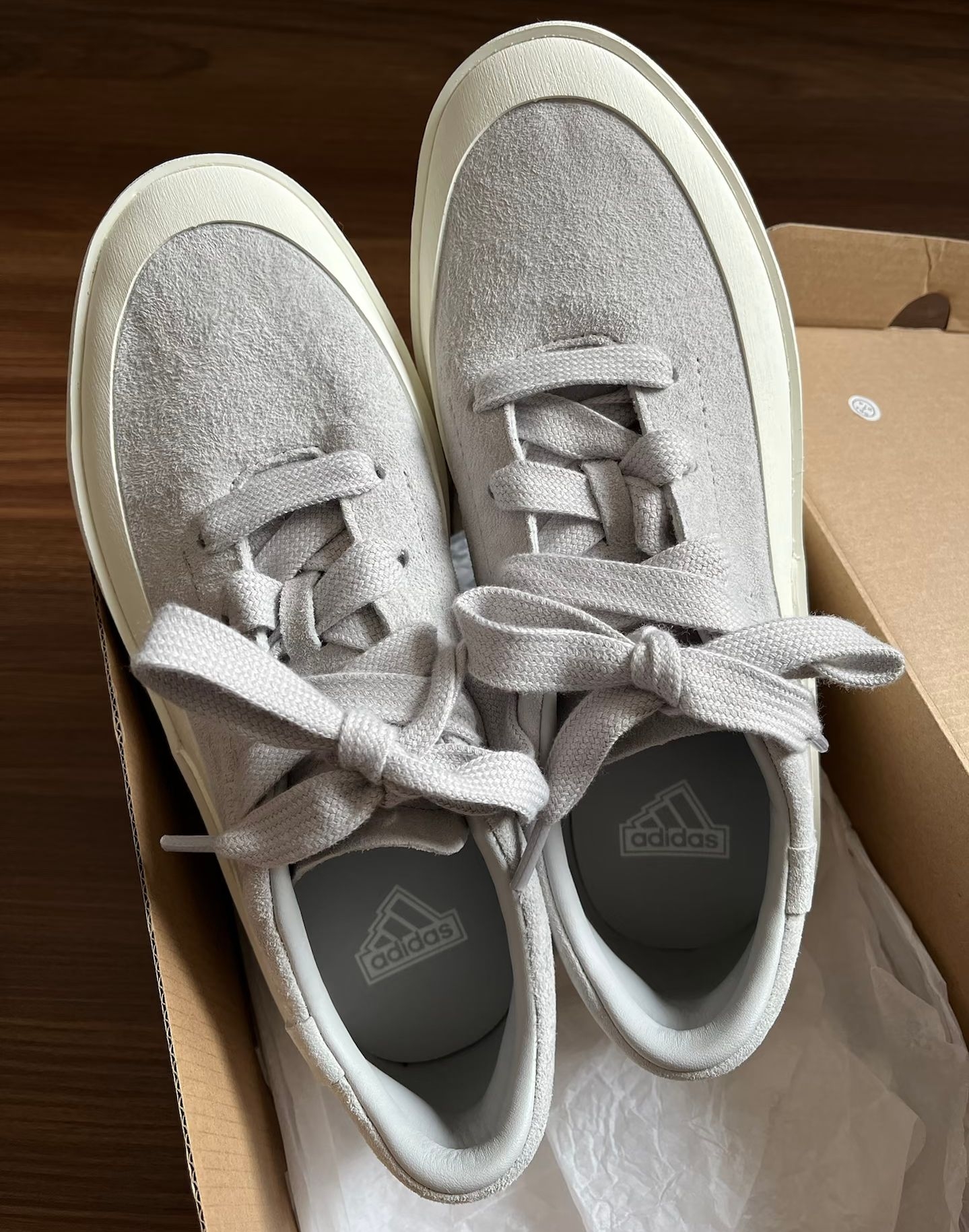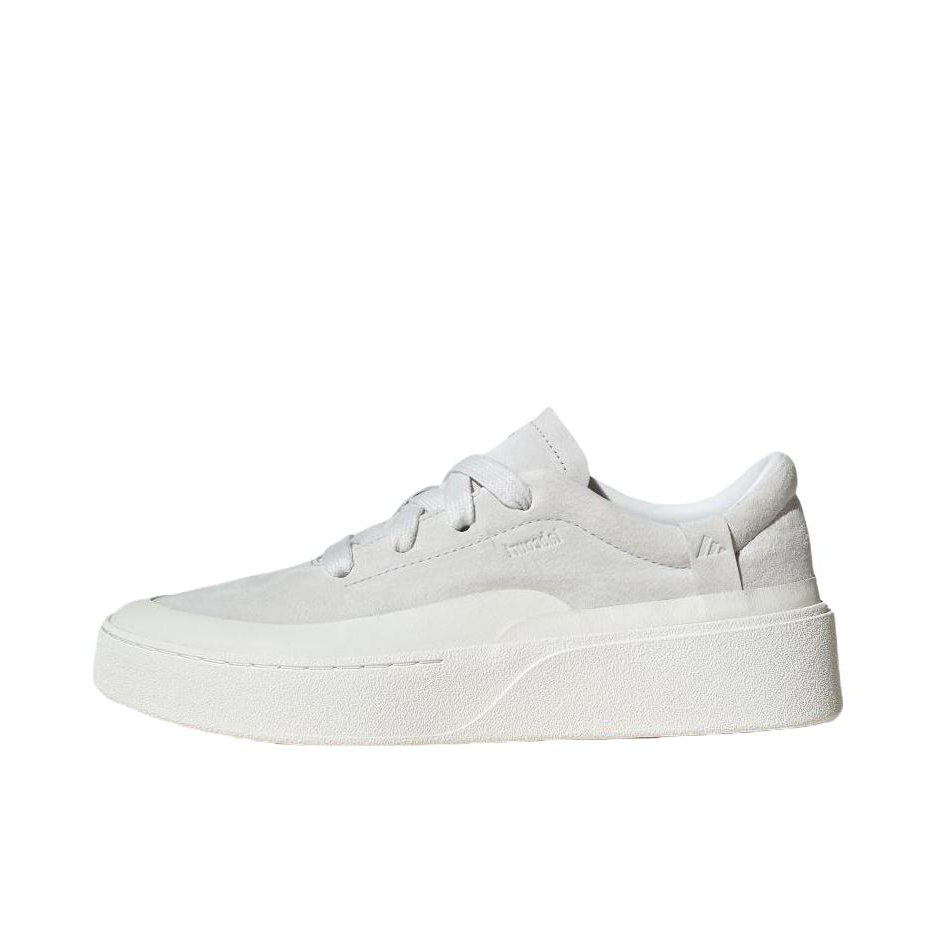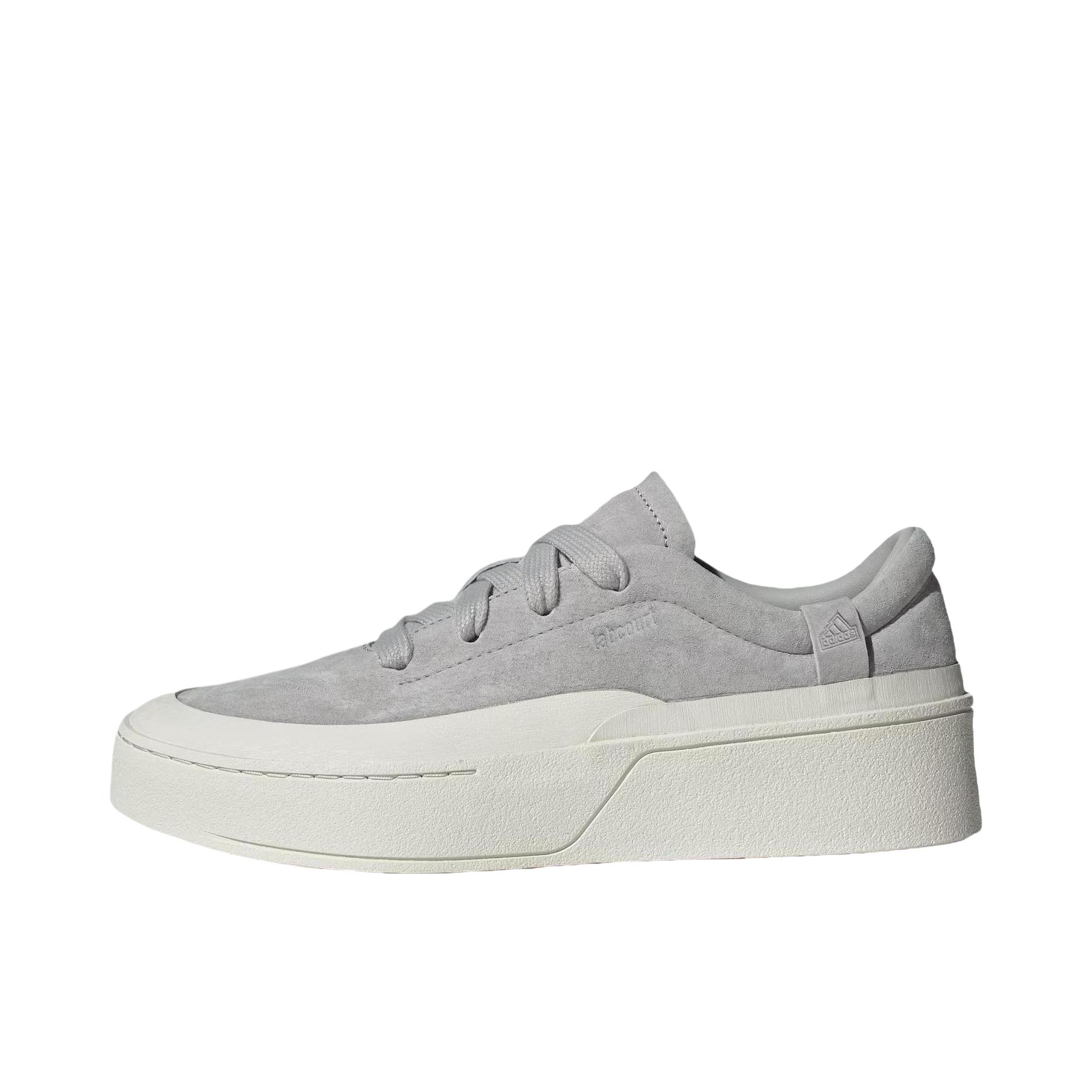 谁懂啊家人们!刚拆箱的adidas FOS Labcourt Trainers直接戳中我的审美巴! 这双的浅灰翻毛皮质触感绝了,软乎乎的还自带高级哑光质感,不是那种廉价的灰调,是低饱和的雾感灰,搭牛仔裤、工装裤甚至休闲西裤都能无缝衔接,懒人穿搭直接焊在脚上都不违和。 鞋型是偏简约的板鞋设计,鞋头的米白橡胶包边中和了灰色的冷感,上脚特别显脚型秀气,不会有笨重感。脚感也很在线,软弹的中底走久了...