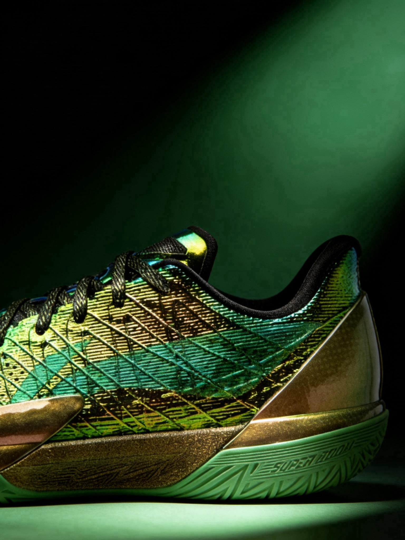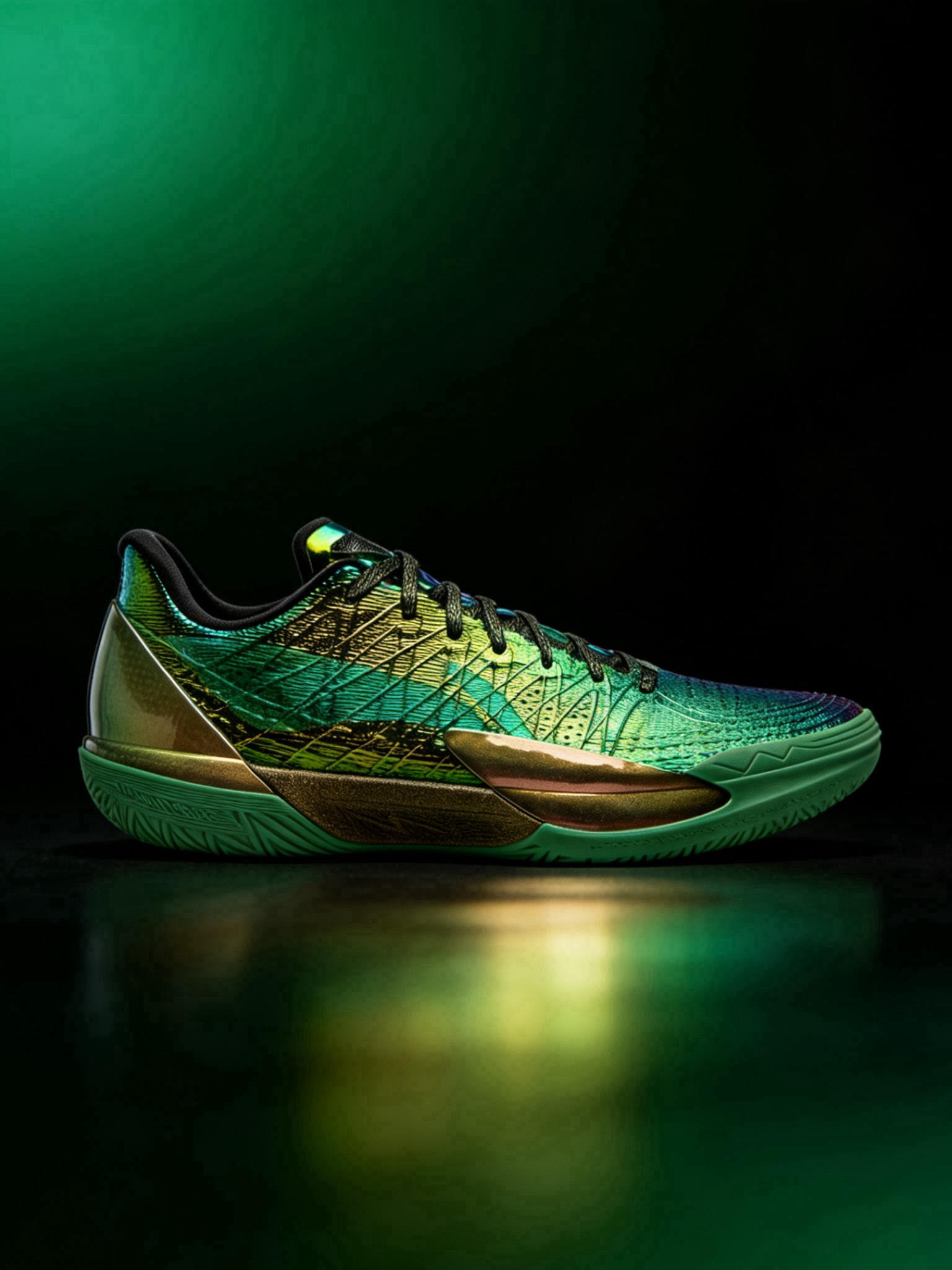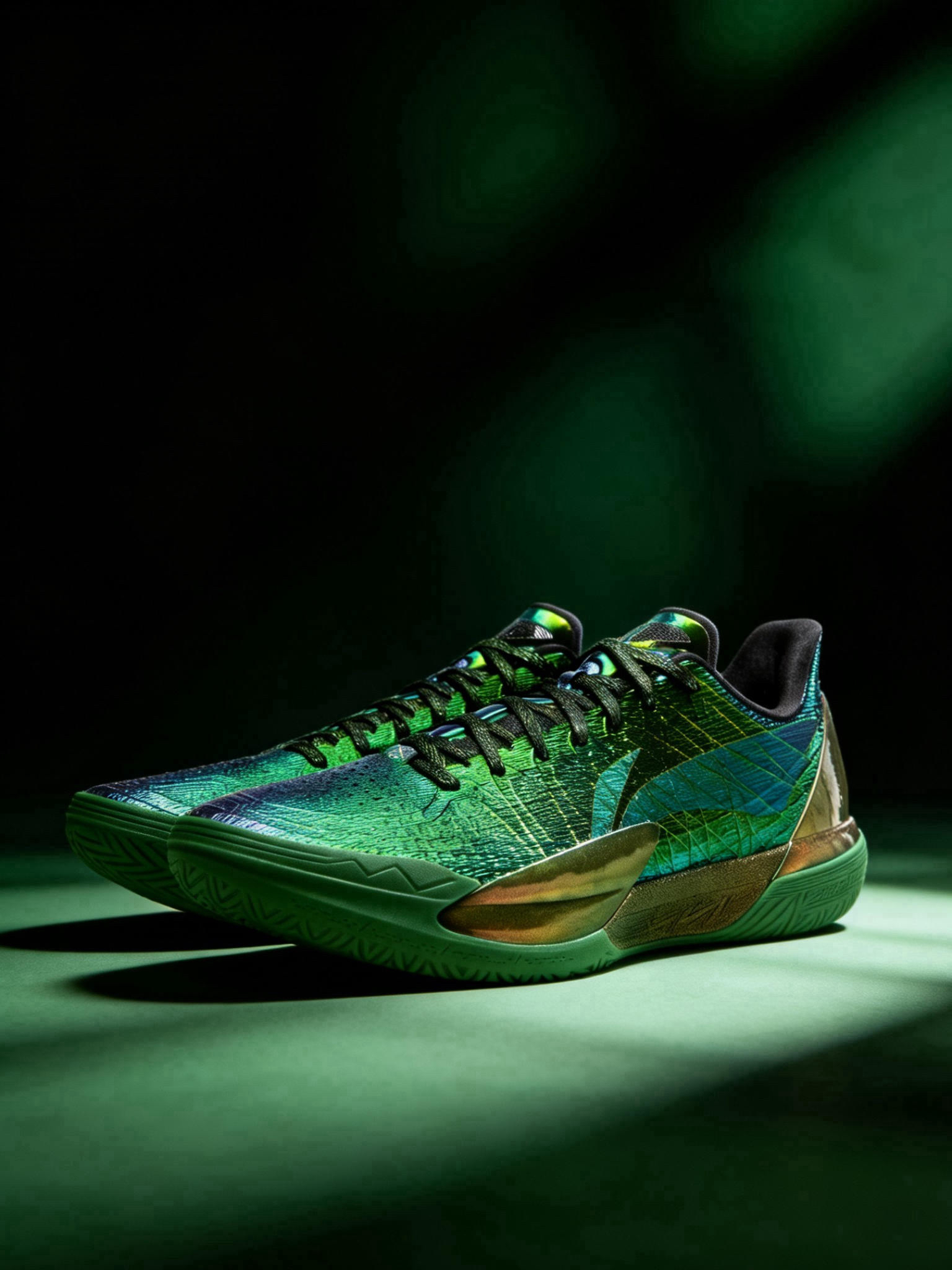 镭射丝线编织鞋面在光下的渐变效果超绝,电镀TPU的点缀又添了点未来科技感,完全不是廉价的炫彩,是那种很高级的“耀变”质感。 配置全是旗舰级硬货,全掌超䨻中底➕双硬度杯型碳板➕GCU外底抓地太稳,颜值和实战双在线的李宁旗舰后卫鞋,追求启动速度、看重颜值的后卫闭眼冲。 轻量化鞋身太友好,日常出街踩着毫无负重感,超䨻中底软弹适中,走路久了也不累脚,金绿配色适配度超高,不管是运动风穿搭还是休闲通勤,随便搭...