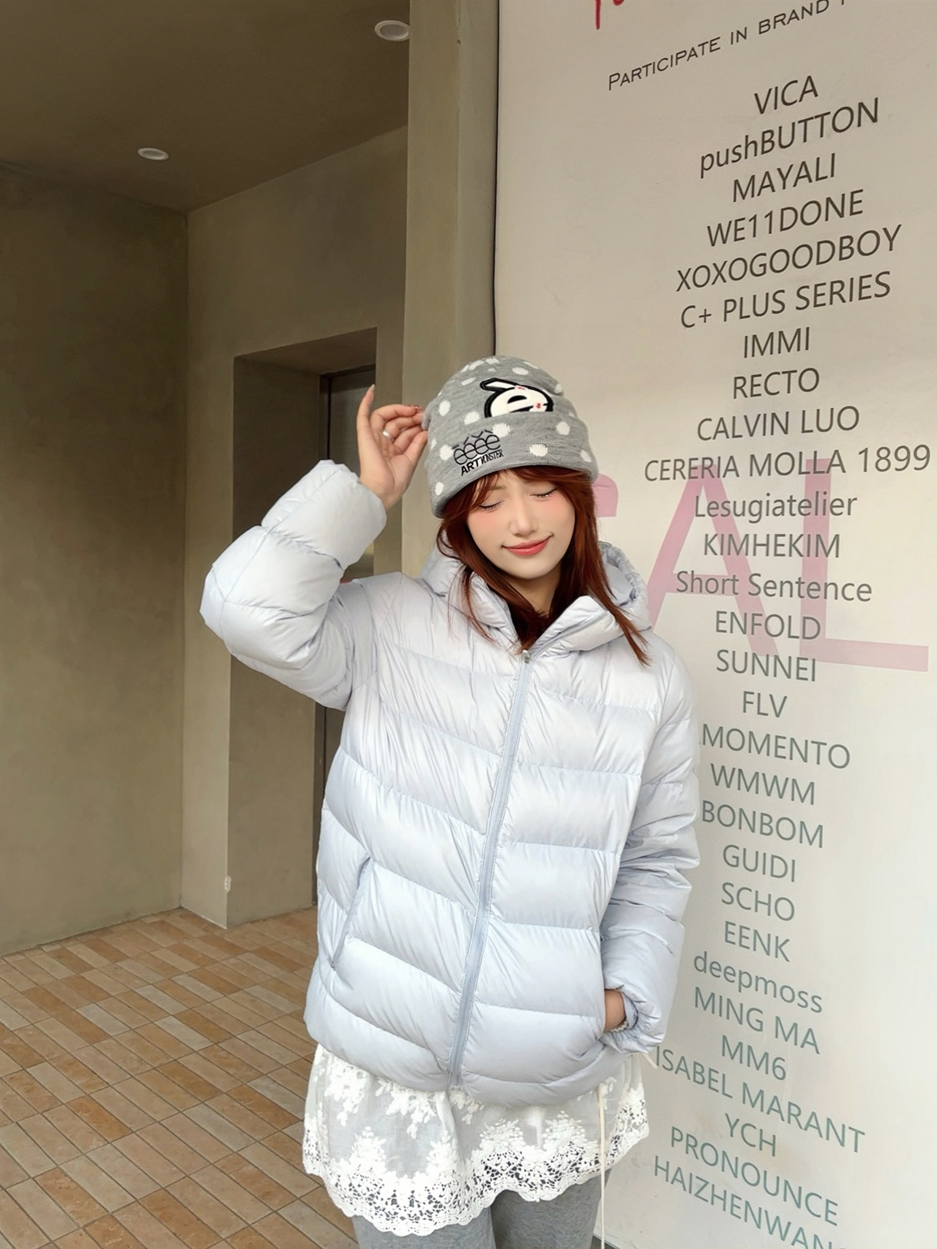这顶波点针织冷帽线帽必须夸夸 带点小图案的设计不会单调 和我的浅蓝羽绒服搭在一起超和谐 我感觉自己瞬间变身韩系甜妹 出门随手拍都很出片 这种小配饰真的能让穿搭瞬间有灵魂