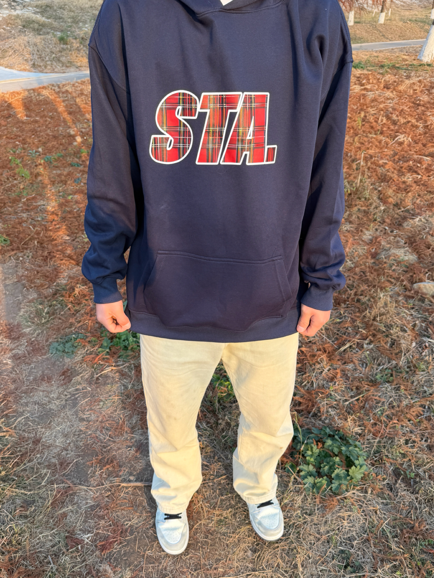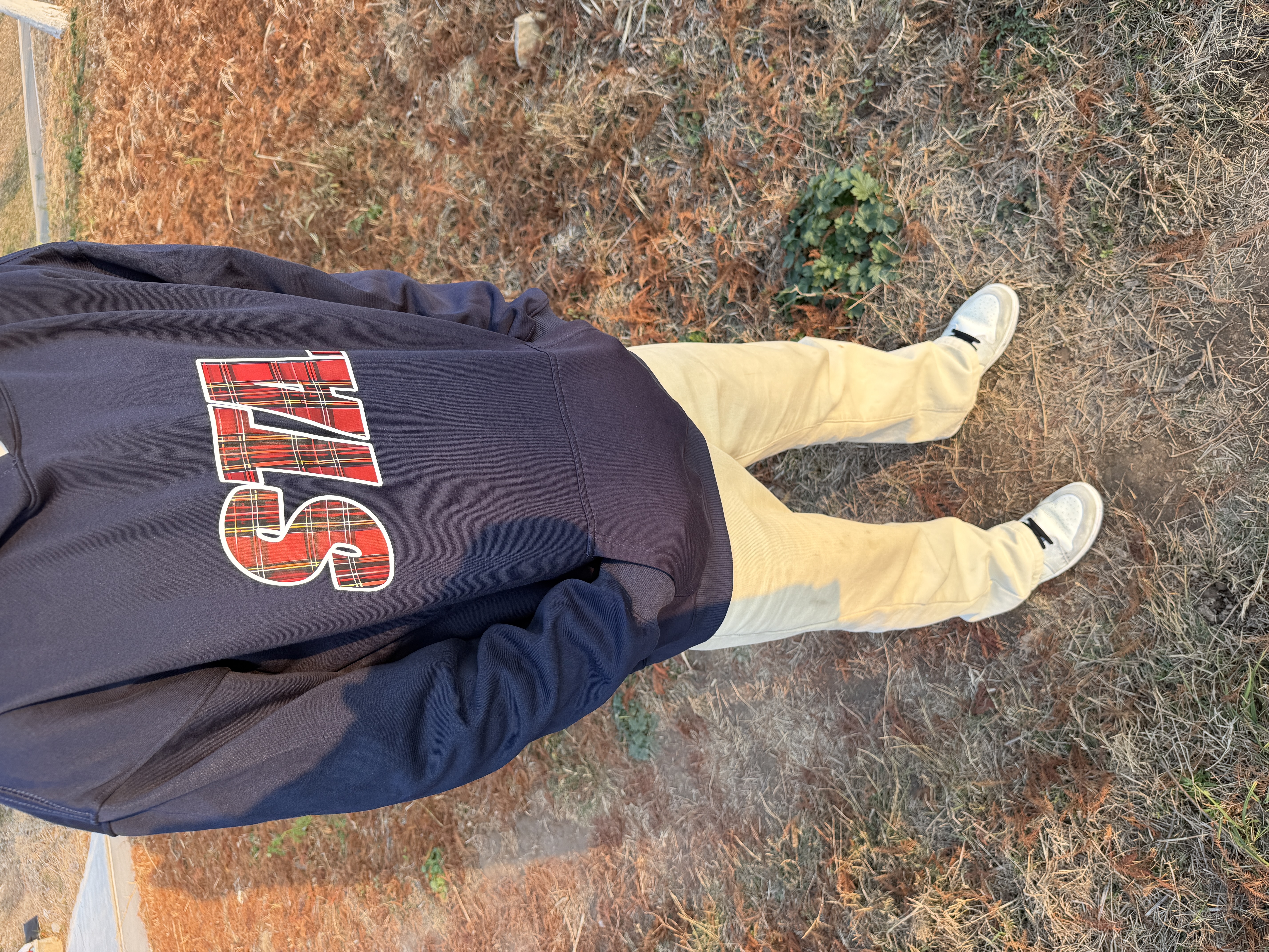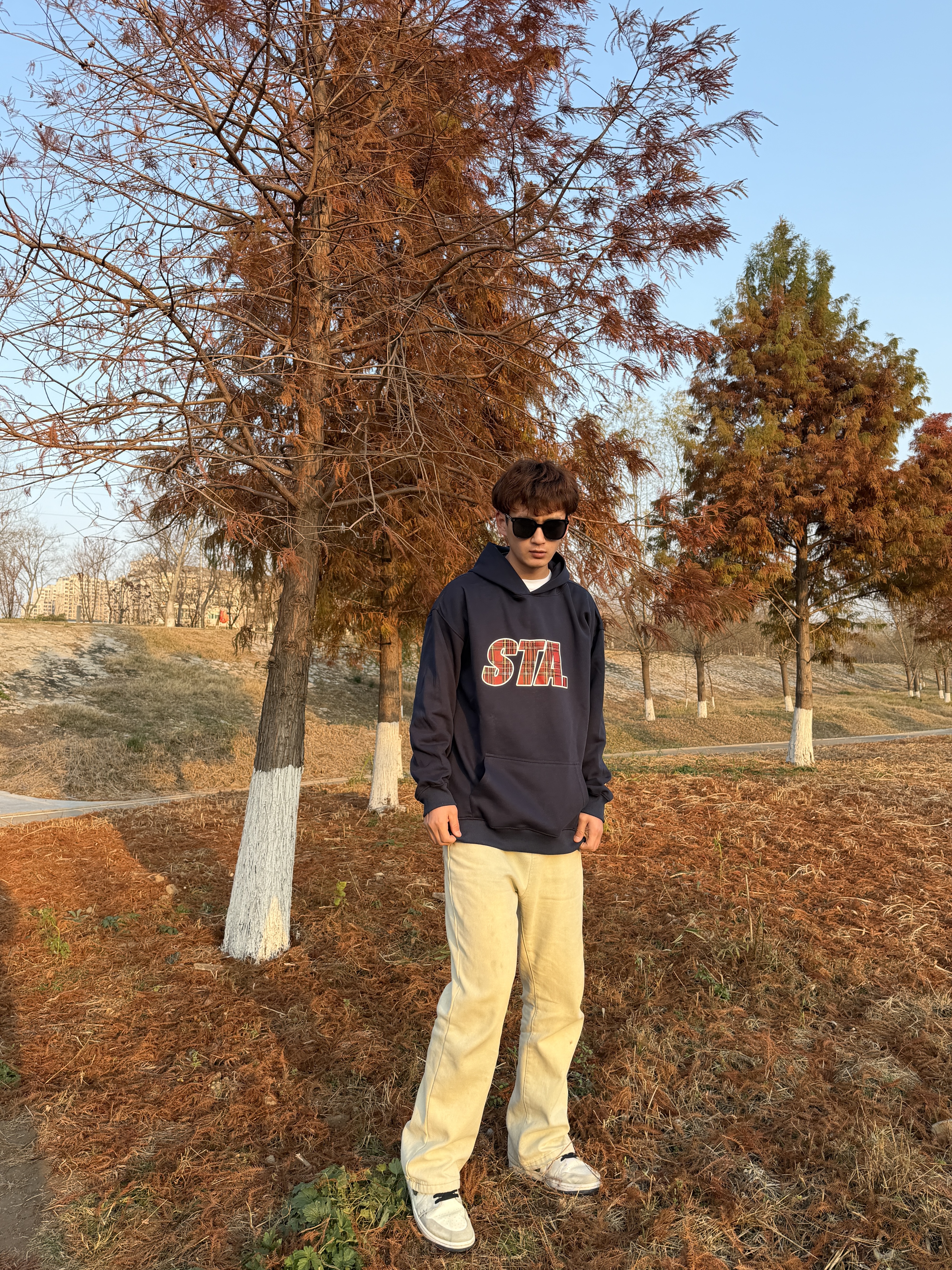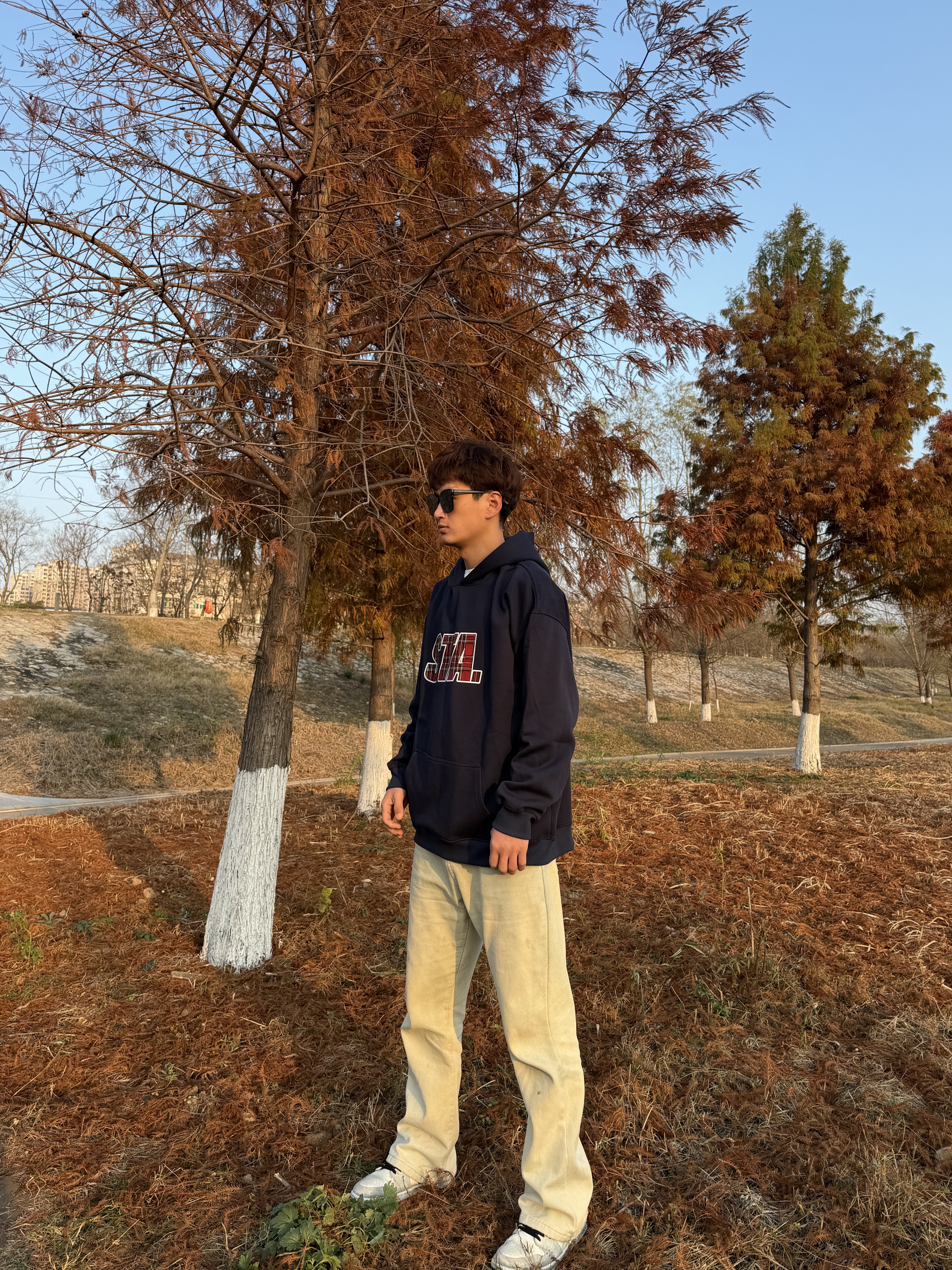 哈喽大家好 冬季穿搭分享 一起来看看吧! 藏青色印花卫衣 搭配直筒黄泥牛仔裤 最后是一双休闲板鞋 一起来看看吧! #鞋帽选对赢一半 #给大家推荐冬季穿搭 #引力成长航线 #男生的秋冬日穿搭日记