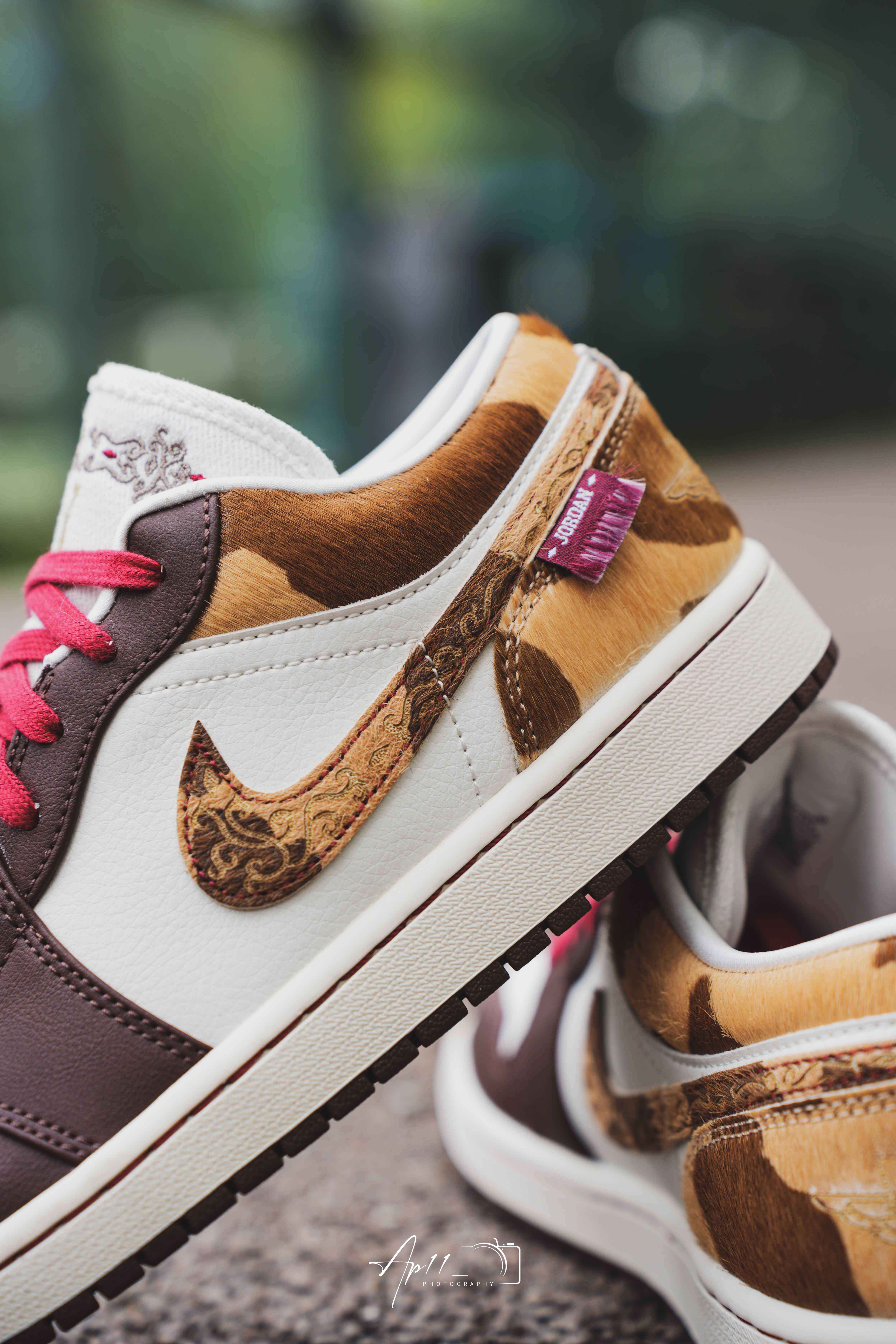 马年也是马上就快到啦,最近入手这双马年限定AJ1很惊喜,深棕搭米白的主调,配红鞋带和马纹皮质的细节,把生肖元素融得很巧妙。皮质的触感很细腻,日常搭卡其色工装裤出门,配色的复古感拉满。鞋身的金属挂坠小装饰也很点睛,穿它迎接马年,氛围感和收藏感都在线。