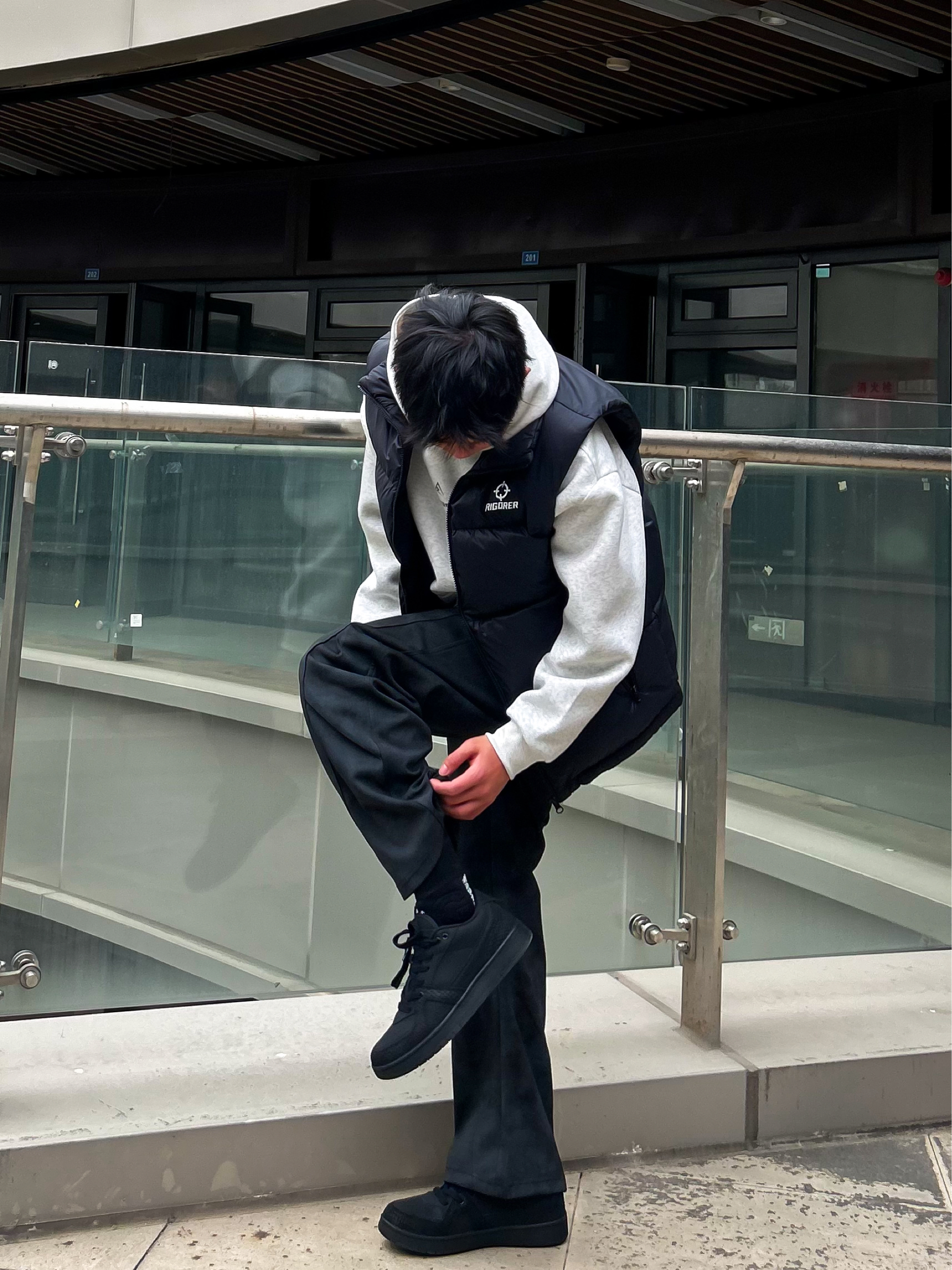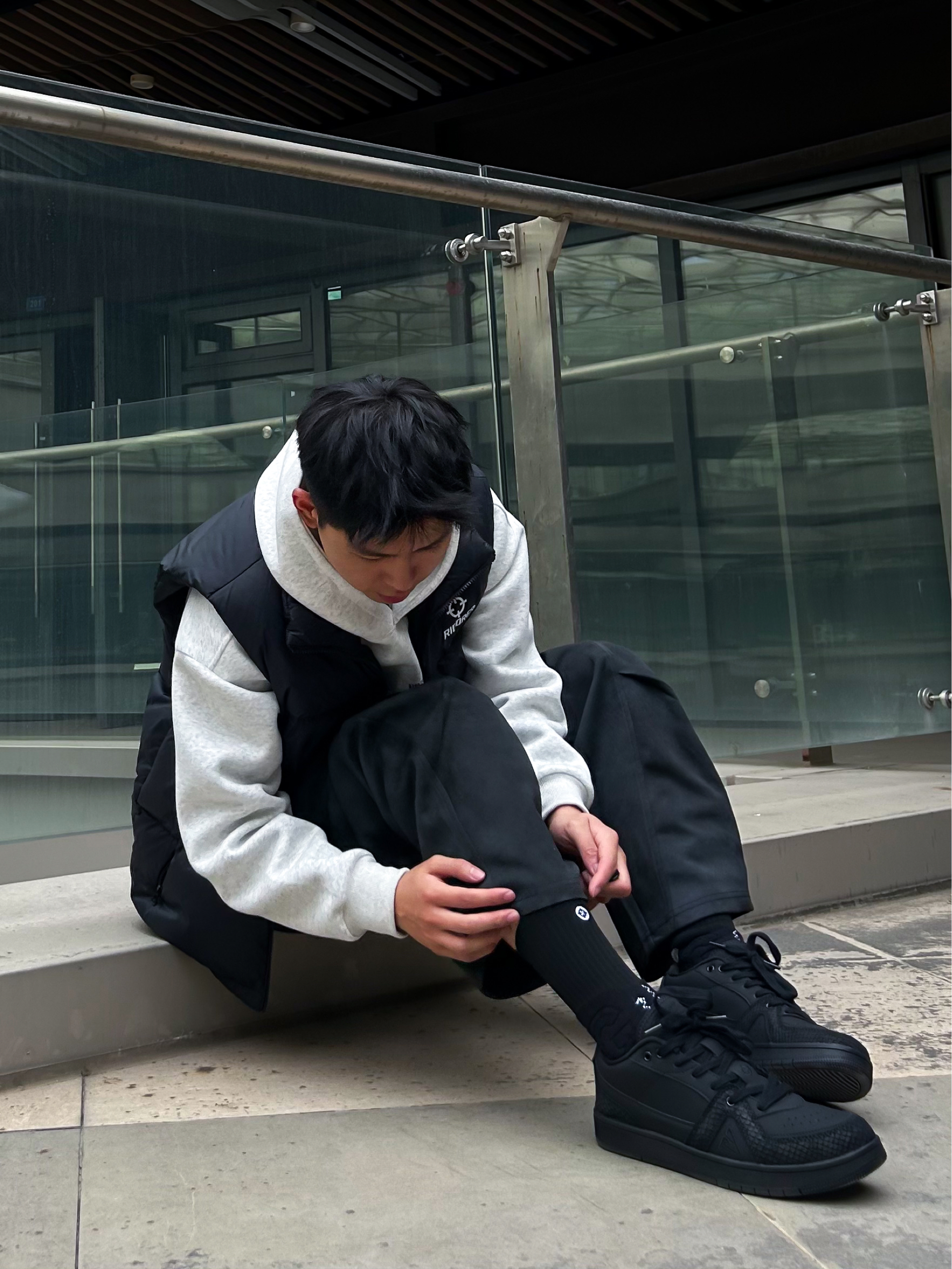 哈咯,这里是卢_SG 暗黑系运动风太戳我! 全黑+细节款板鞋直接拿捏秋冬酷感! 重点是这双 准者 RIGORER 里弗斯联名板鞋和同系列袜子 黑武士板鞋的做旧纹理和裤装质感呼应 鞋身的暗纹细节低调又有质感 踩屎感脚感不管走路还是轻度运动都舒服! 搭配运动篮球袜,袜口的刺绣小logo质感拉满! 前脚掌和脚踝都做了加厚的处理,穿也好穿了很多! 和板鞋的设计元素呼应,小细节直接让整套穿搭的“一体...