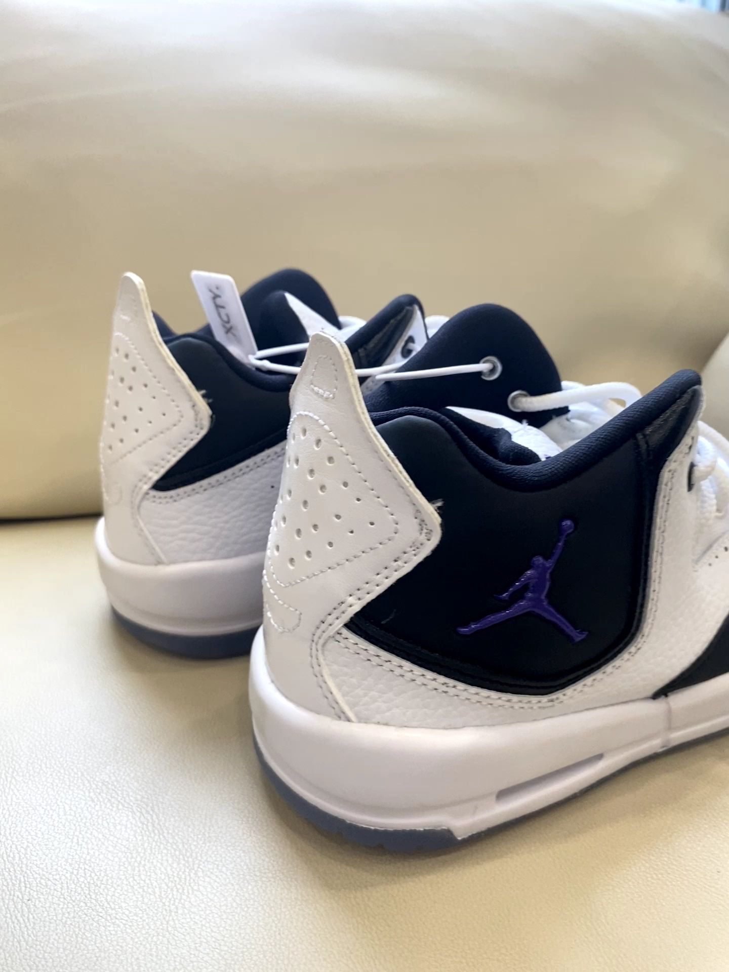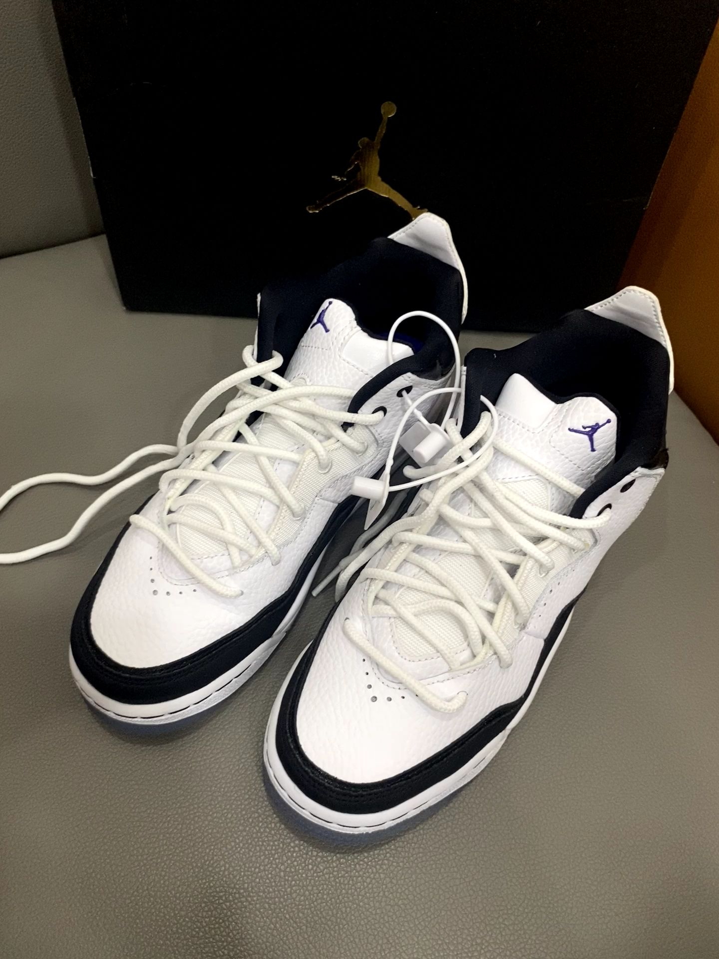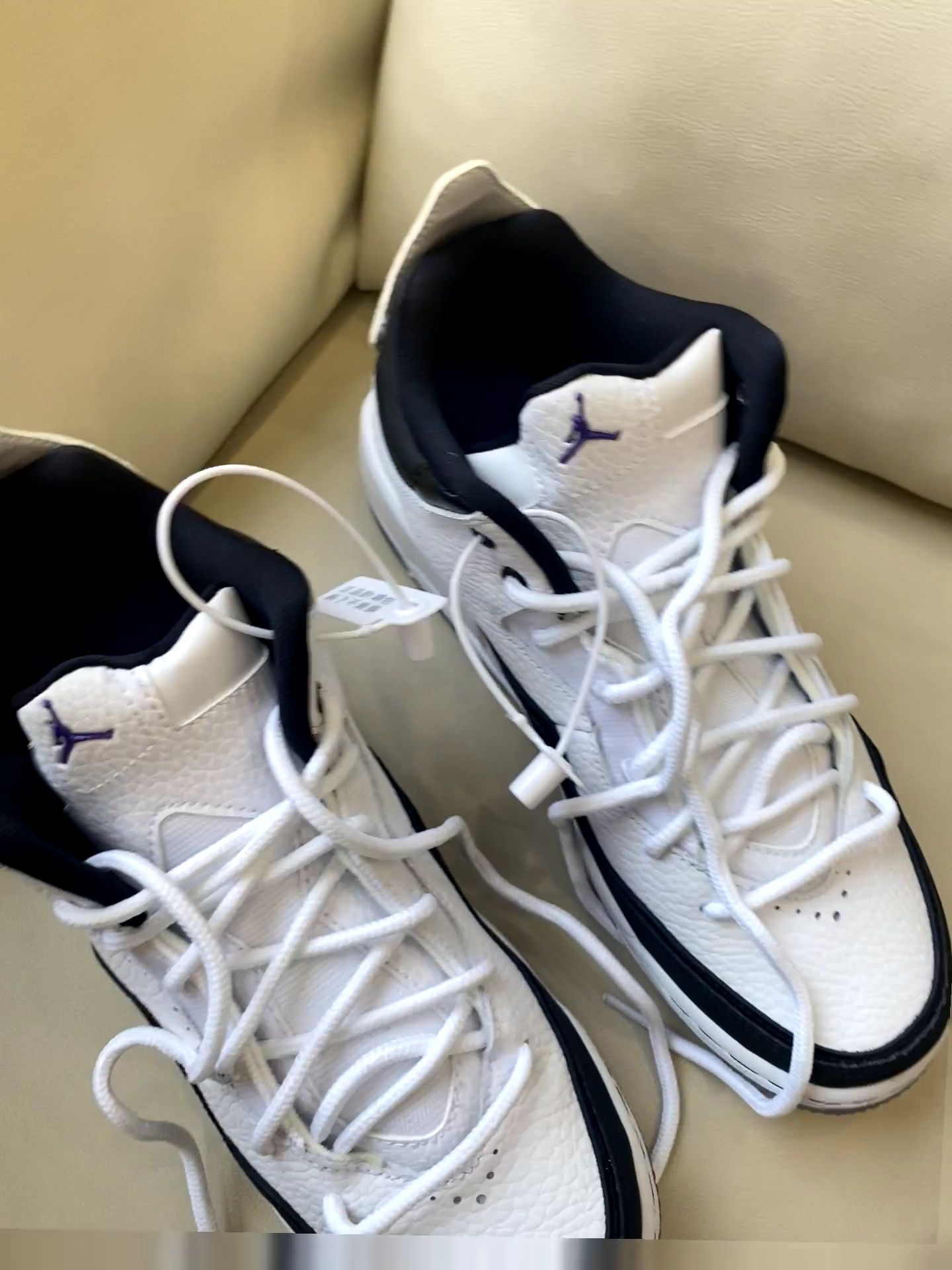 经典黑白配永不出错✅ 亮点是那抹紫色飞人标➕透明水晶底里的"JORDAN"字样 上脚意外轻软 日常压马路完全不板脚 鞋型是真百搭 配牛仔裤是街头感 搭运动裤就是cleanfit 随手拍都自带高级感📸 总结:一双能穿四季的百搭王 不知道穿啥时闭眼踩它!