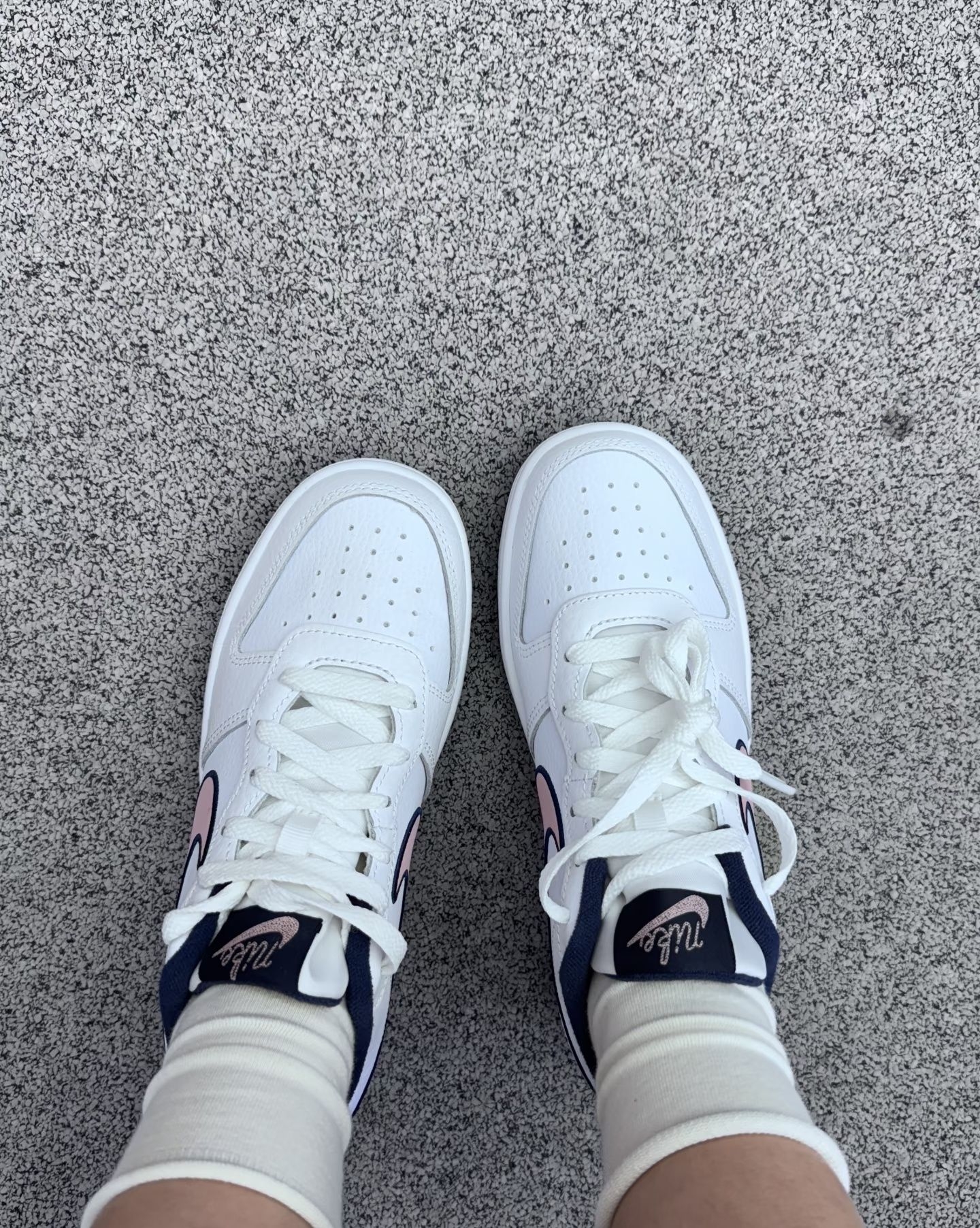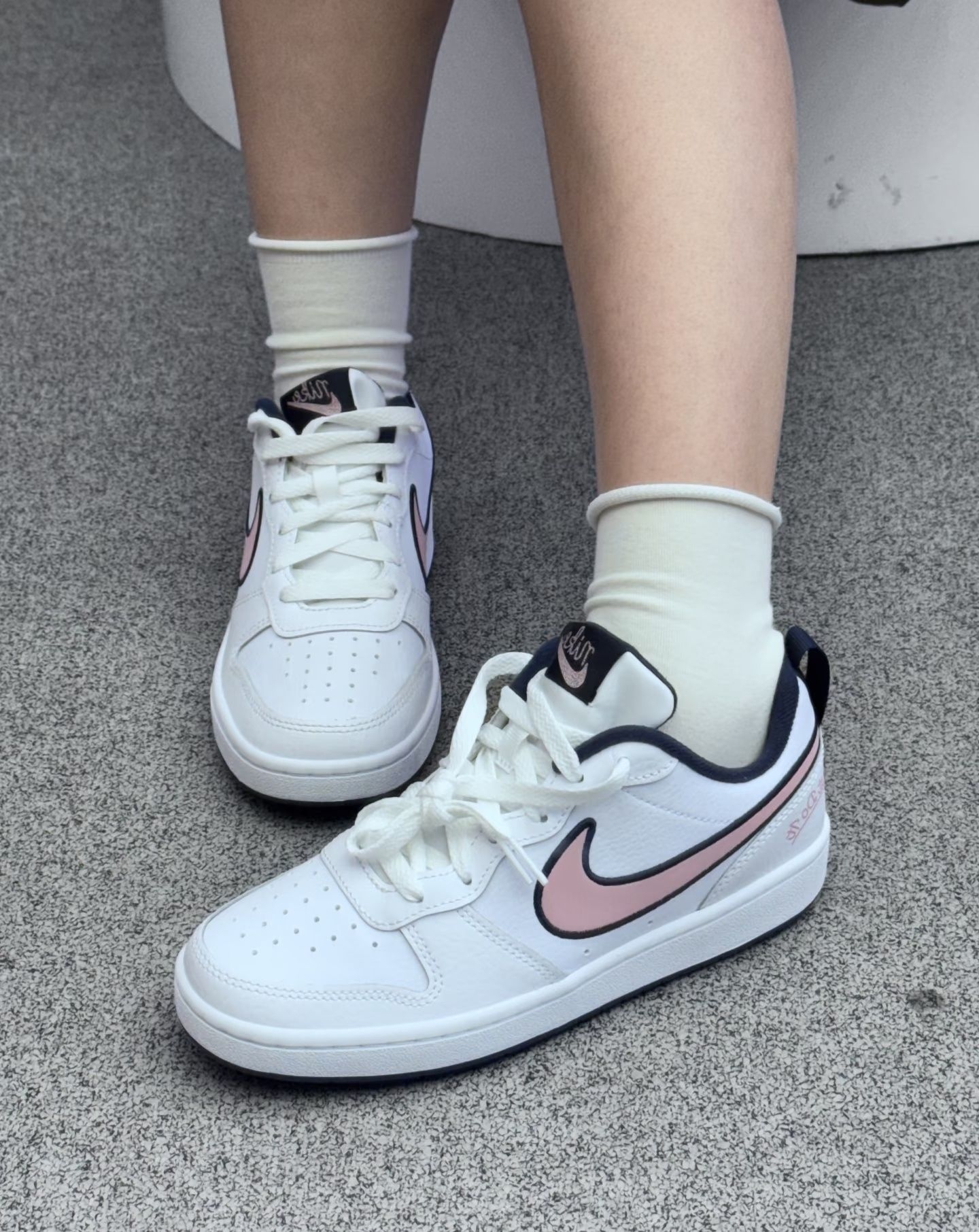 甜酷女孩的本命板鞋|这双Nike也太会拿捏少女心了吧! 谁能拒绝这双粉勾+藏蓝的神仙组合啊✨ 奶呼呼的白鞋身搭配粉嫩Swoosh,外圈的黑边设计又添了几分酷感,甜酷平衡得刚刚好~ 搭配堆堆袜简直绝绝子👌 不管是穿牛仔裤走街头风,还是搭小裙子走甜妹风,它都能完美适配,日常出街回头率直接拉满! 脚感也很舒服,软乎乎的踩着像踩云朵☁️ 上学、逛街暴走一天都不觉得累,性价比直接封神! Nike你是懂少...
