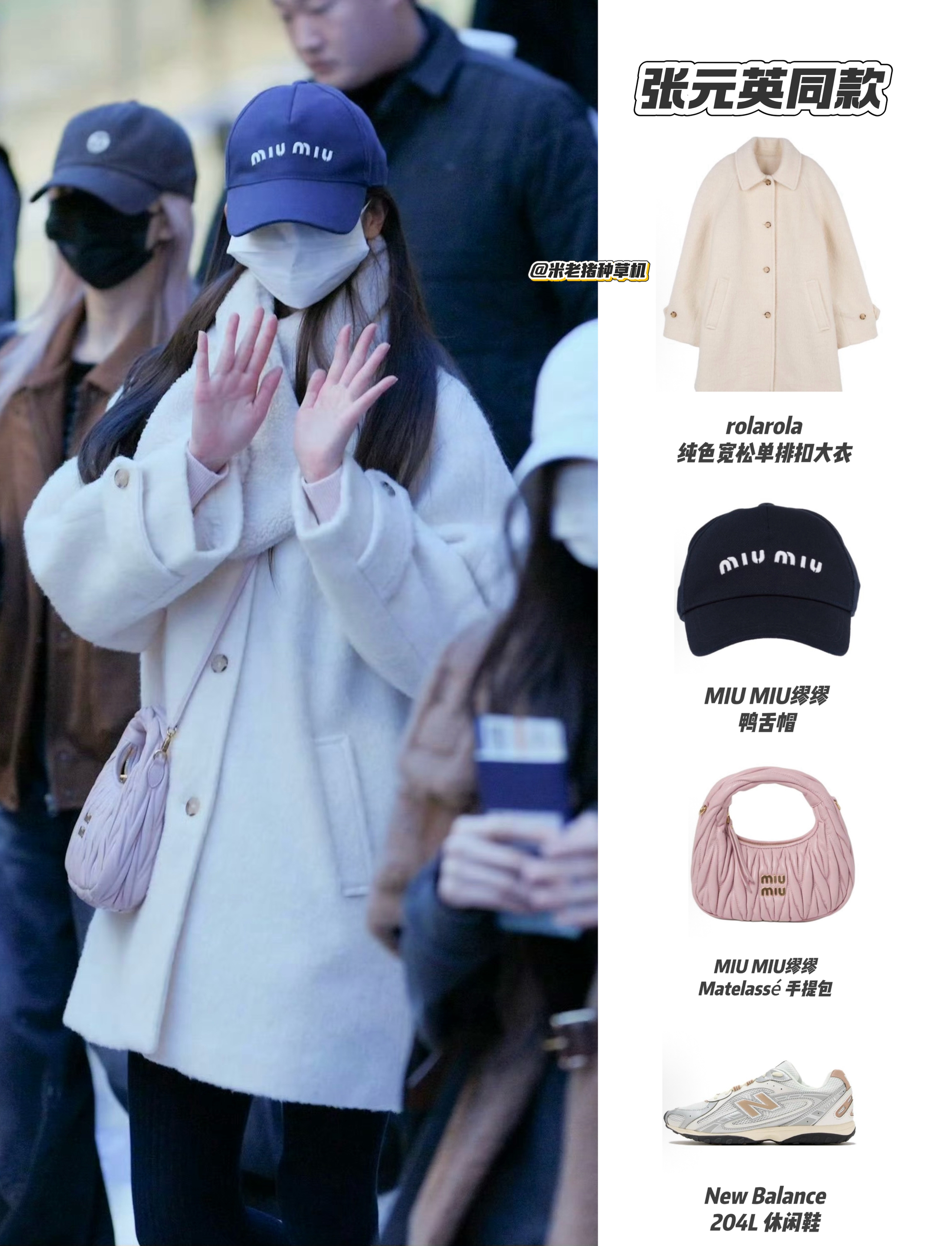 这套张元英的穿搭很适合双旦季节。米白色大衣温柔又有氛围感,搭配棒球帽和粉色手袋,让甜美中带点俏皮。整套搭配保暖又时髦,节日聚会或日常出行都很合适,是轻松又亮眼的节日穿搭参考。