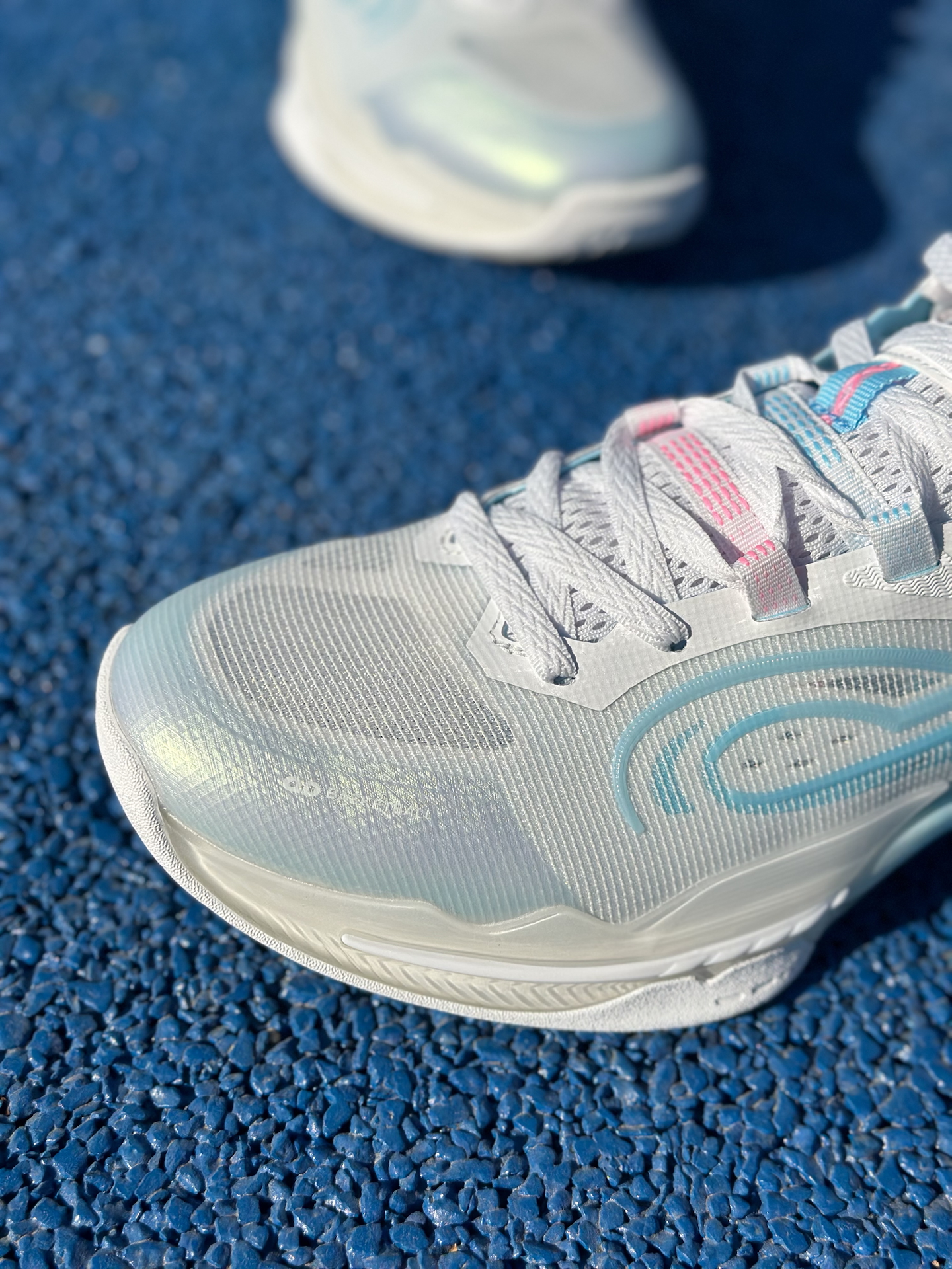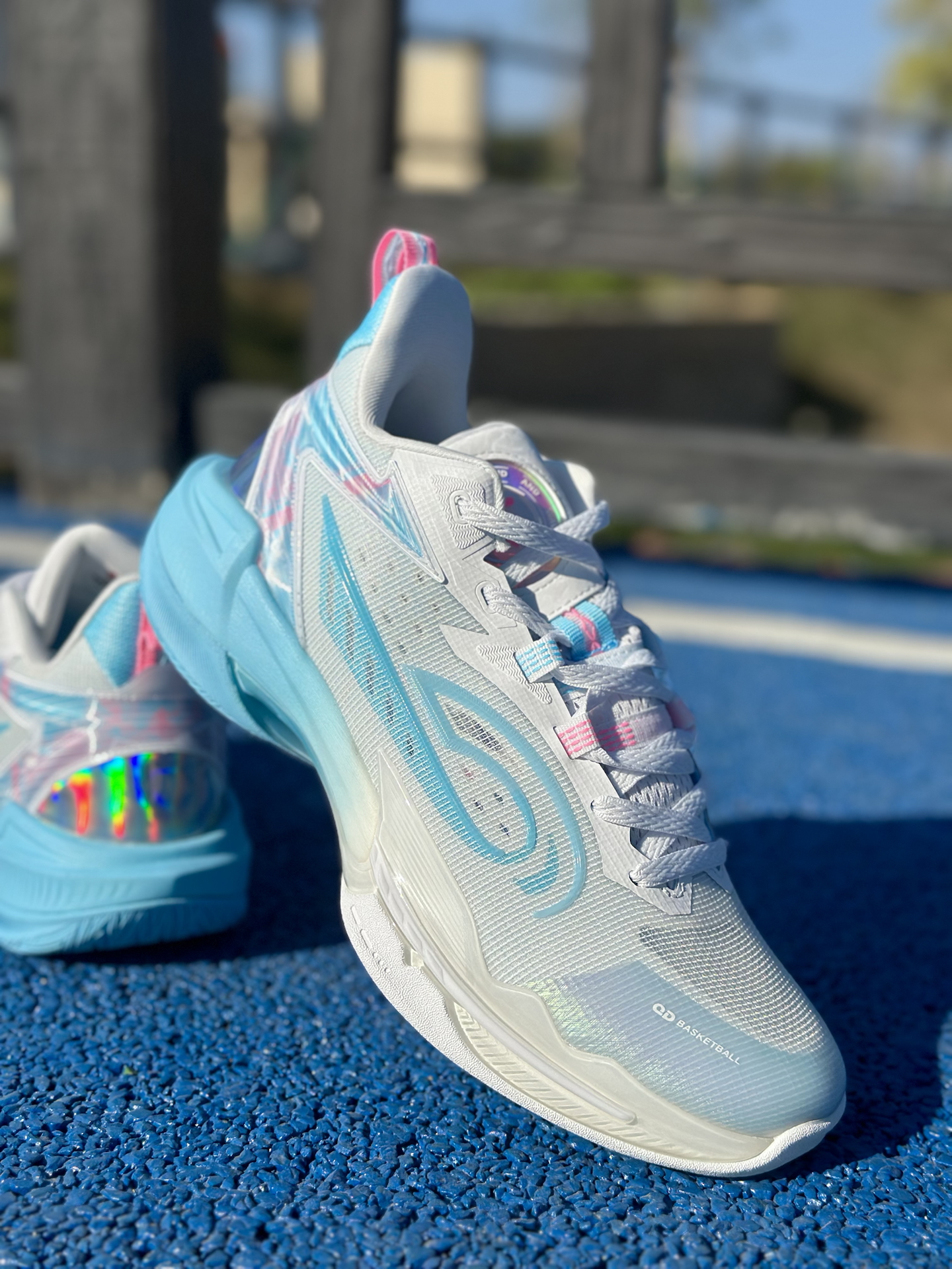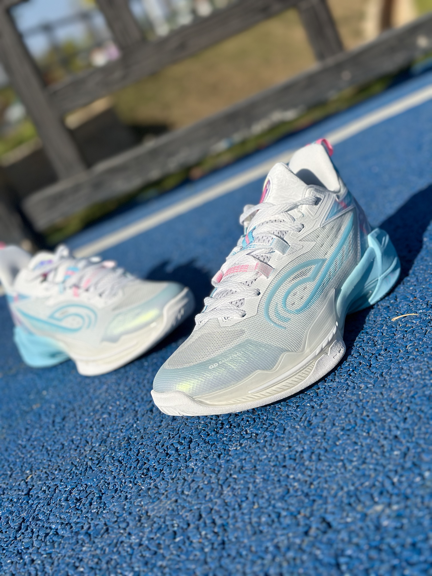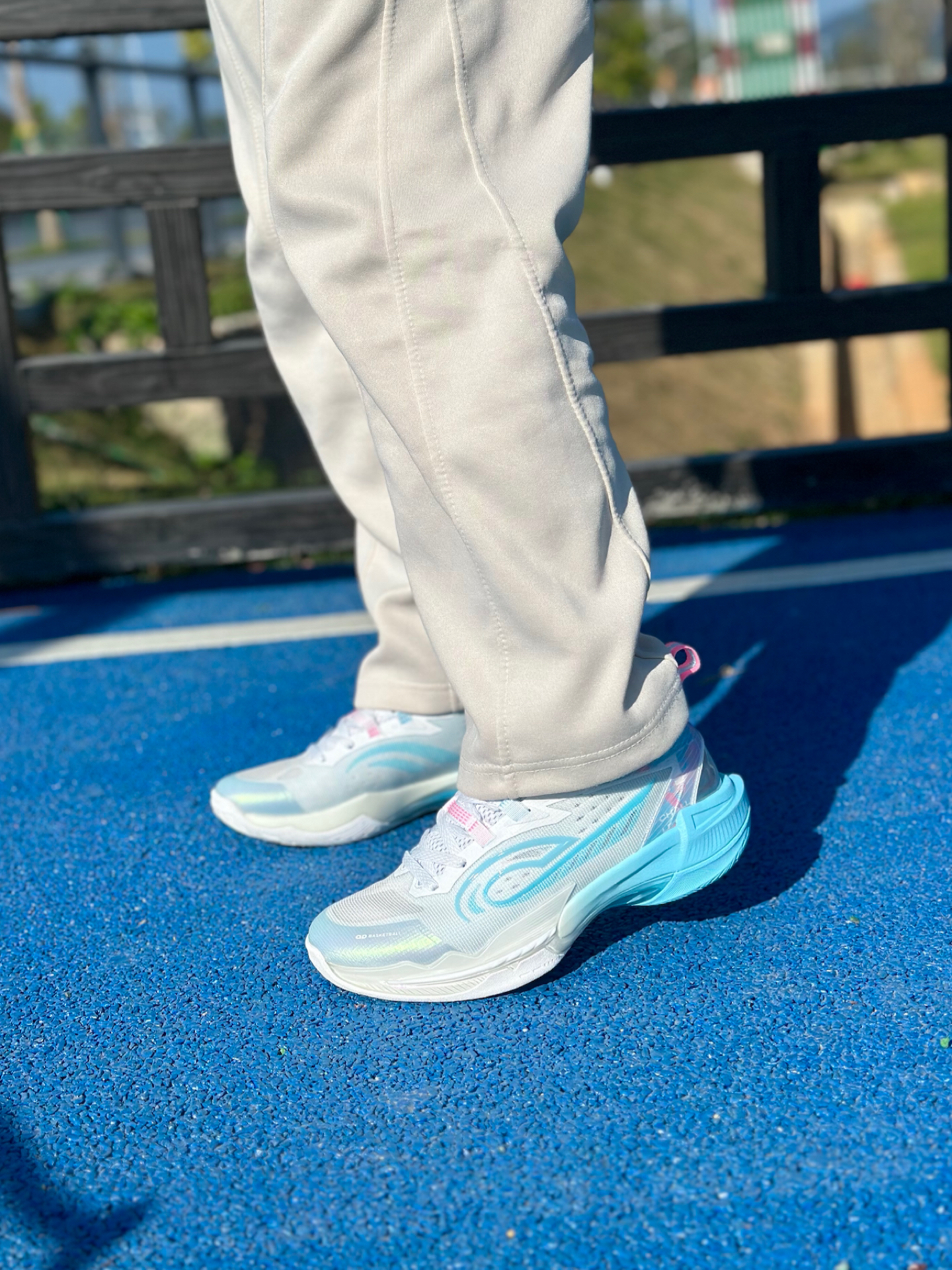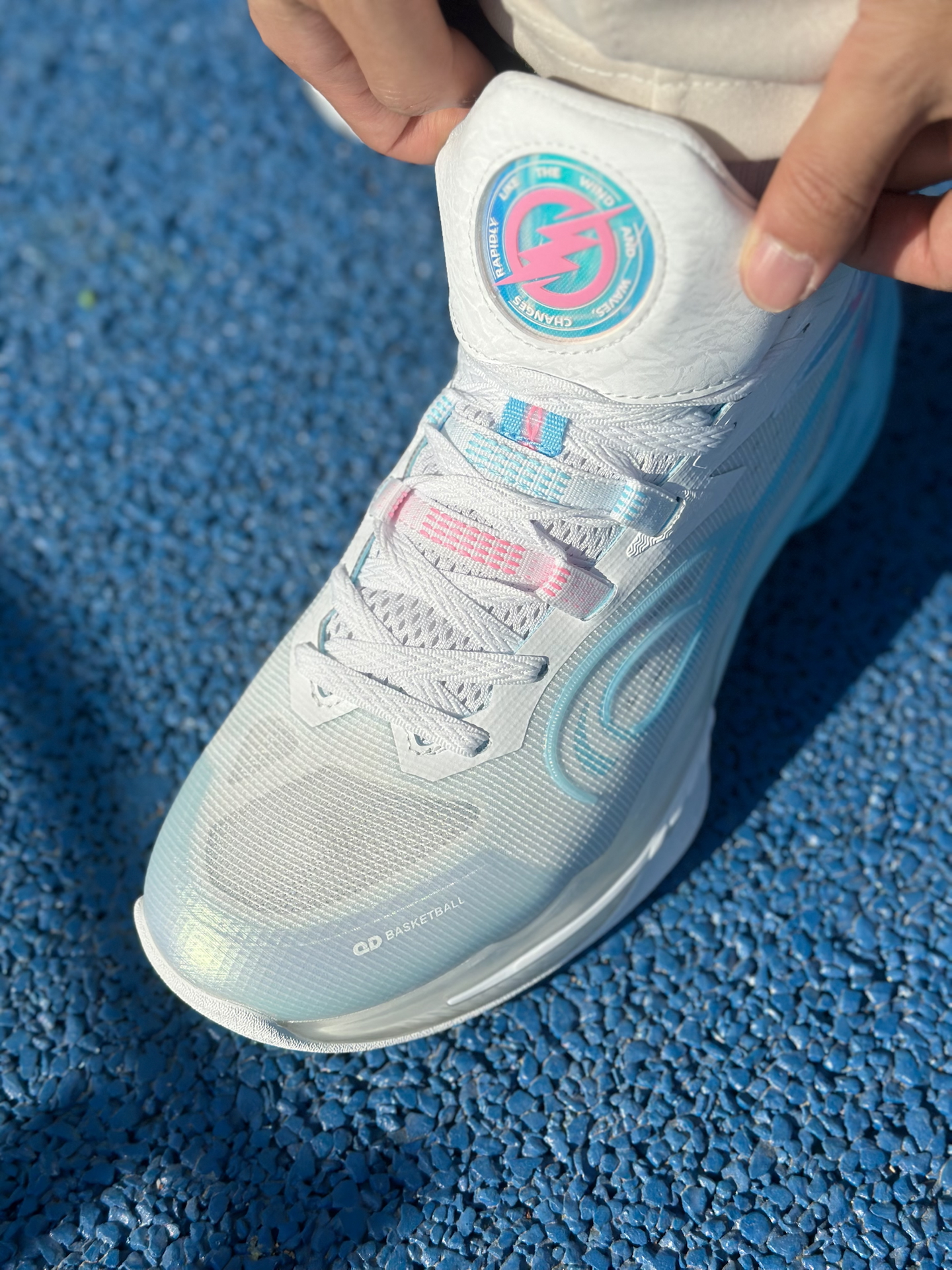 讲真学生党选实战球鞋,耐造又性能不拉胯才是王道!最近上脚的破影7 ELITE,妥妥的校园实战刚需款,揣进书包带去球场再合适不过~ 中帮版型太懂打球人的需求了,包裹感给得足足的,脚踝保护也到位不拖沓;中底带的小镂空设计超贴心,足弓支撑稳稳当当,久穿也不塌;外底是实打实的人字纹,耐磨度完全能扛住校园水泥地,日常打球通勤都够用;白蓝粉的配色清新又亮眼,颜值戳中一众学生党,谁看了不心动啊!#实战球鞋家 #...